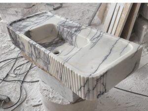 Calacatta Viola Marble Sink: Fluted Stone Vanity with Backsplash