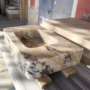 Hand Carved Calacatta Gold Marble Sink: Wall Mounted Stone Vessel