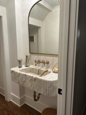Calacatta Gold Marble Sink: Ribbed Front, Luxury Bathroom Vanity