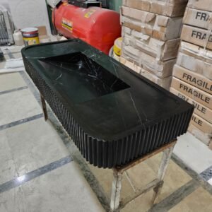 Nero Marquina Black Marble Sink: Fluted Front Wall-Mounted Vanity
