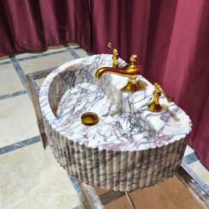 Handcrafted Calacatta Viola Marble Sink: Wall Mount Stone Vanity