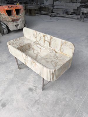 Handmade Calacatta Gold Marble Bathroom Sink with Backsplash
