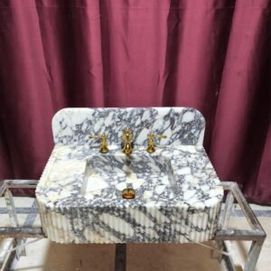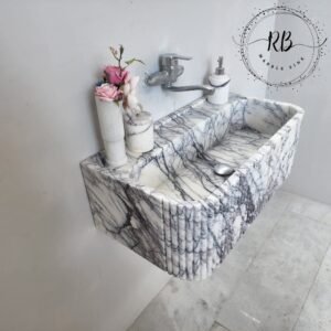 Calacatta Viola Marble Sink: Ribbed Wall Mounted Floating Vanity