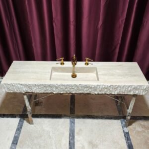 Travertine Wall Mount Sink Split Face Rectangle 16×24 Natural Stone