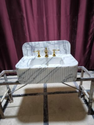 Calacatta Gold Marble Wall Mount Sink 42 Inch Fluted Vanity