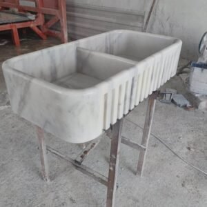 Handcrafted White Marble Sink: Fluted Front Bathroom Vanity (18x39x6 Inches)