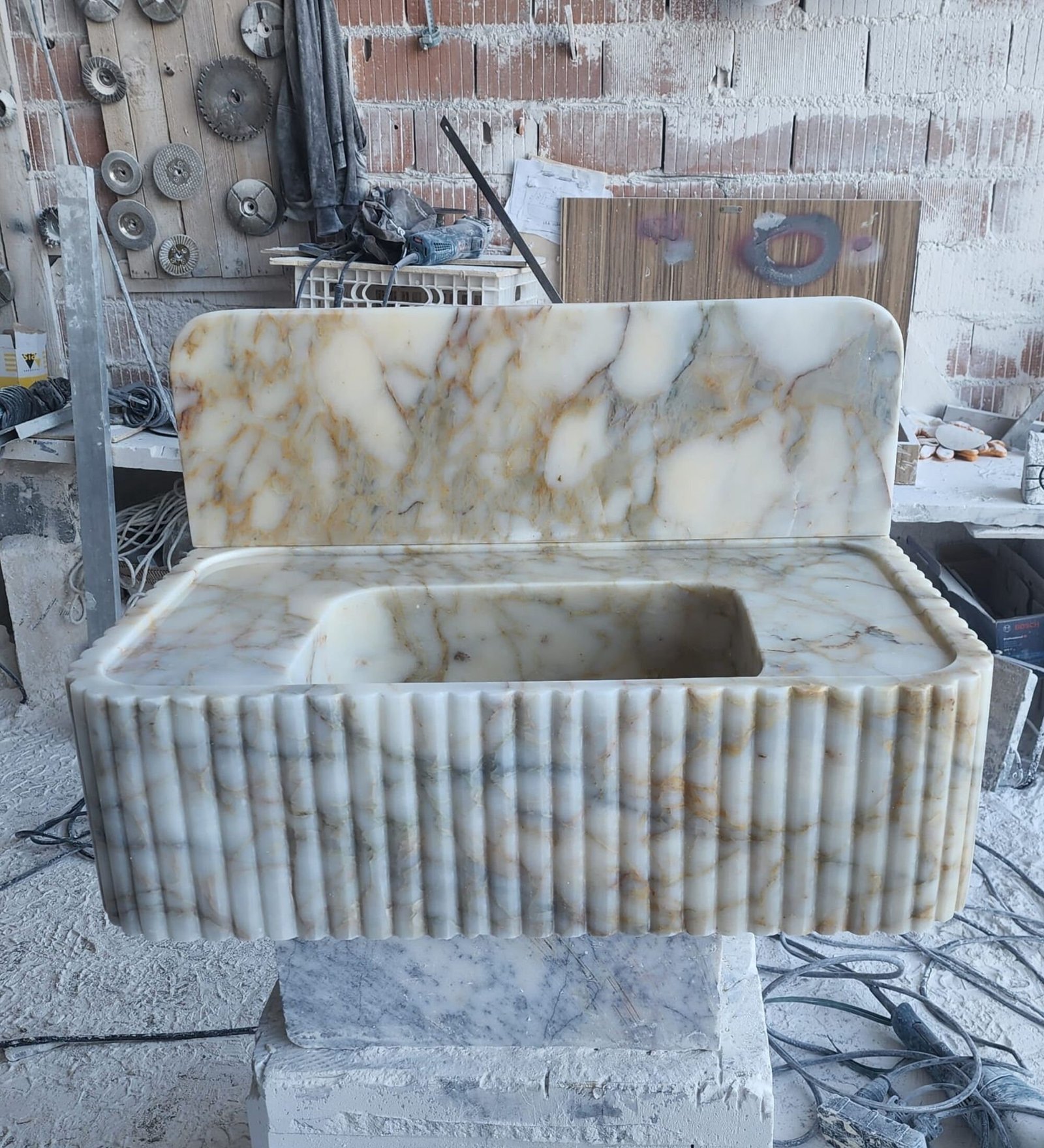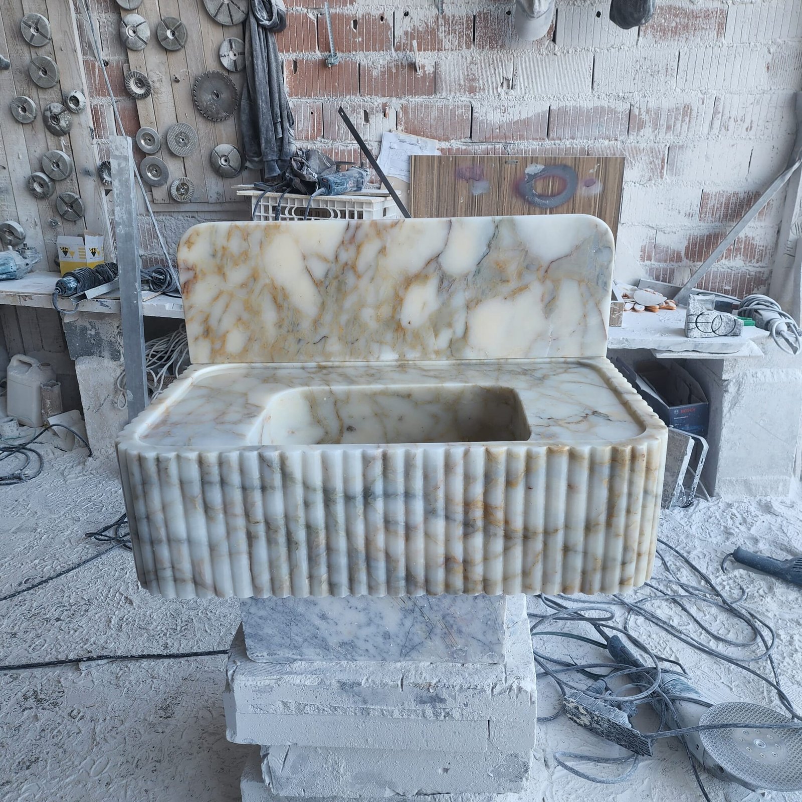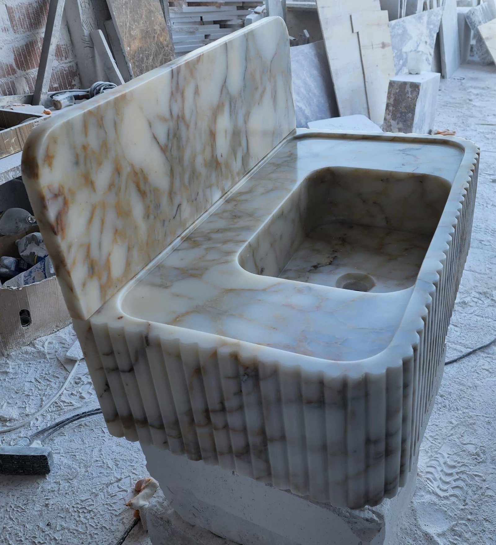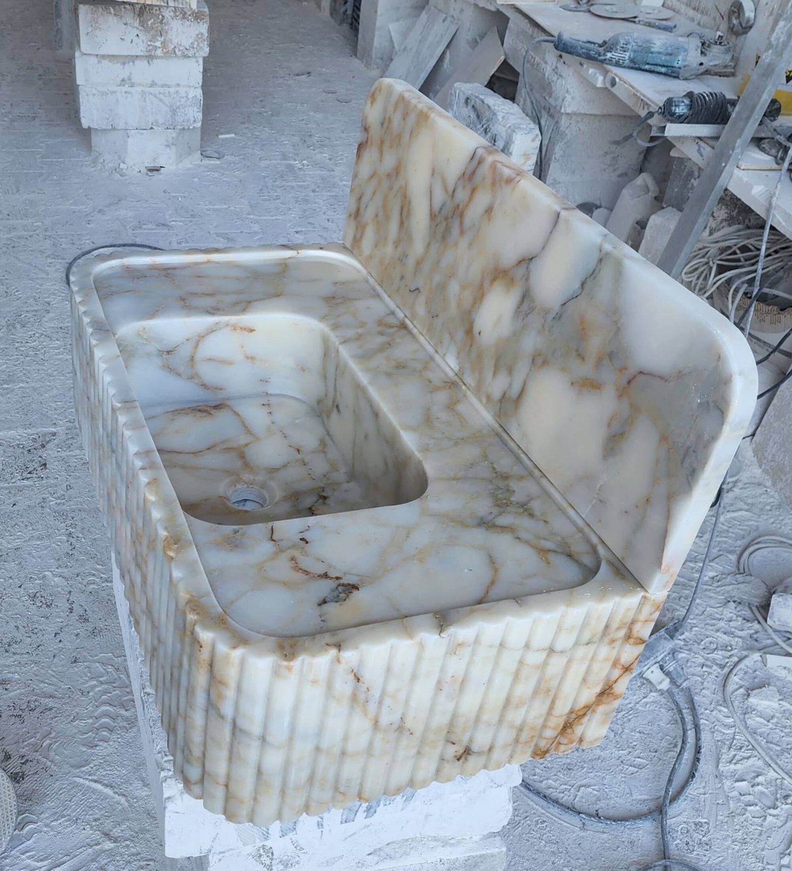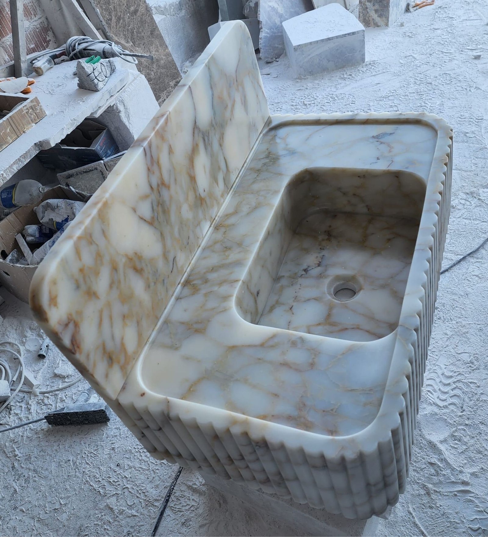 Calacatta Gold Marble Sink for Bathrooms Custom Countertop Vanity Sink Backsplash or Wall Mount Sink, Powder Room Marble Sink