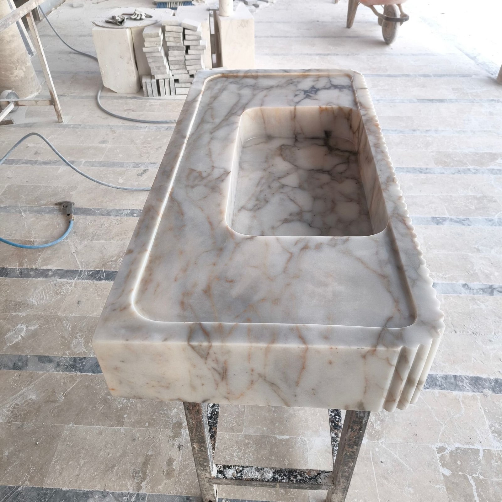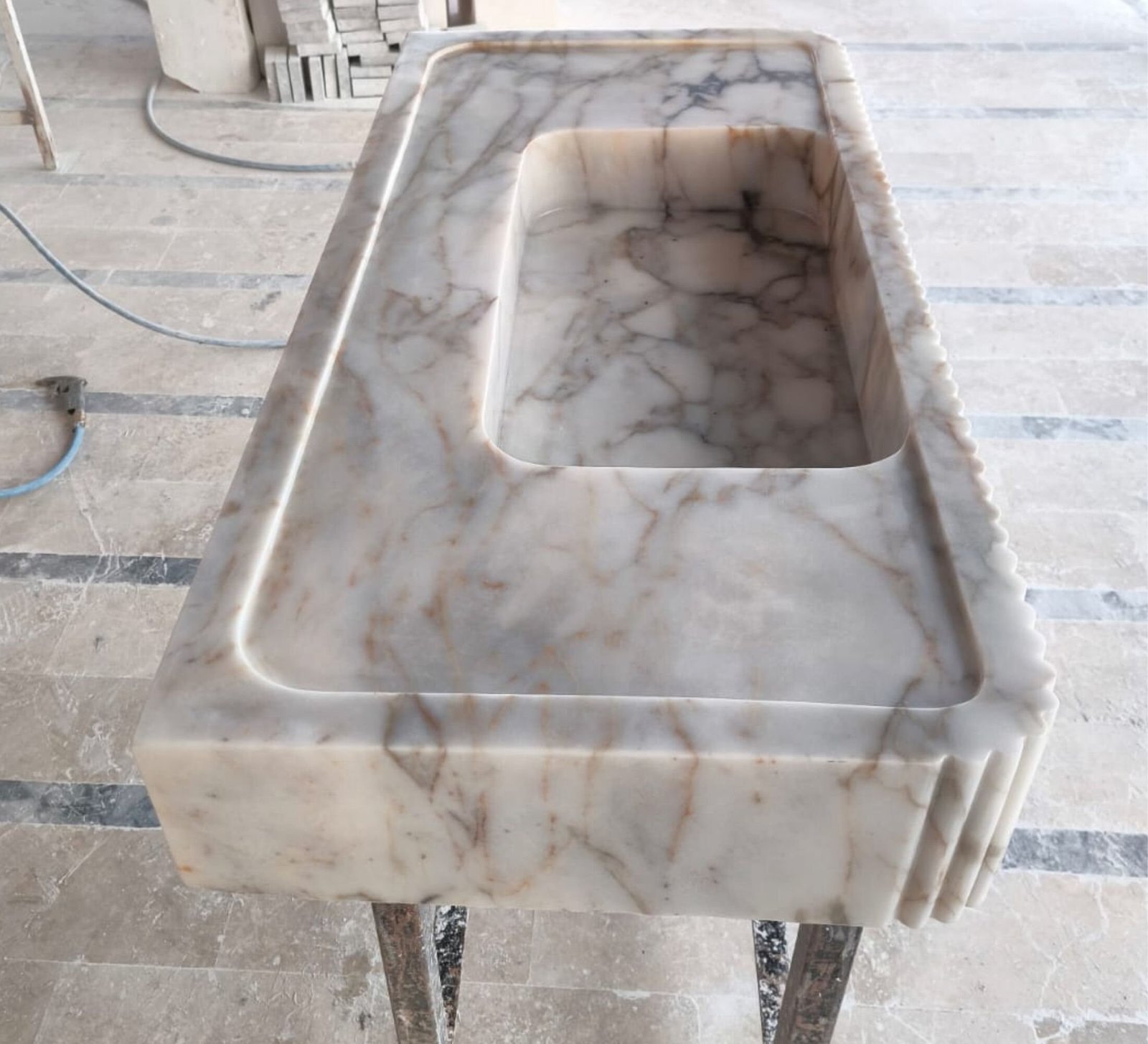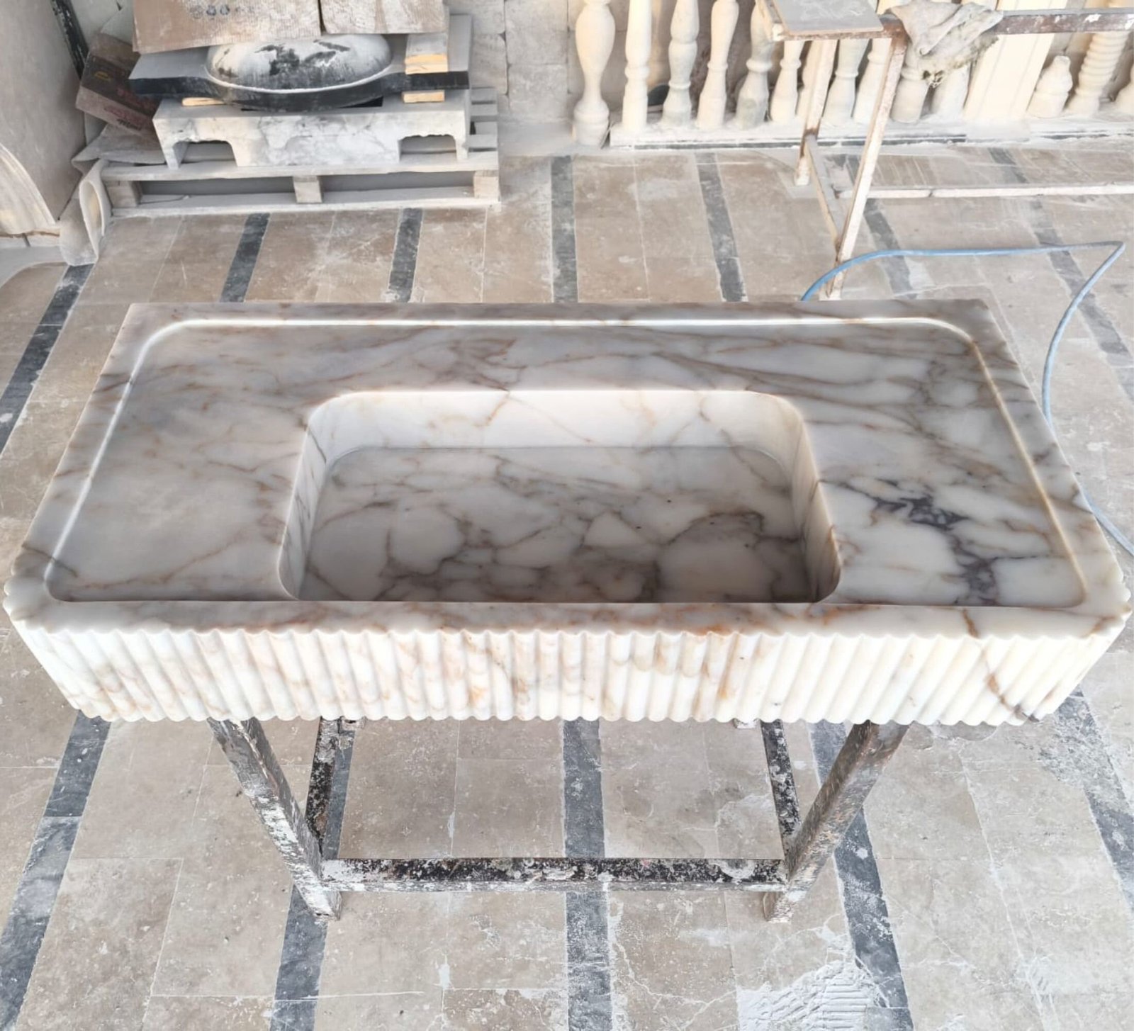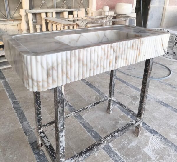 Calacatta Gold Front Ribbed Marble Sink Custom Bathroom Sink