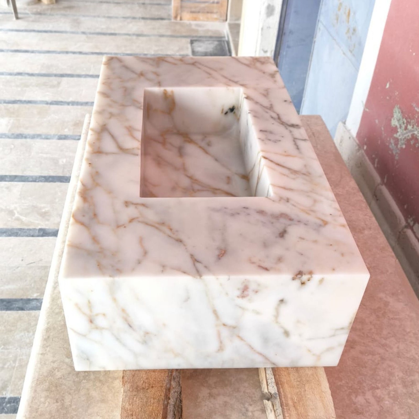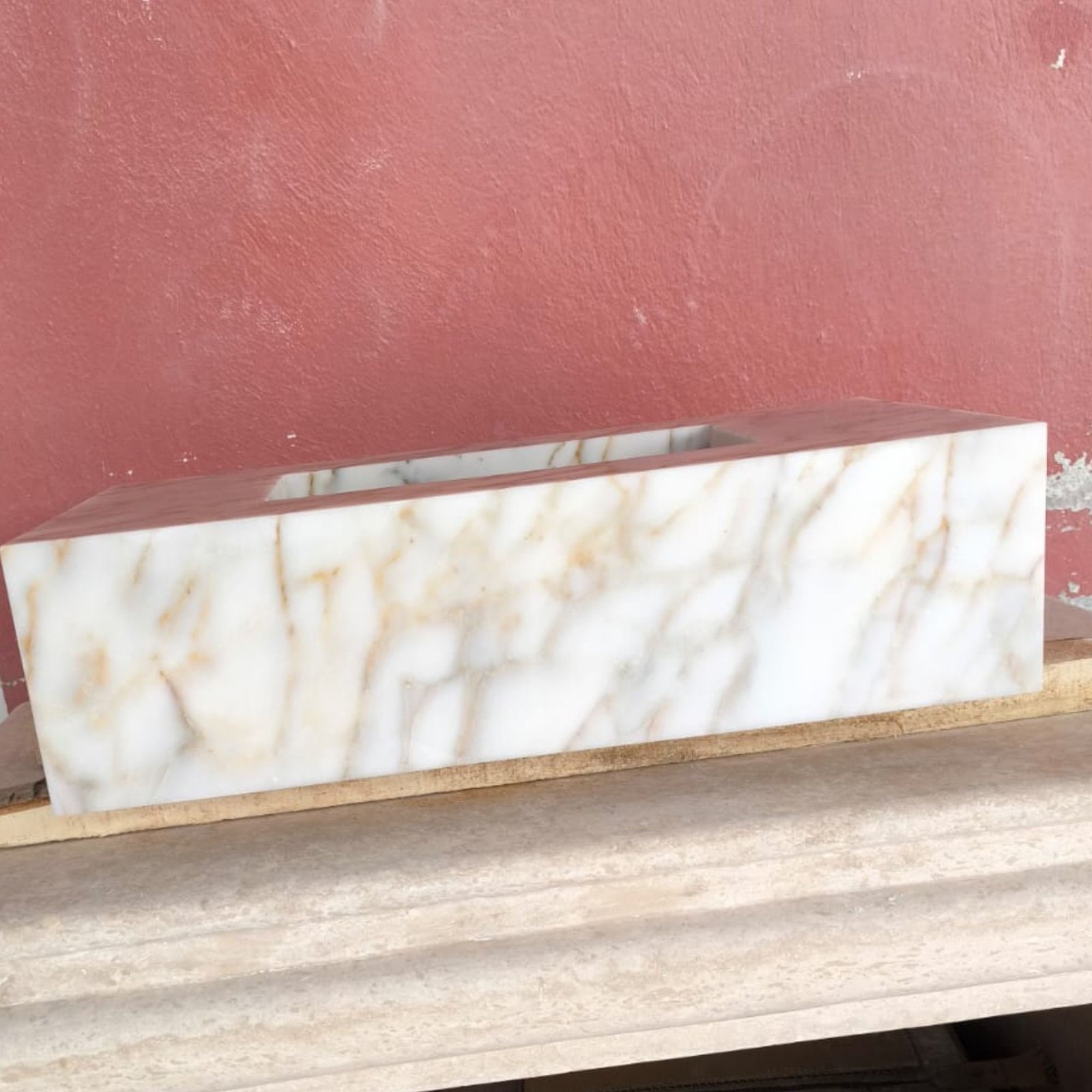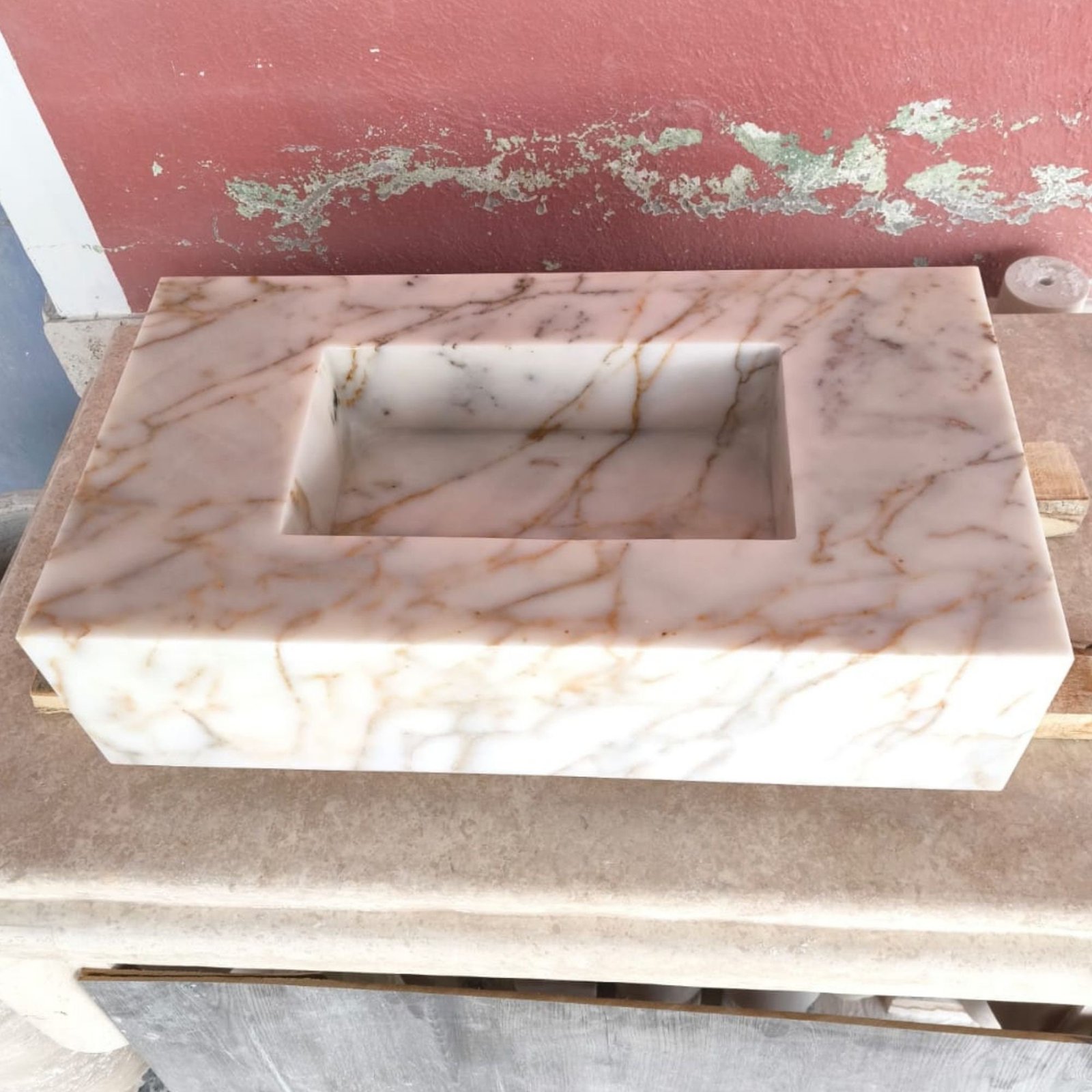 Whether you’re redesigning your bathroom cabinetry or renovating your powder room, our wall-mounted Calacatta Gold Marble Sink offers versatility and style. Its stylish design and customizable options fit perfectly into your space, while its durable structure guarantees long-lasting beauty.