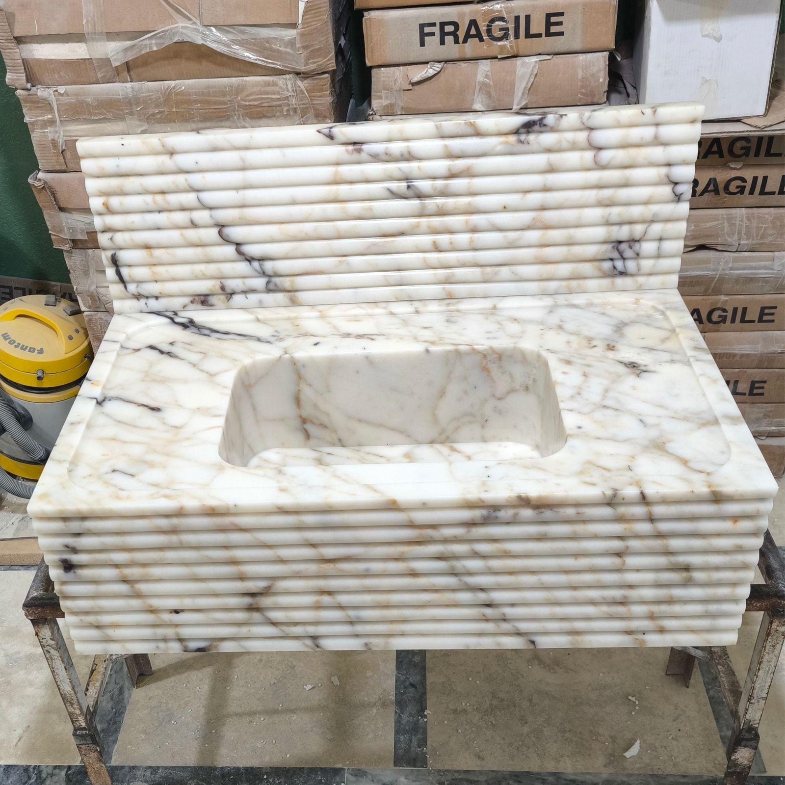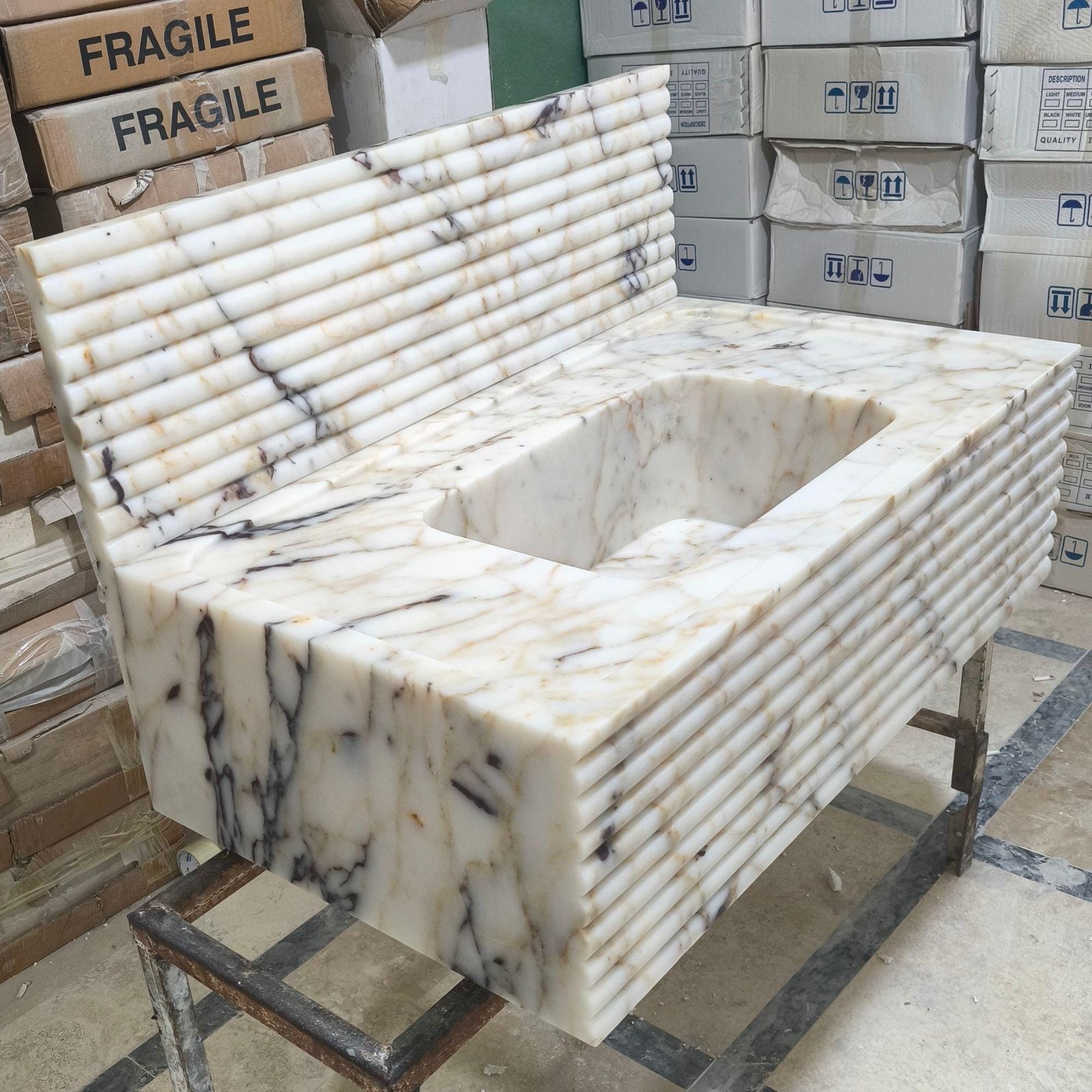 Elevate your bathroom’s elegance with the timeless charm of this handcrafted Calacatta Gold Viola Marble Sink. Perfect for any powder room or bathroom vanity, its sleek design and durable construction offer unmatched beauty and functionality. 🌟