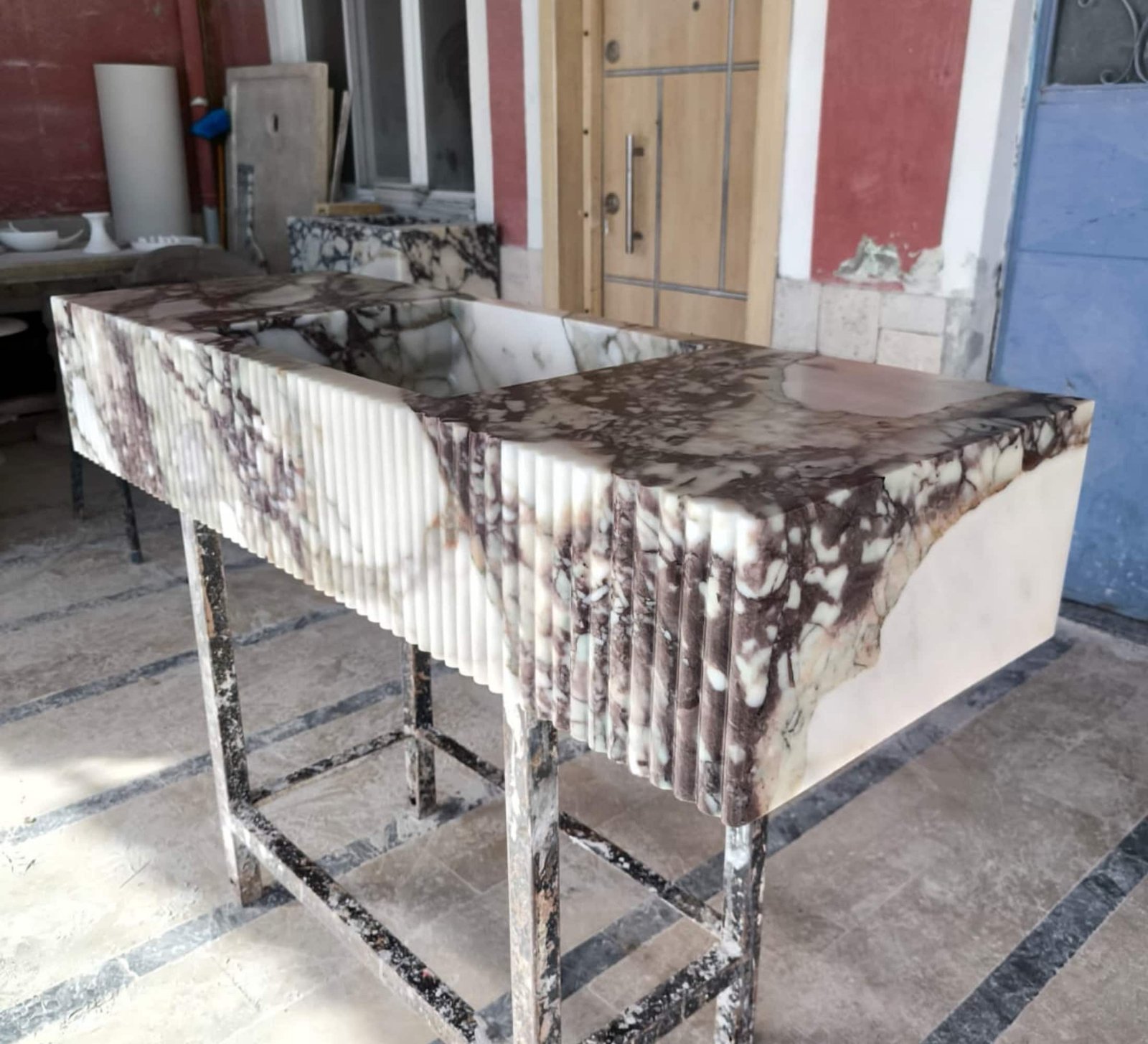 Designed to be both functional and architectural, this rectangular marble sink serves as a centerpiece for modern, transitional, or classic interiors.