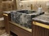 Bring timeless elegance to your space with this Calacatta Monet marble sink, featuring a delicately fluted front and richly veined natural stone. Each basin is uniquely sculpted from premium marble—highlighting its warm ivory base and green-gold veining, reminiscent of fine art in stone.