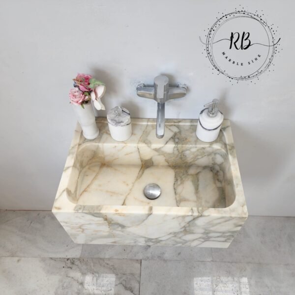 Calacatta Monet Marble Sink: Handcrafted Wall-Mounted Vanity