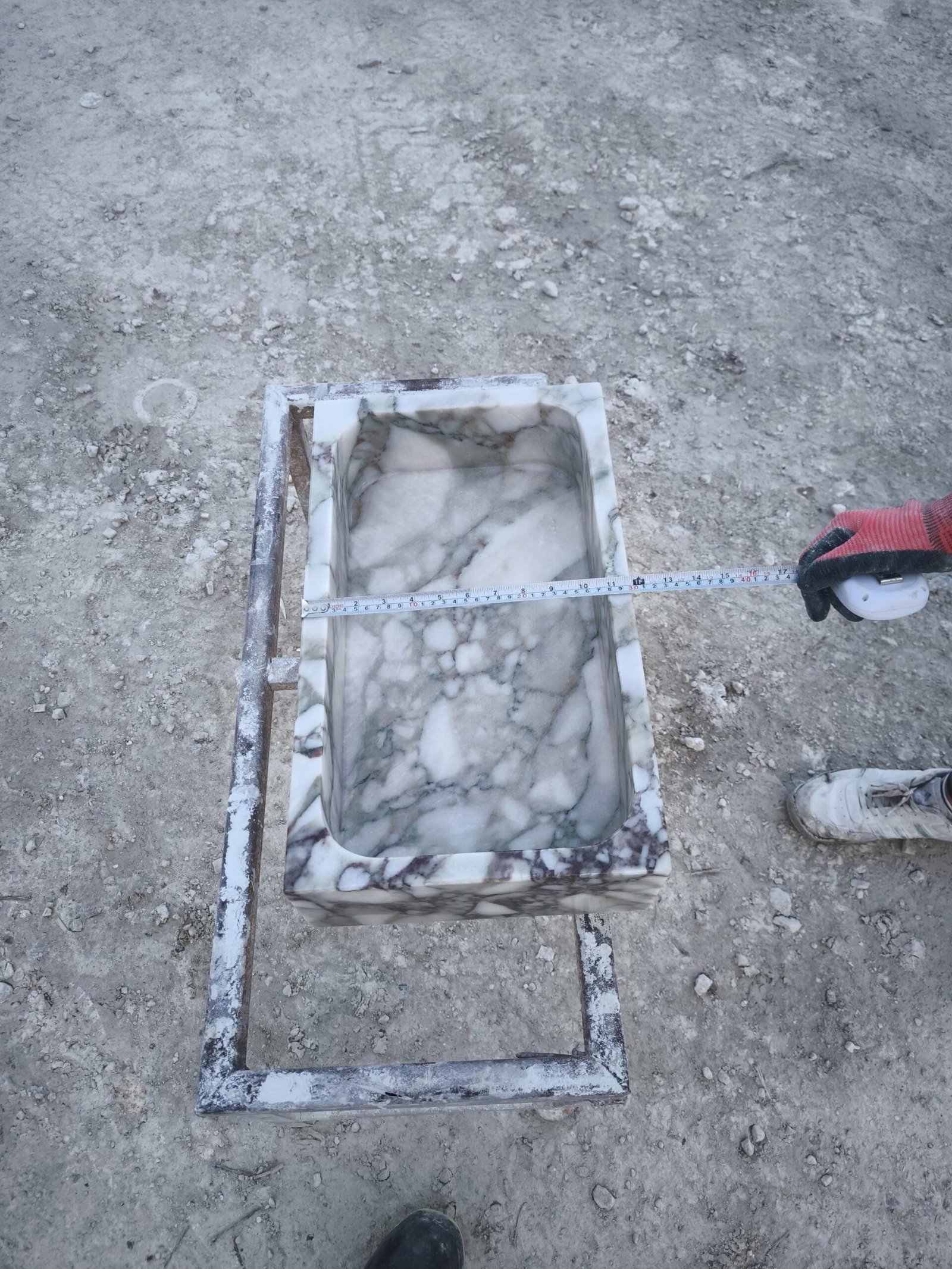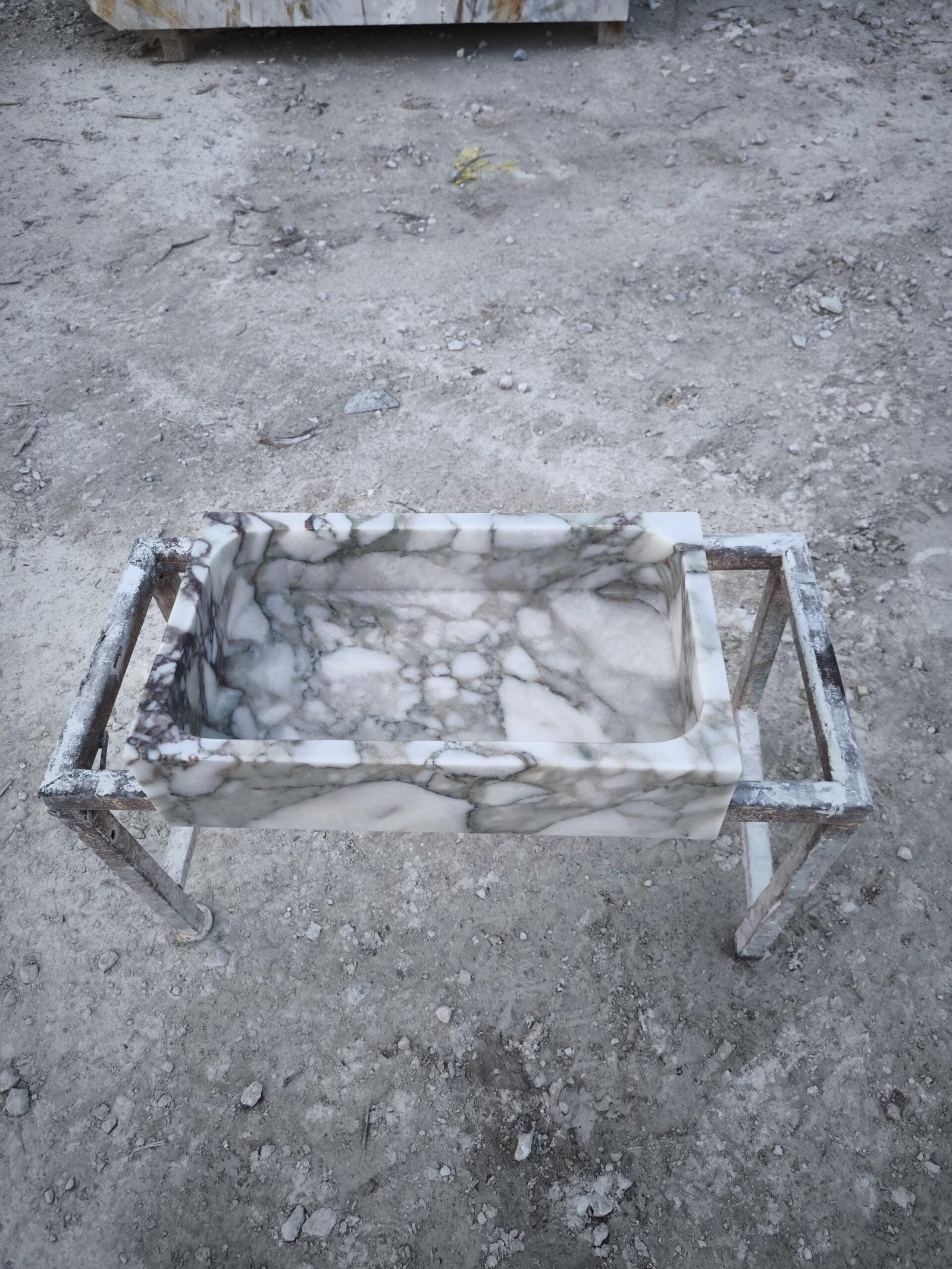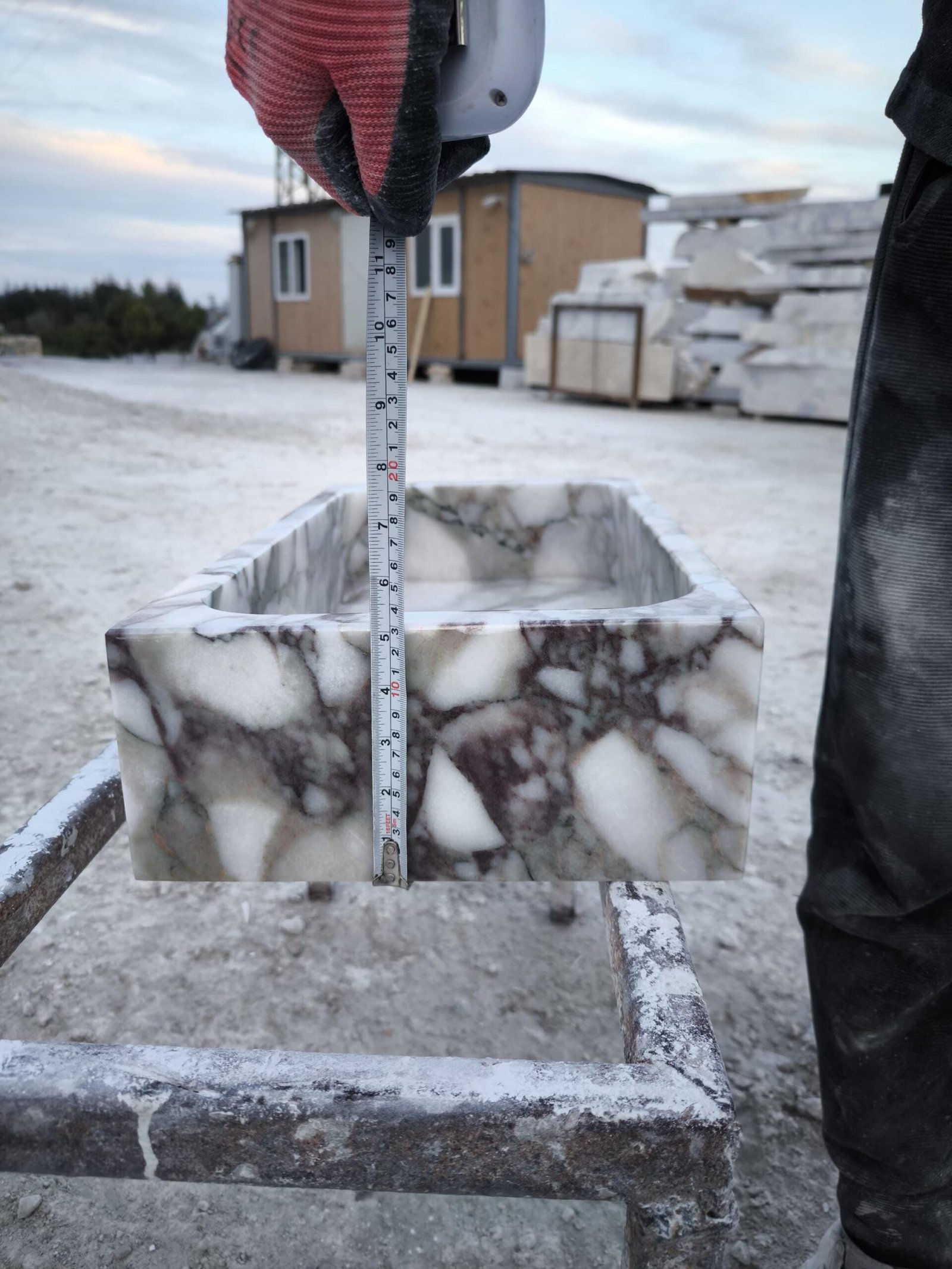 This rare Calacatta Monet marble sink is a true gem — a ready-to-ship luxury sink carved from one of Italy’s most prized stones. With its painterly veins in deep burgundy, grey, and soft ivory, this piece invites elegance into any space while standing firm as a statement of refined taste.