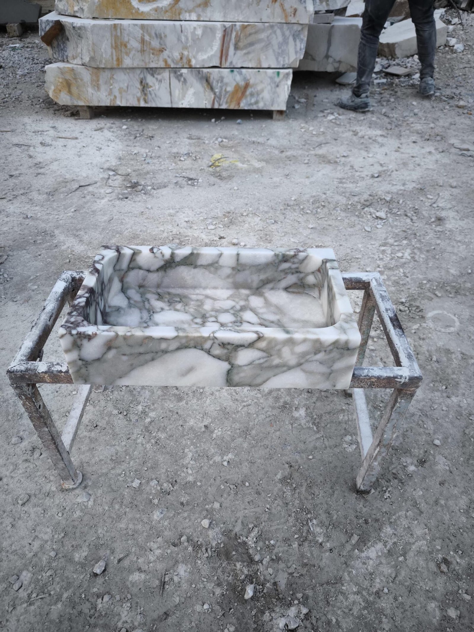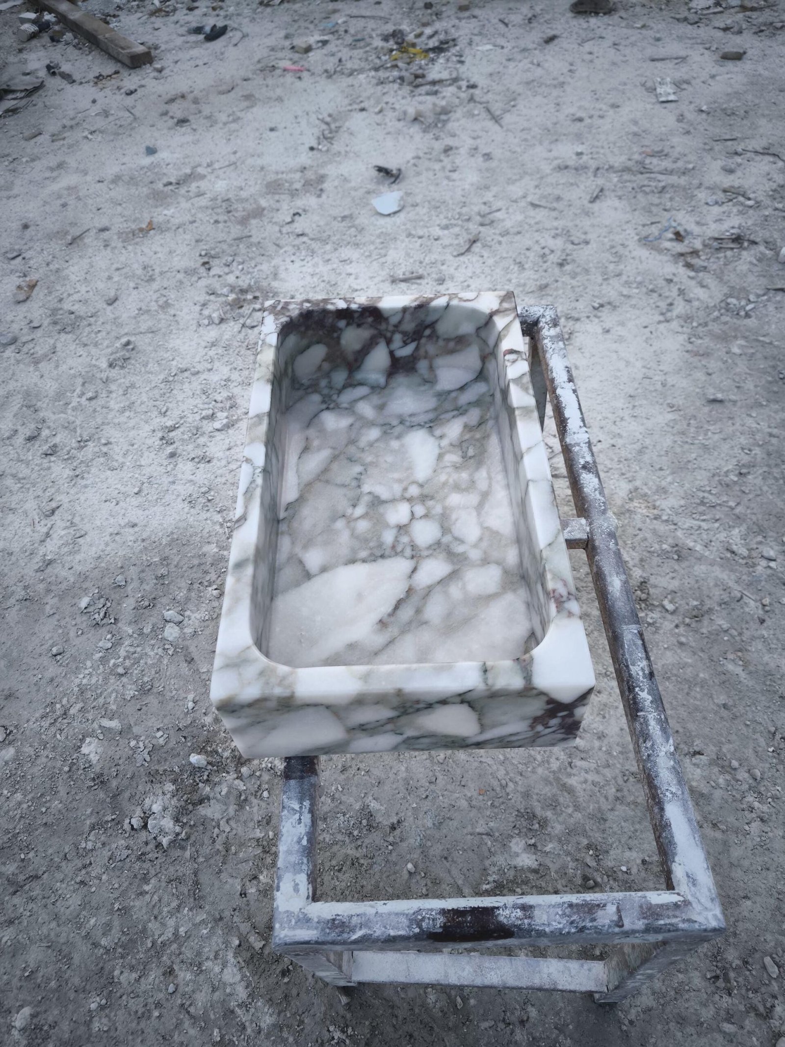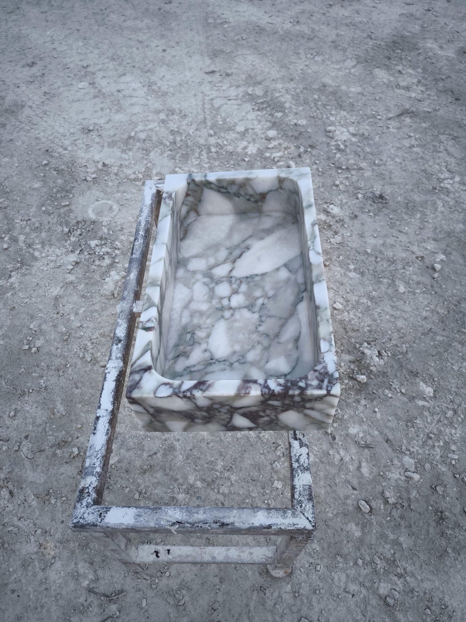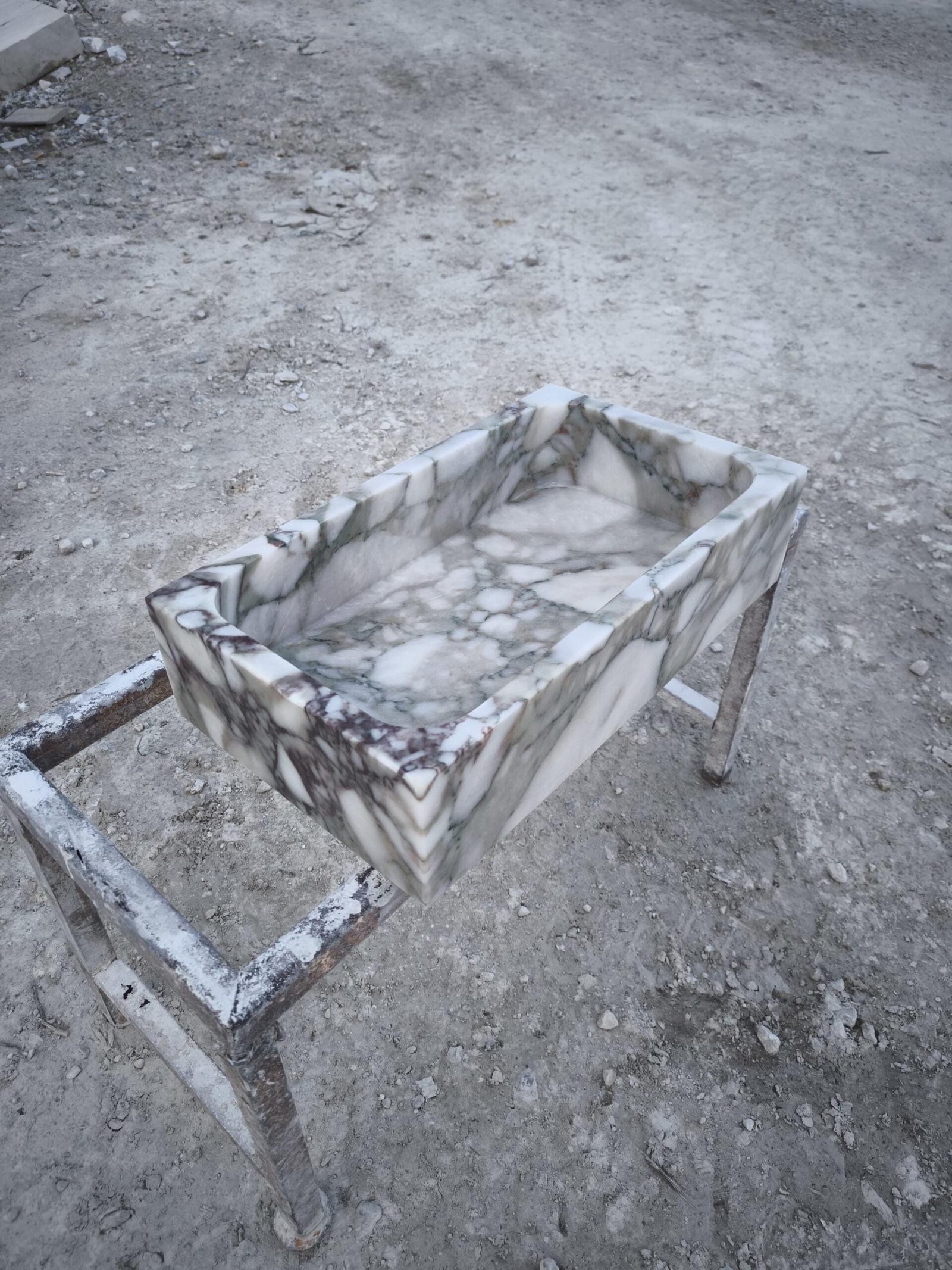 This rare Calacatta Monet marble sink is a true gem — a ready-to-ship luxury sink carved from one of Italy’s most prized stones. With its painterly veins in deep burgundy, grey, and soft ivory, this piece invites elegance into any space while standing firm as a statement of refined taste.