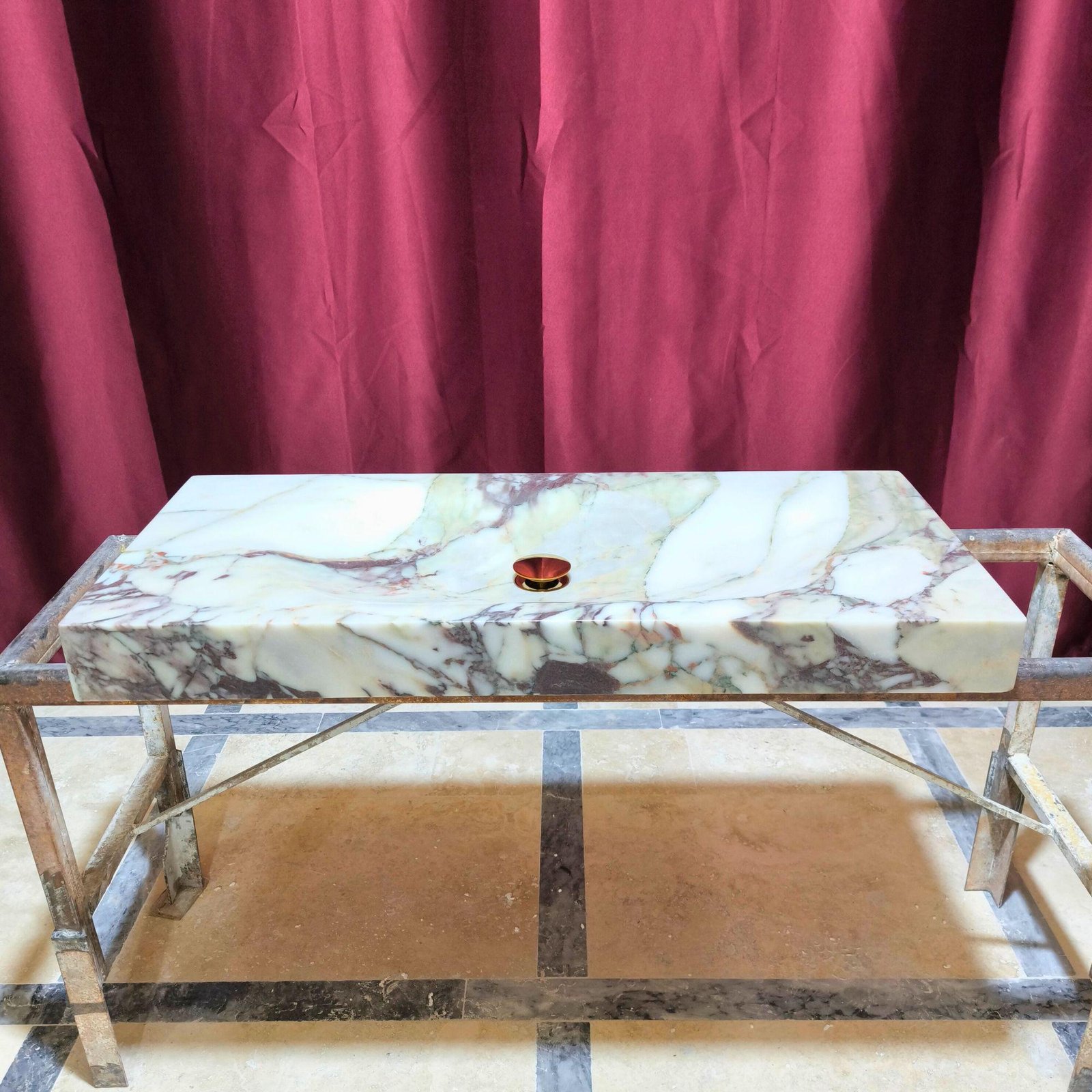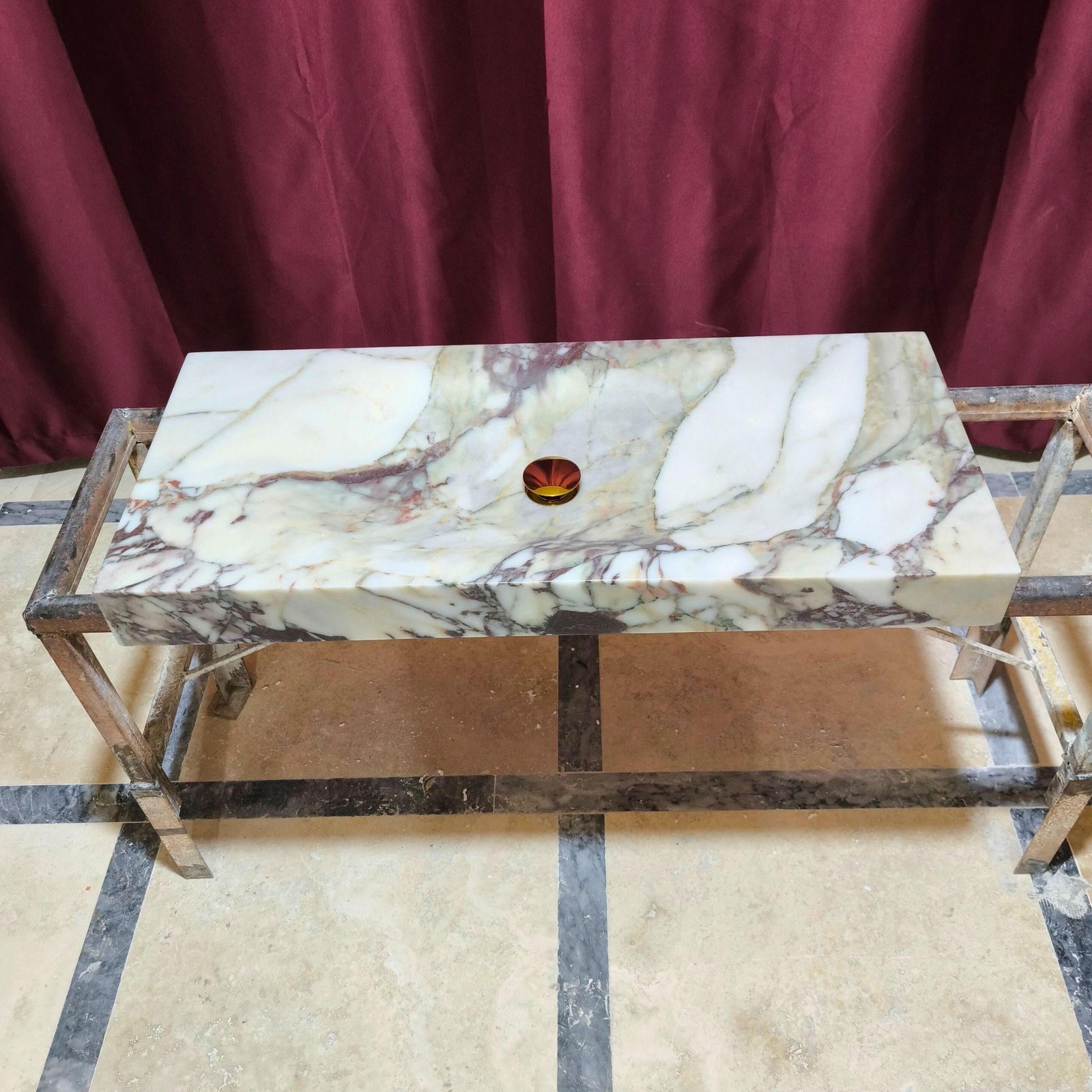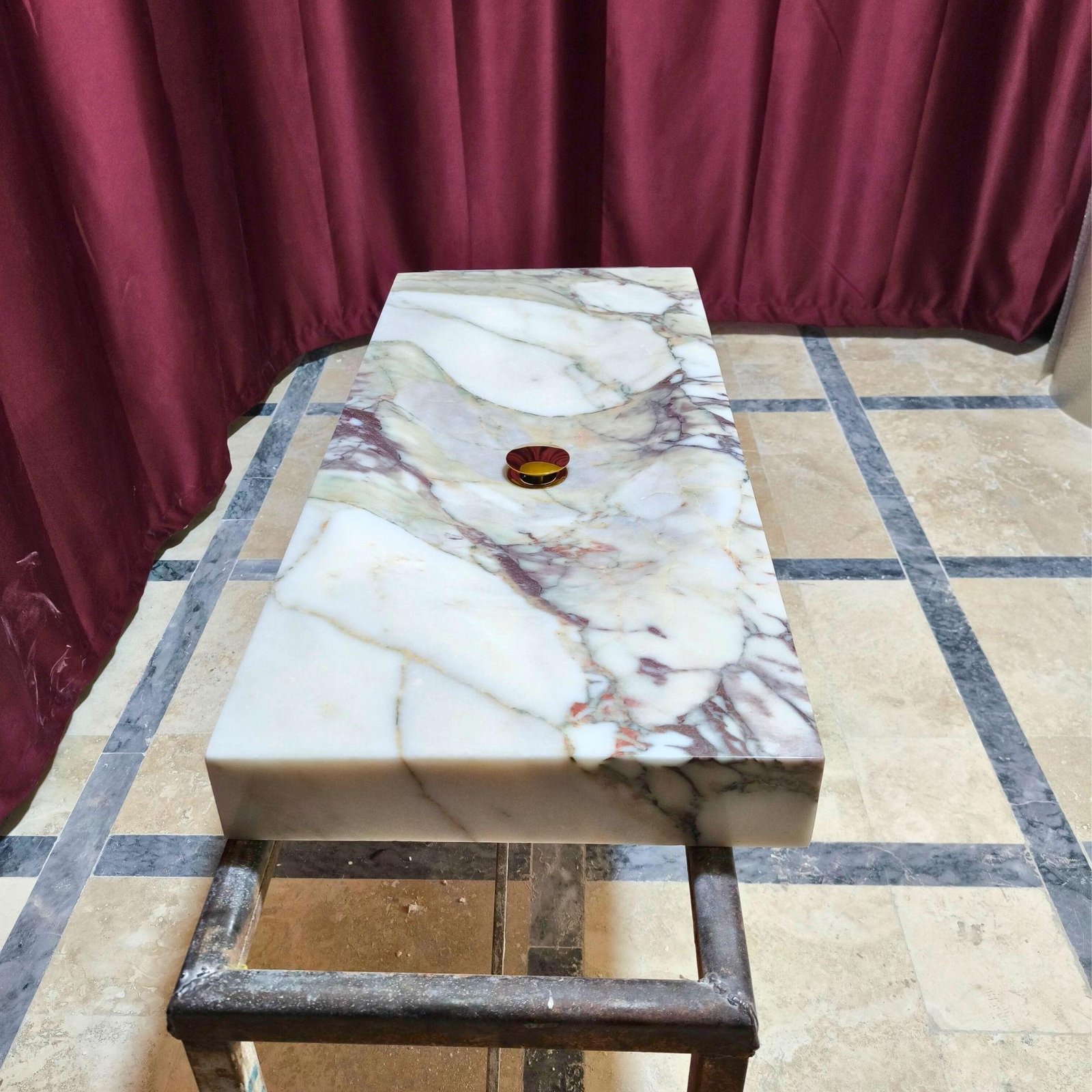 Upgrade your bathroom or powder room with this stunning Calacatta Monet marble sink. Handcrafted from luxurious natural stone, this rectangular vessel sink blends elegance with durability. Ideal for modern or classic spaces, this custom marble sink is available in striking green or viola marble to complement any decor.