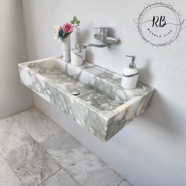 Marble Type and Name: Wall Mounted Calacatta Monet Marble sink – custom order