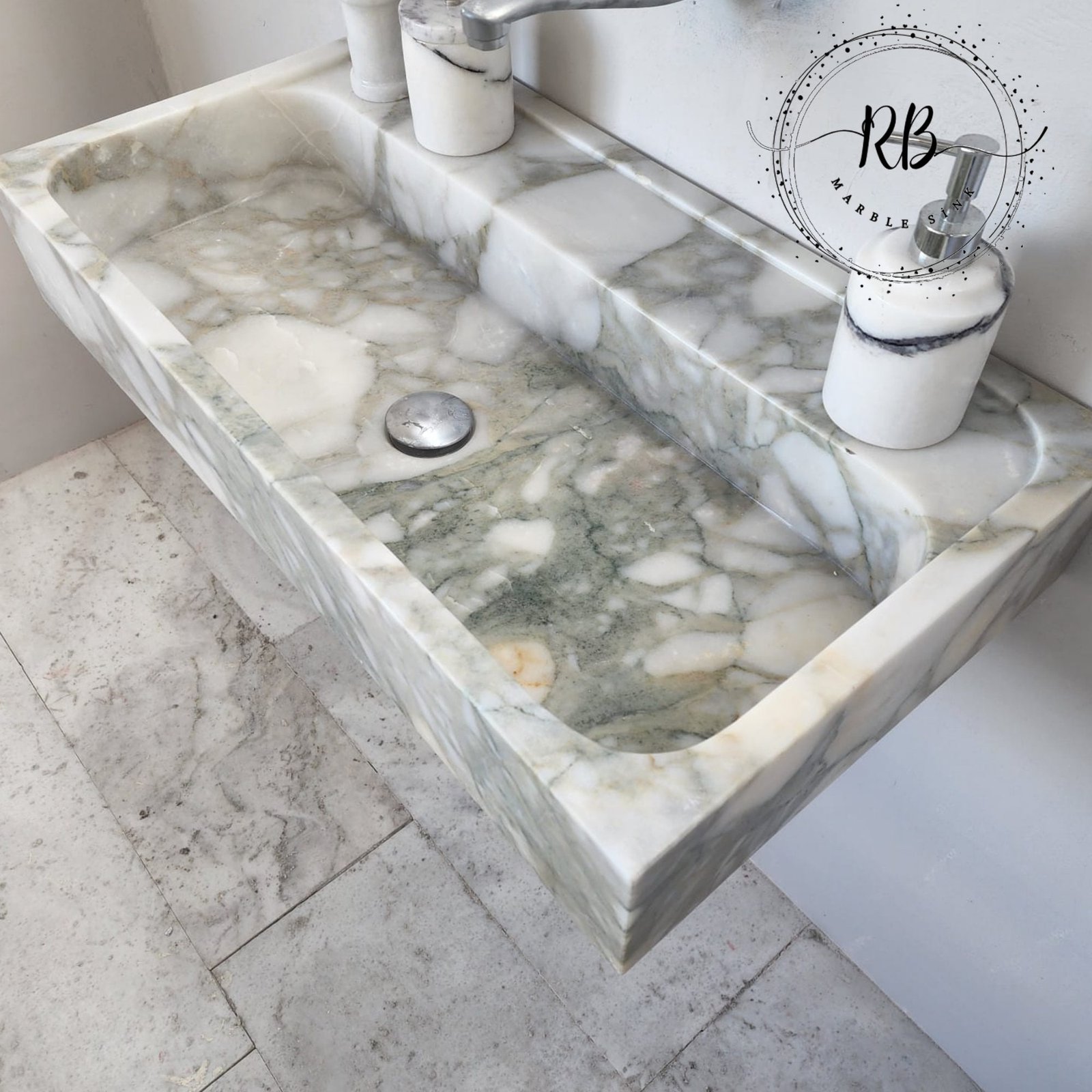 For Leah: Production will be made from Calacatta Monet marble in dimensions of 23x33x8″ according to the dimensions and model in the drawing. Tap holes will be opened as in the drawing. Production time is 1-5 weeks. Price includes shipping. Customs duties…