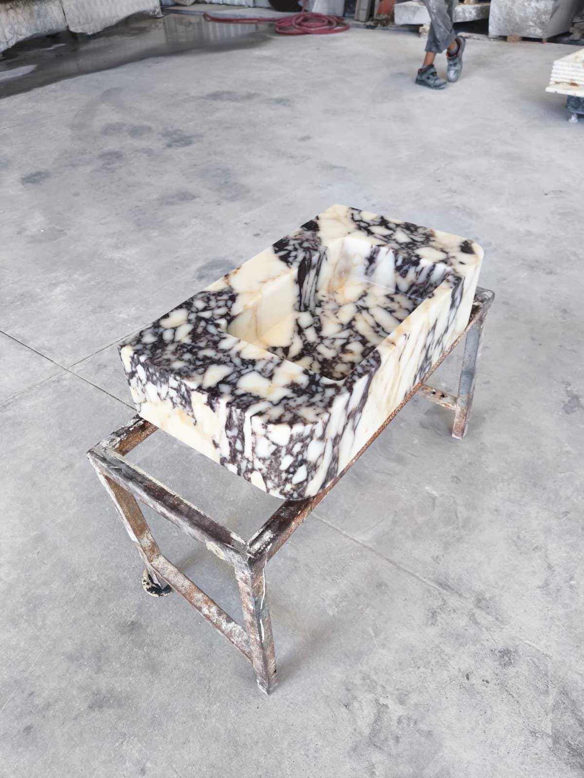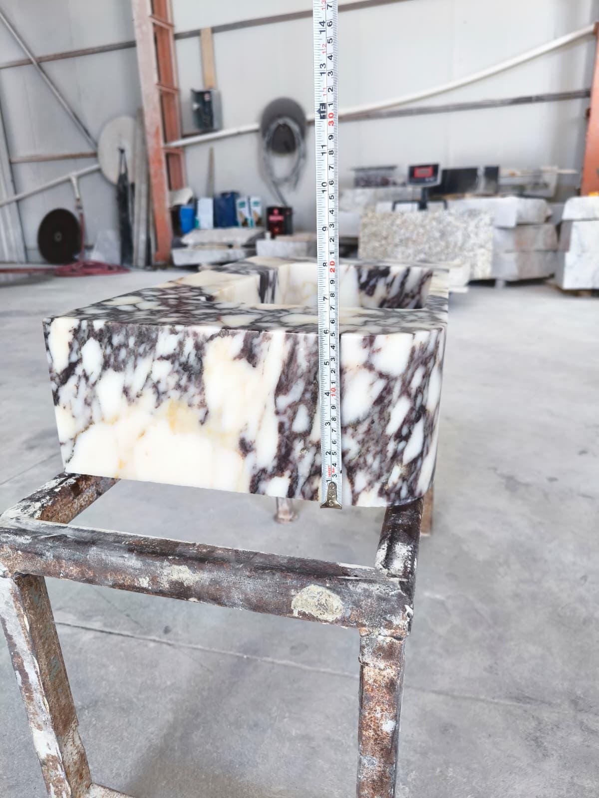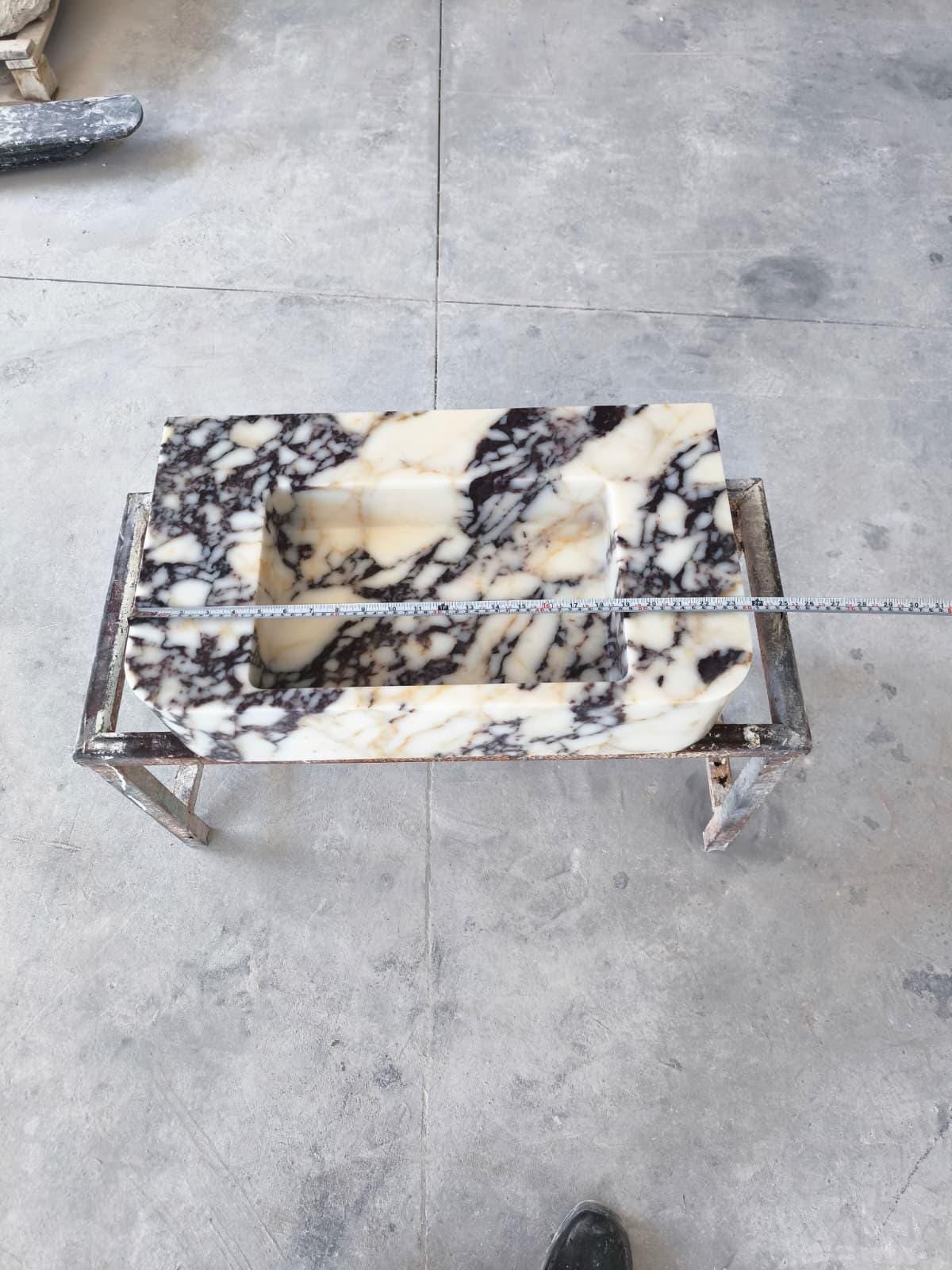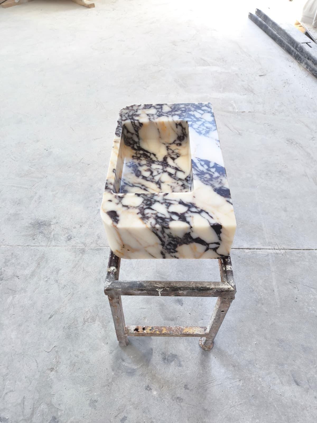 Elevate your bathroom with the timeless elegance of this Calacatta Viola marble sink, hand-carved from premium natural stone. The striking contrast of deep violet veins against a creamy white base creates a statement piece that blends luxury with artisan craftsmanship.