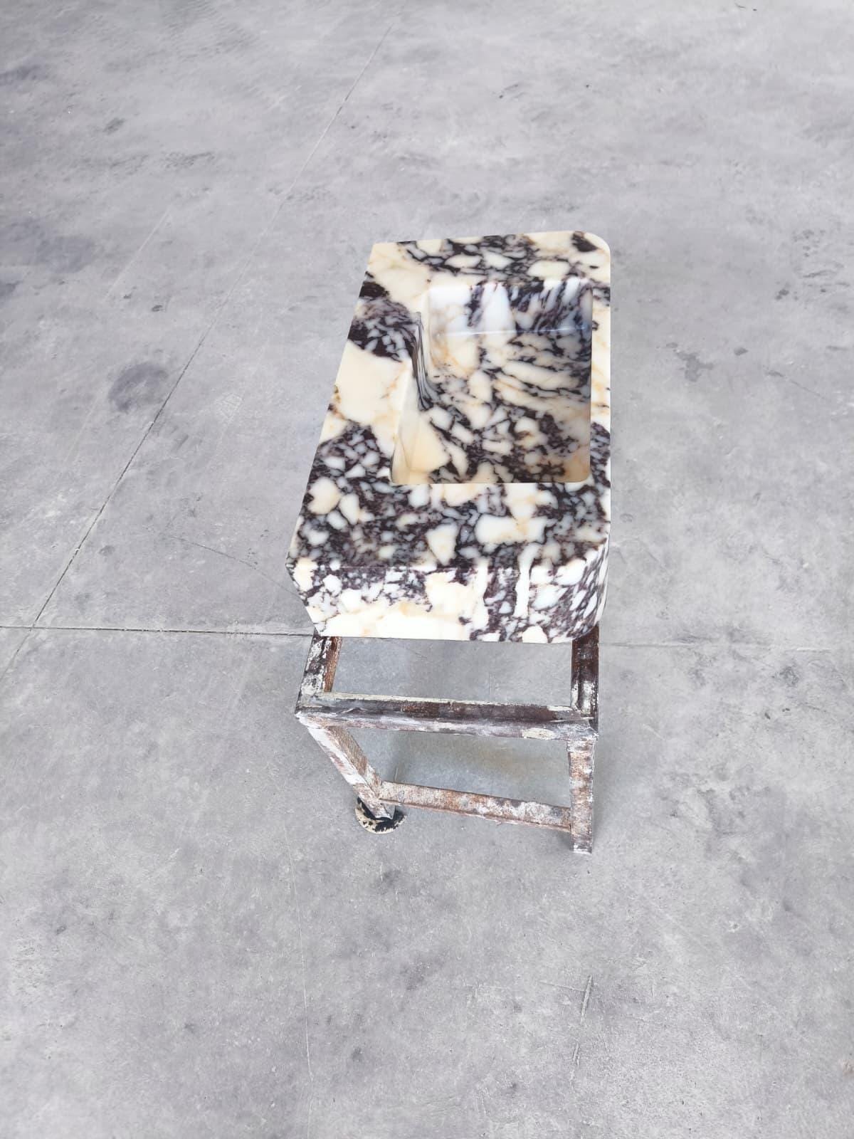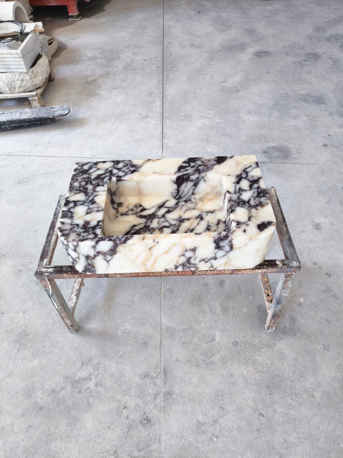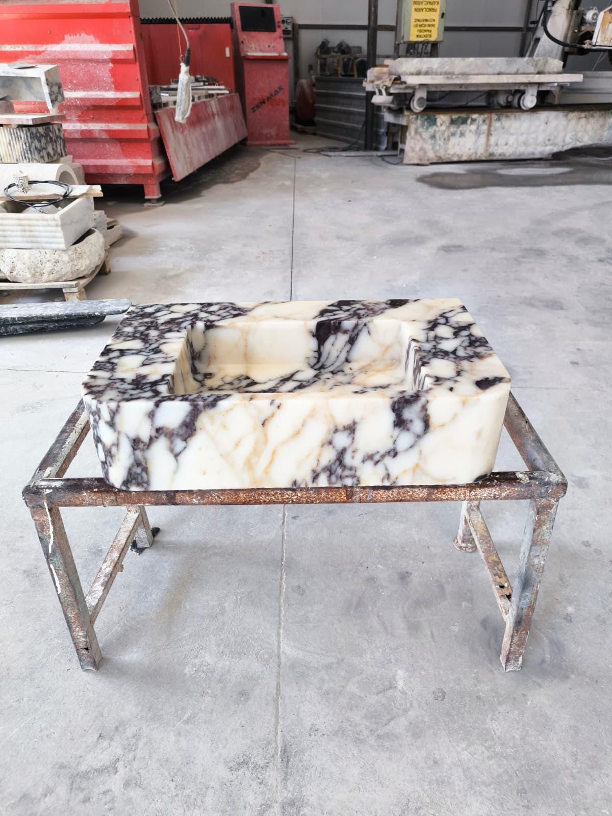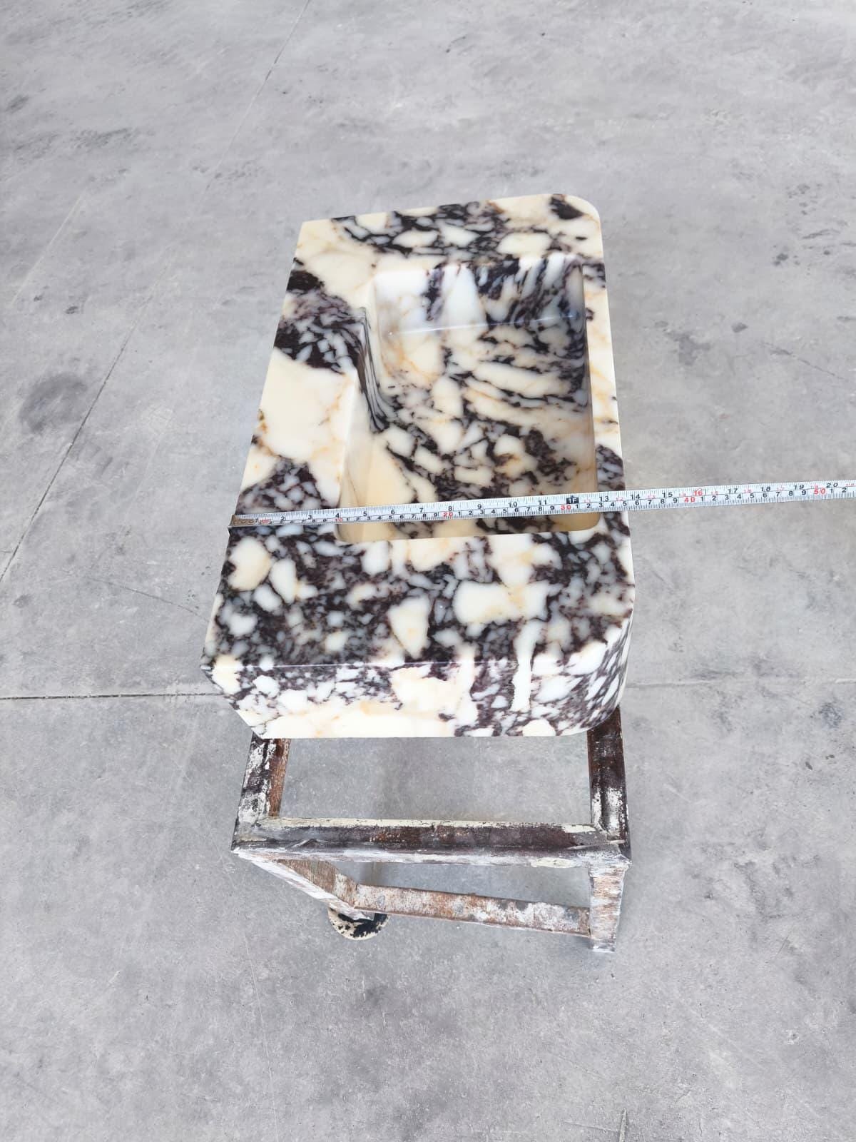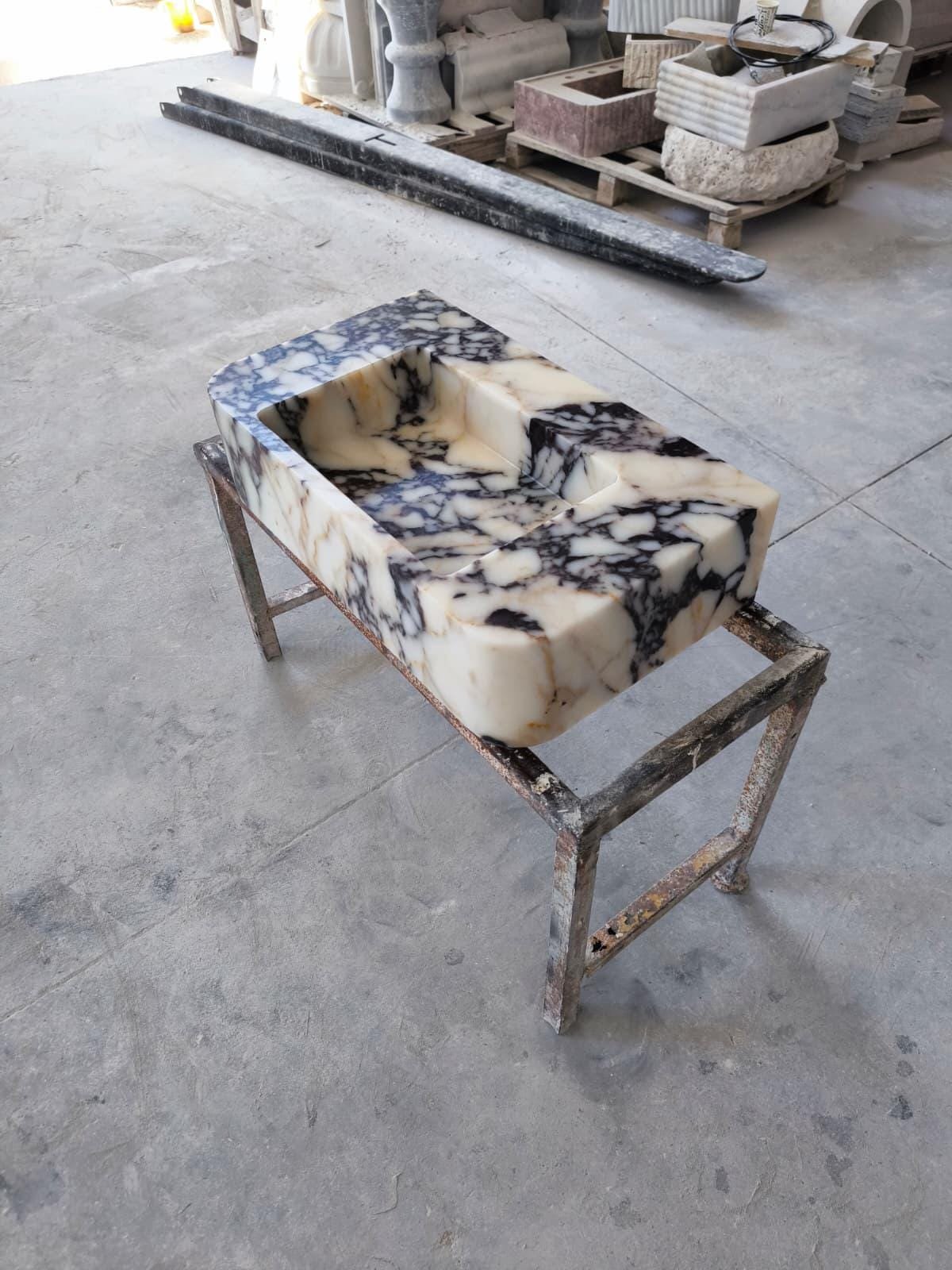 Elevate your bathroom with the timeless elegance of this Calacatta Viola marble sink, hand-carved from premium natural stone. The striking contrast of deep violet veins against a creamy white base creates a statement piece that blends luxury with artisan craftsmanship.