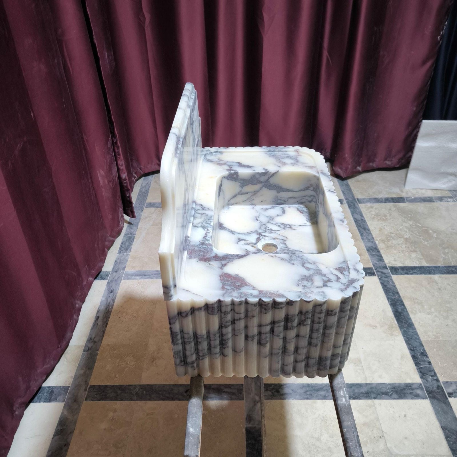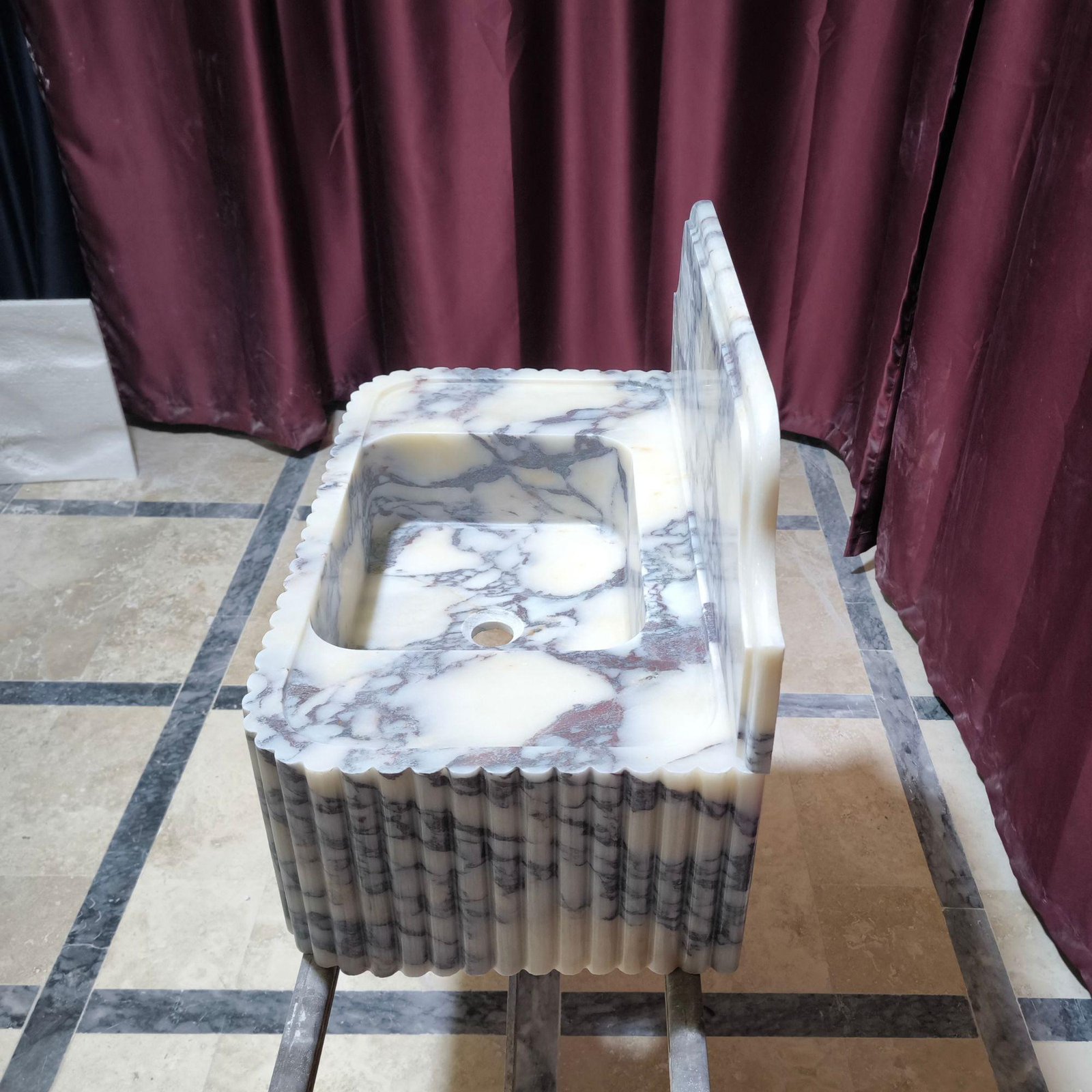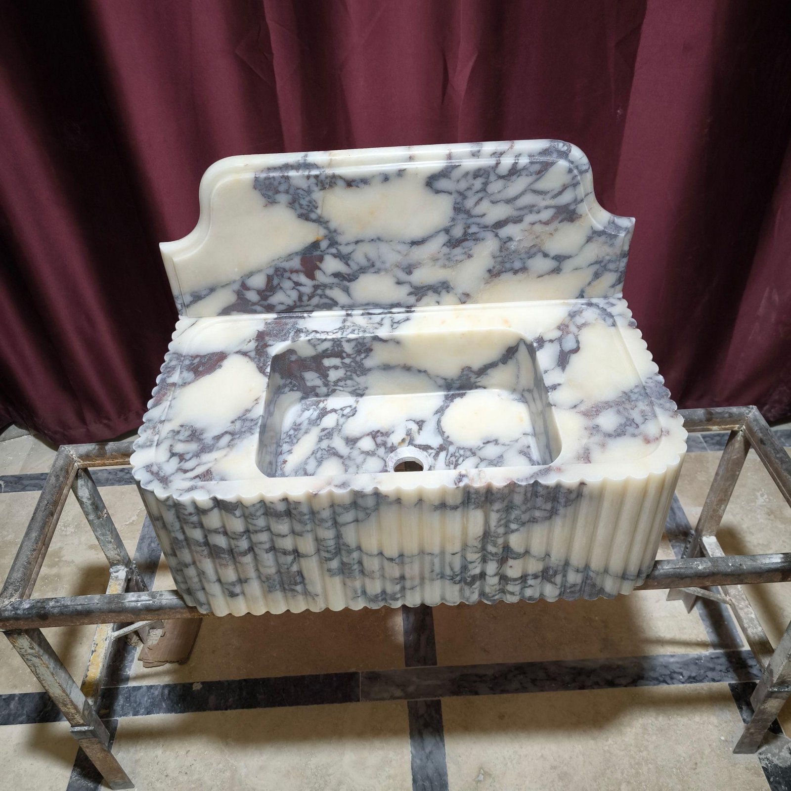 Custom Calacatta Viola Marble Sink Ribbed DesignWall Mount, Sink for Bathrooms Natural Stone Vessel Sink Rounded Corners Sink