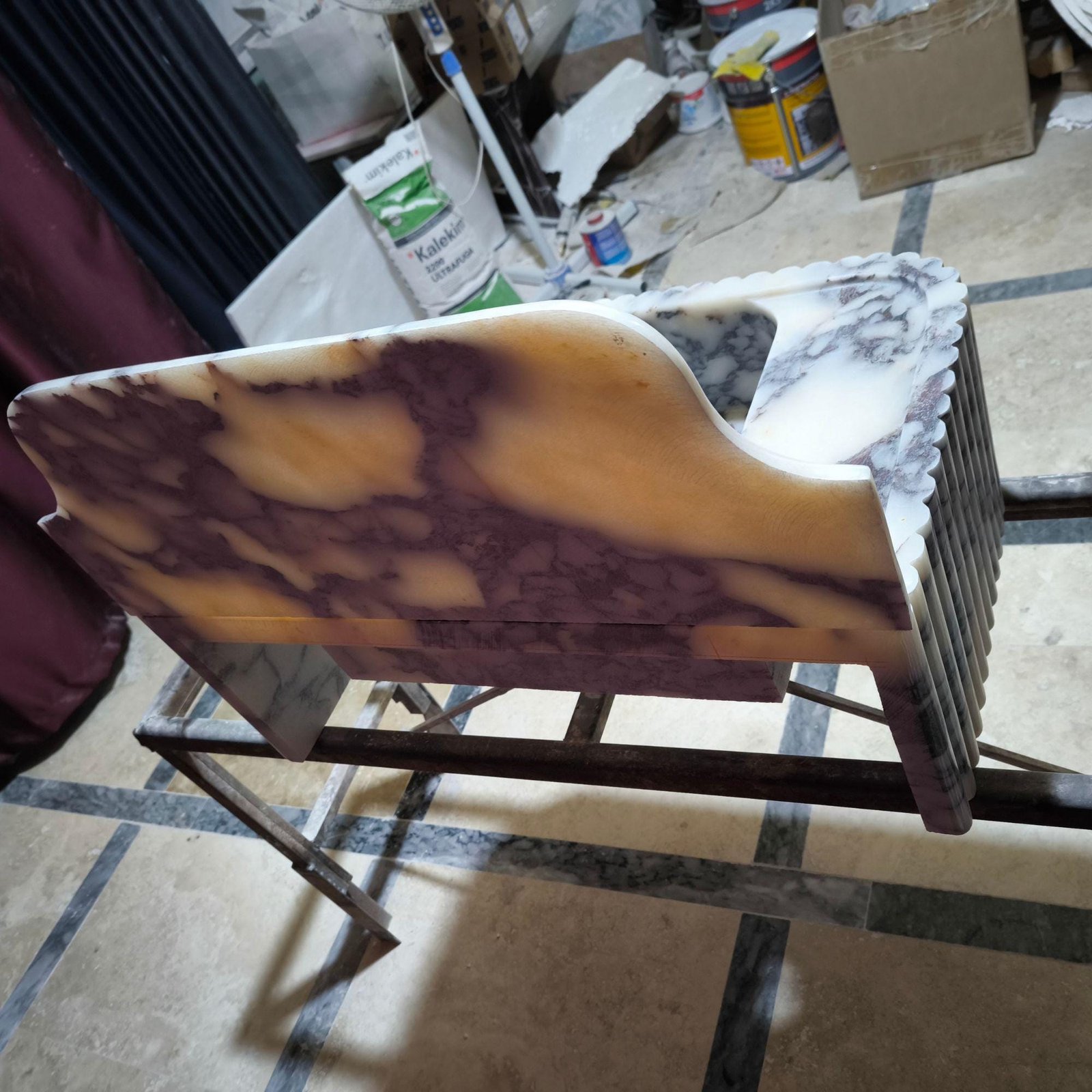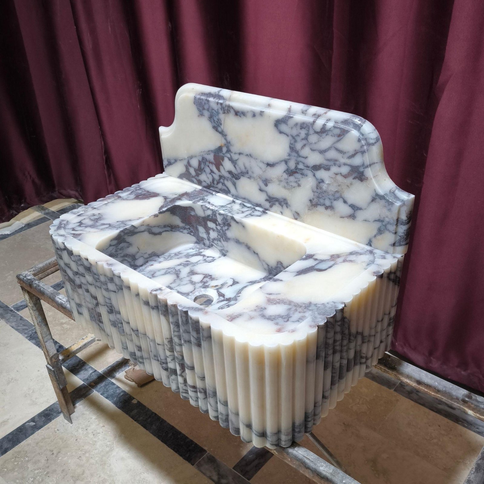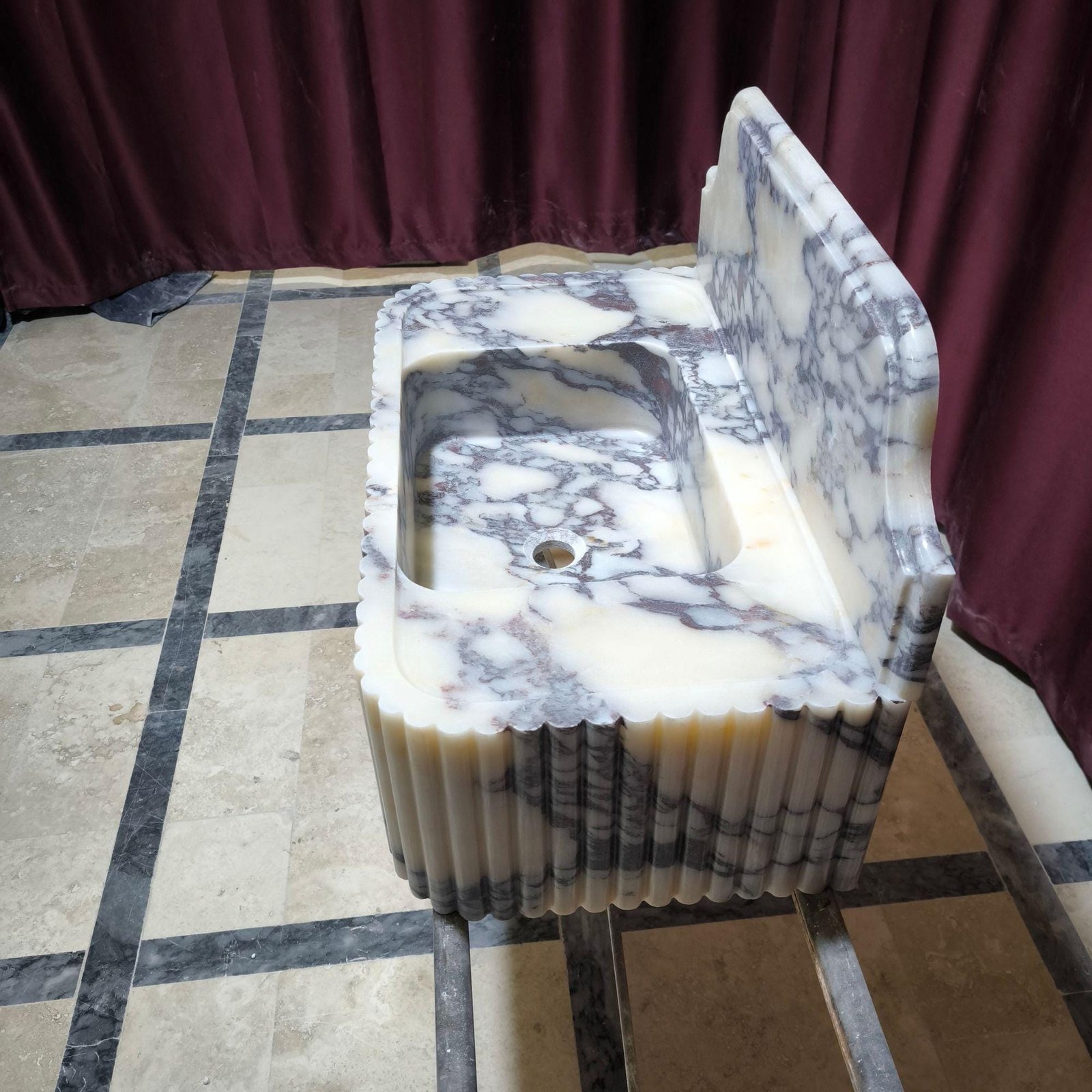 Custom Calacatta Viola Marble Sink Ribbed DesignWall Mount, Sink for Bathrooms Natural Stone Vessel Sink Rounded Corners Sink