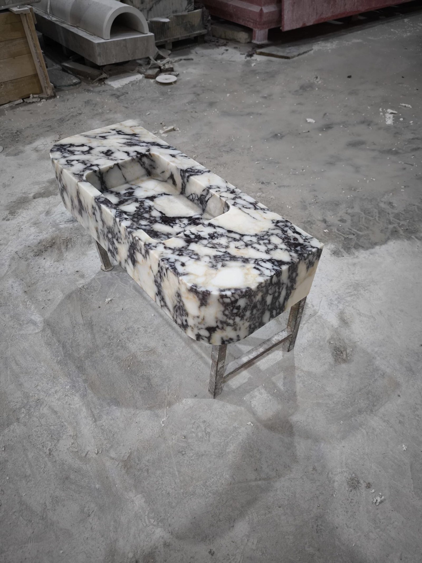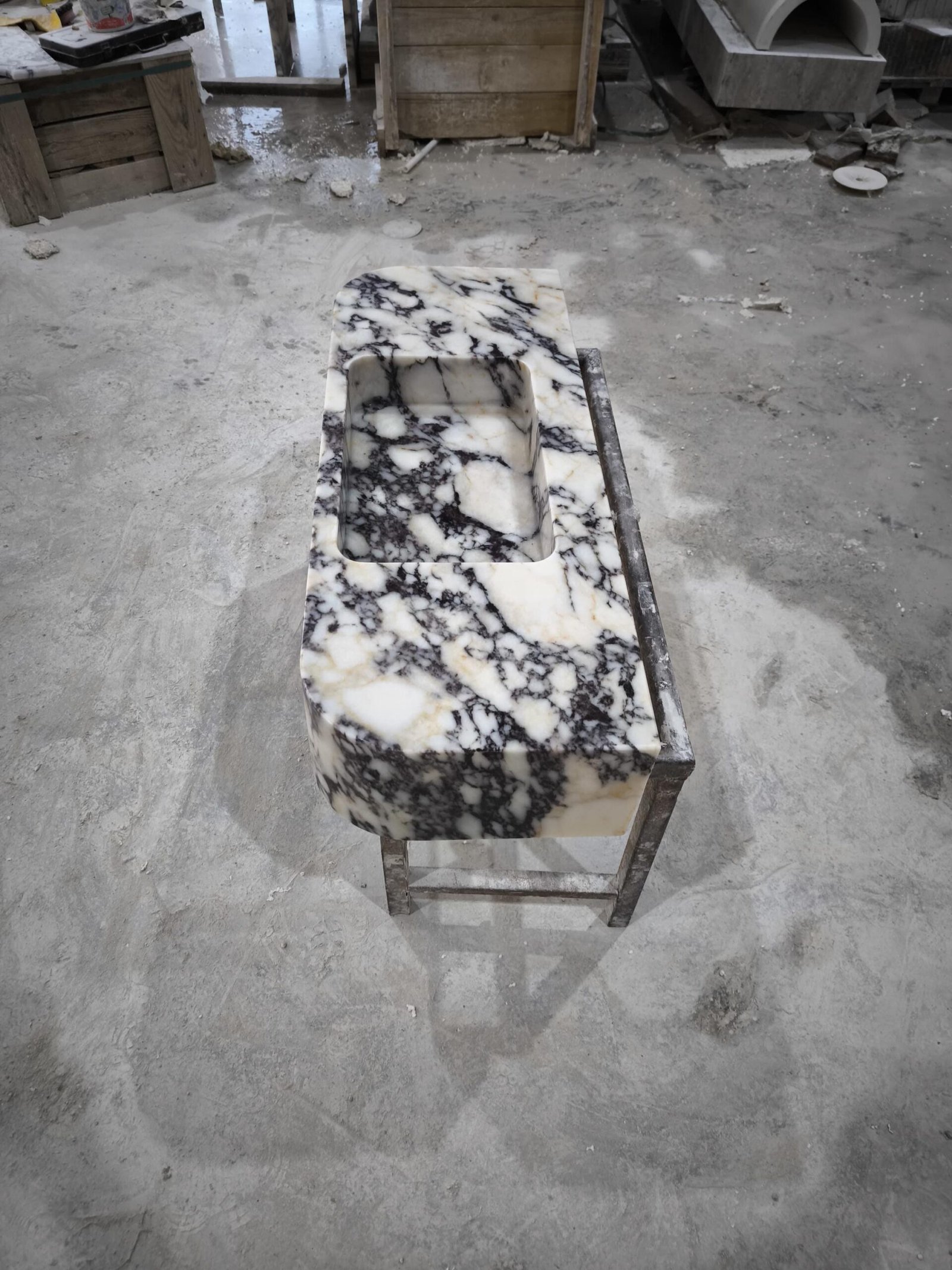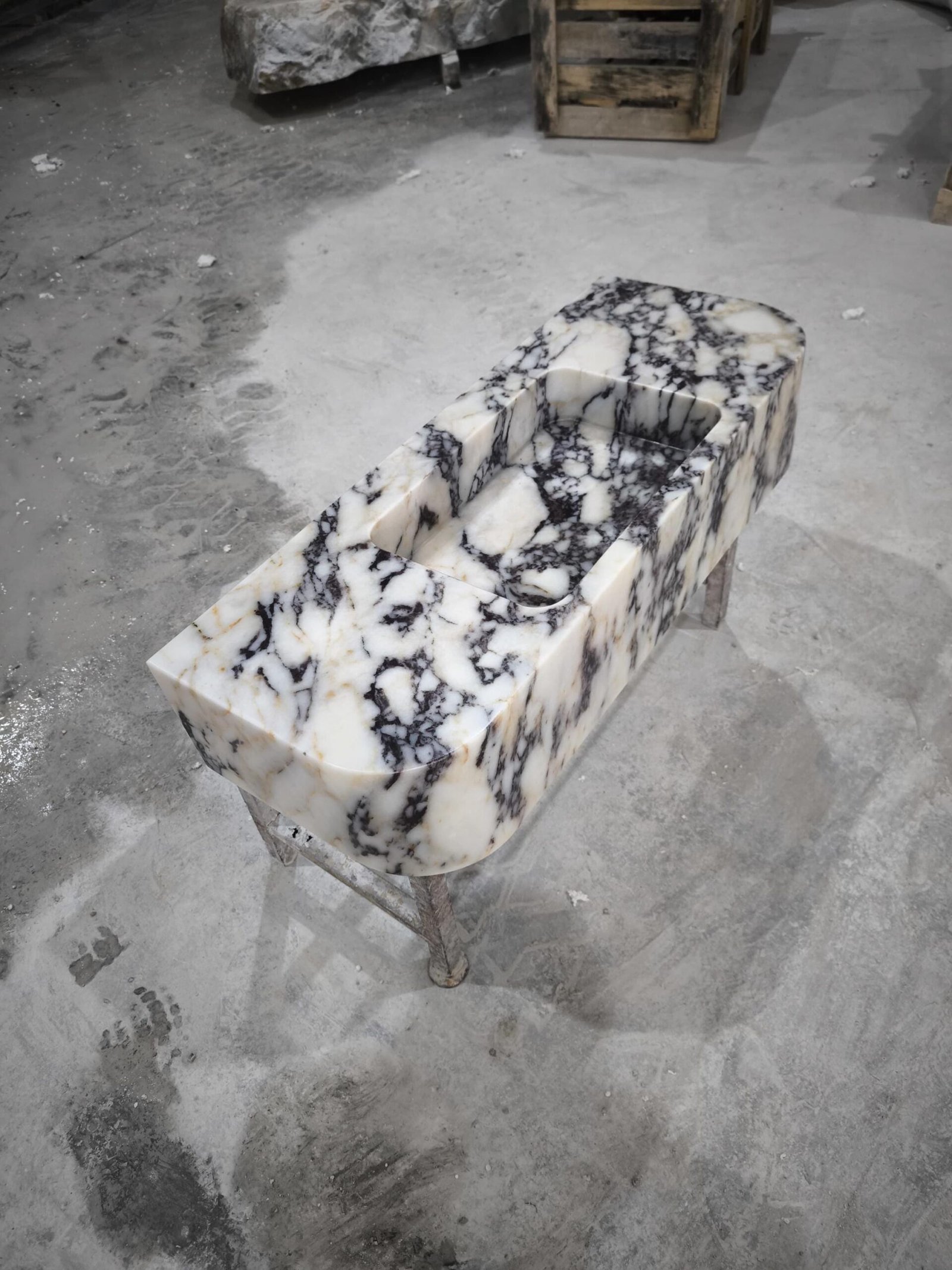 Elevate your space with this handcrafted Calacatta Viola marble sink — a true statement piece merging Italian artistry with modern design. The bold, natural veining of Calacatta Viola stone evokes timeless luxury, while the sculpted rectangular basin adds architectural beauty and minimal sophistication to any bath sanctuary.