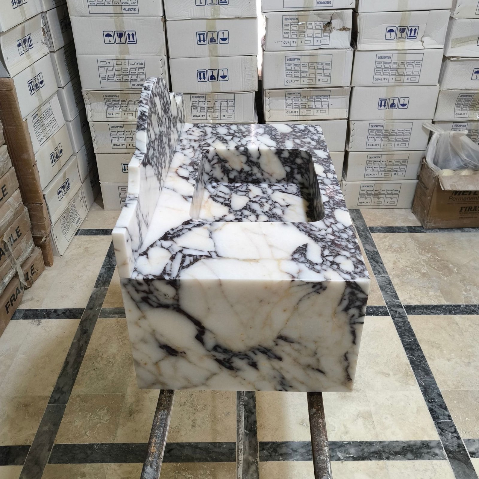 Elevate your bathroom design with this stunning Calacatta Viola marble sink, a luxurious natural stone centerpiece that blends elegance with practicality. 🌟 Perfect for modern and classic interiors alike, this sink exudes timeless beauty.