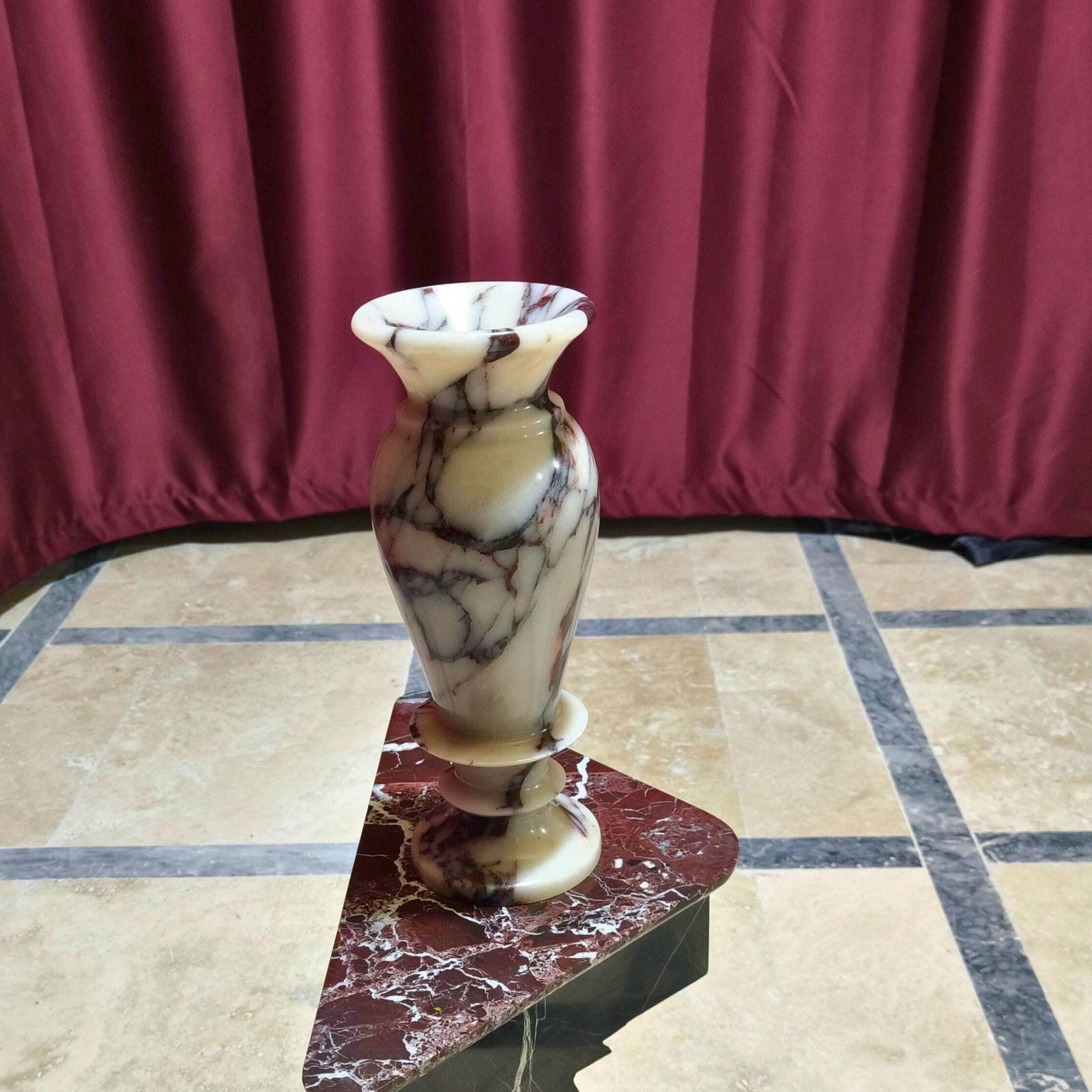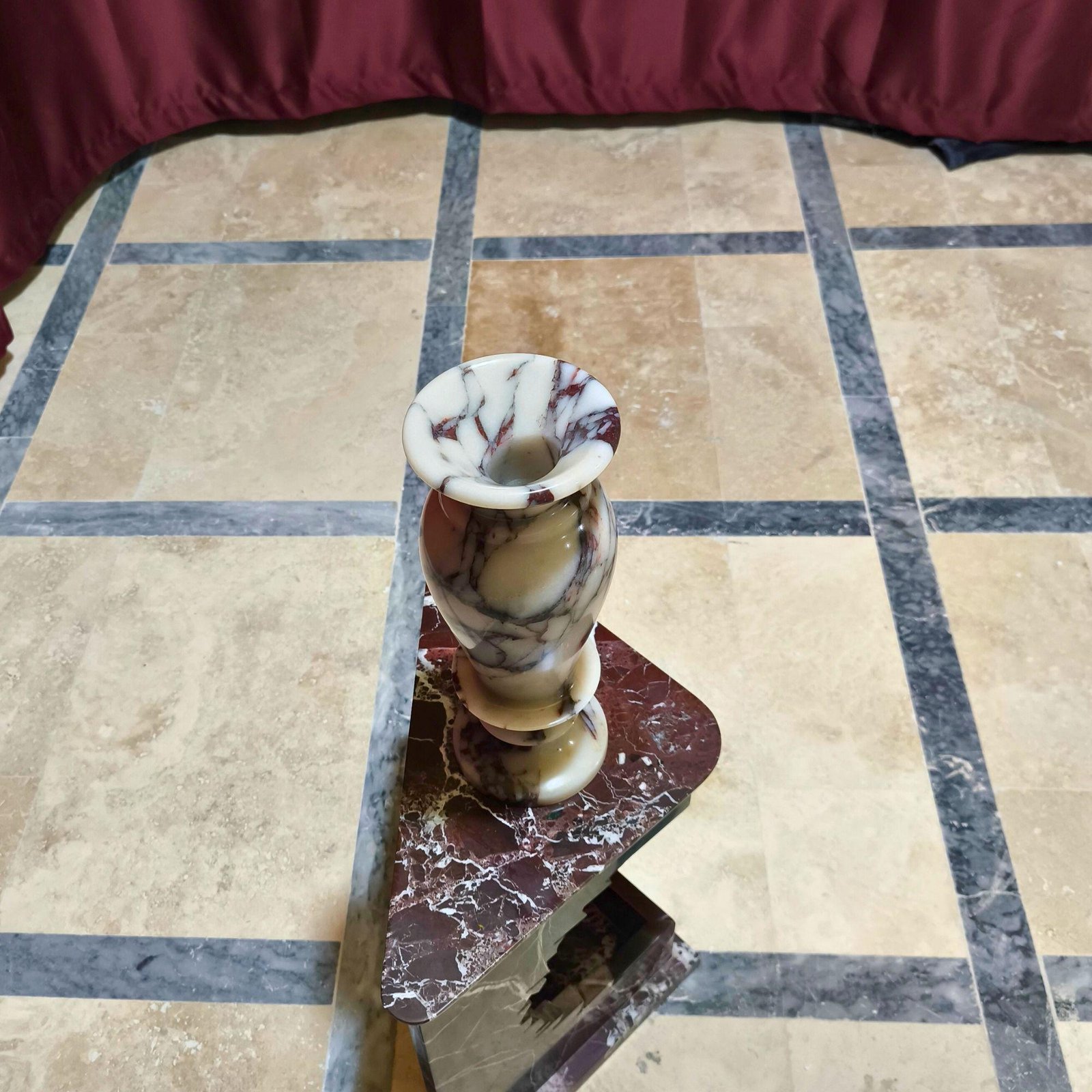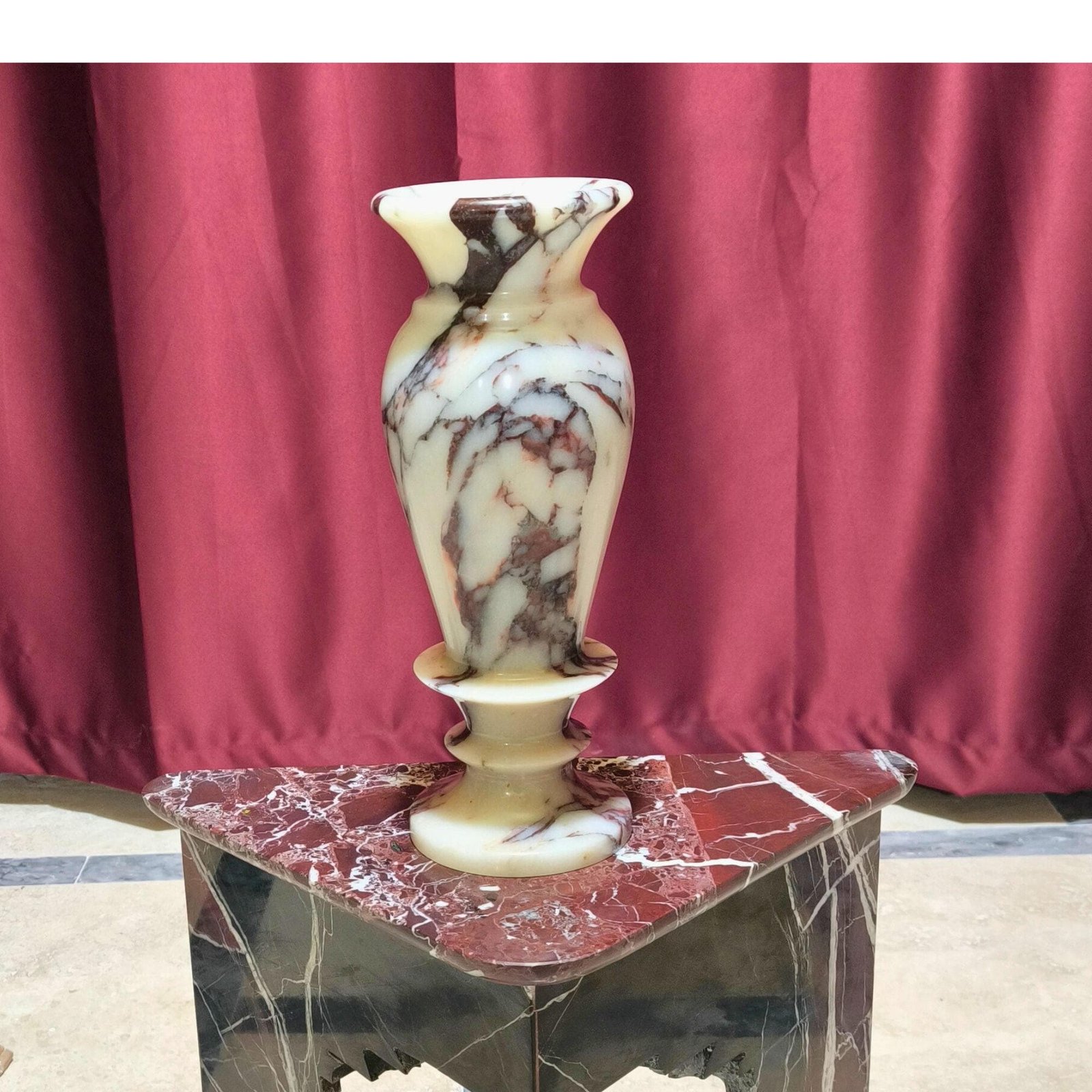 Enhance your home decor with this elegant Calacatta Viola marble vase, a luxurious and stylish addition to any space. Perfect for showcasing flowers or as a standalone statement piece, this tall cylinder vase exudes sophistication and timeless beauty.