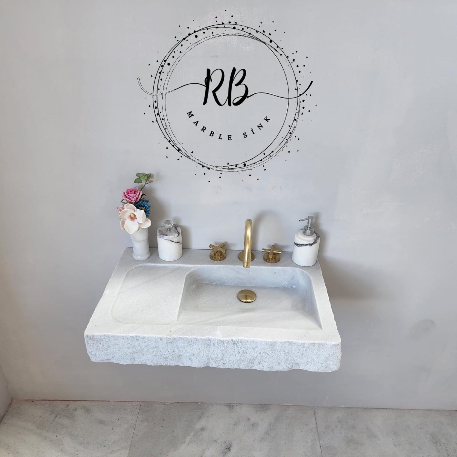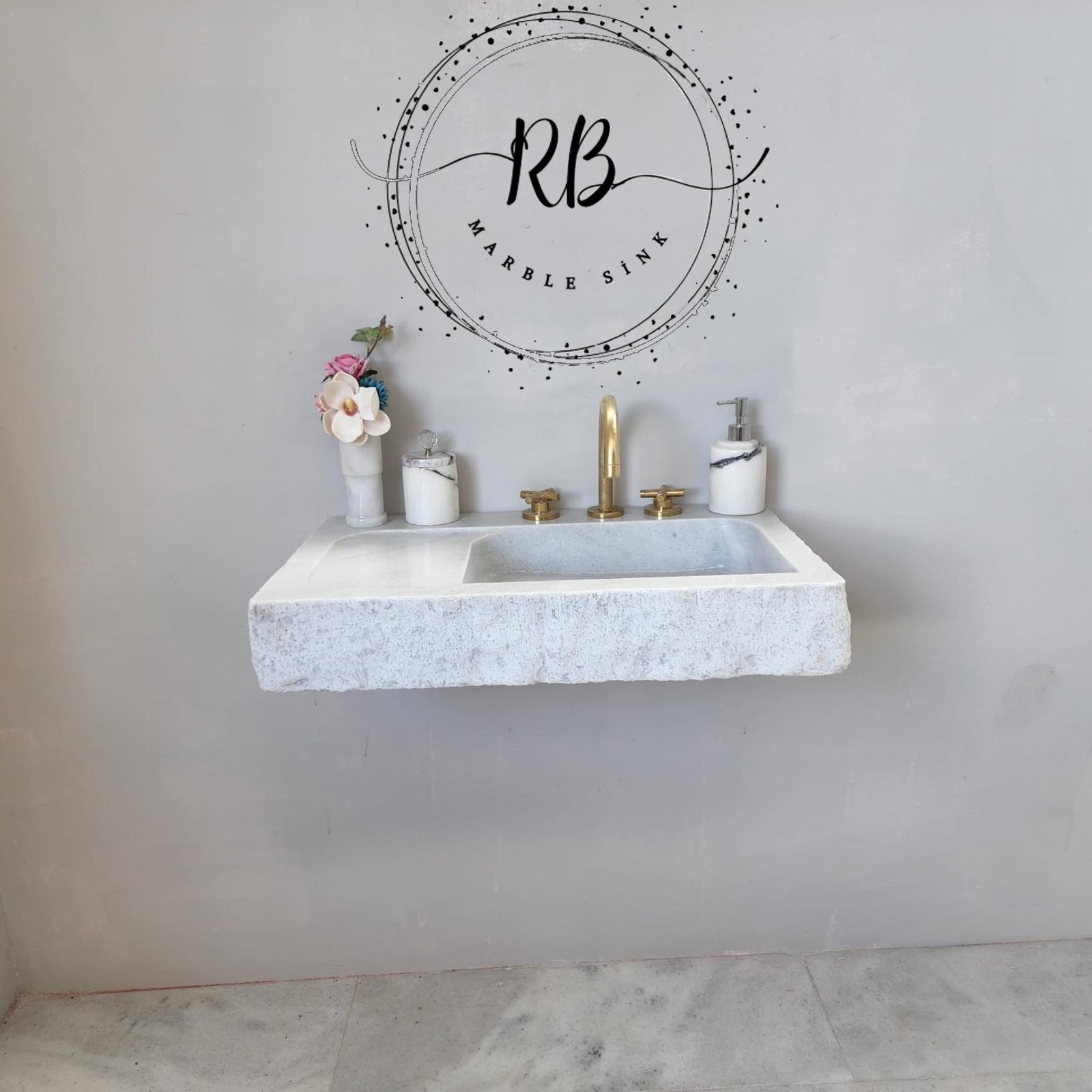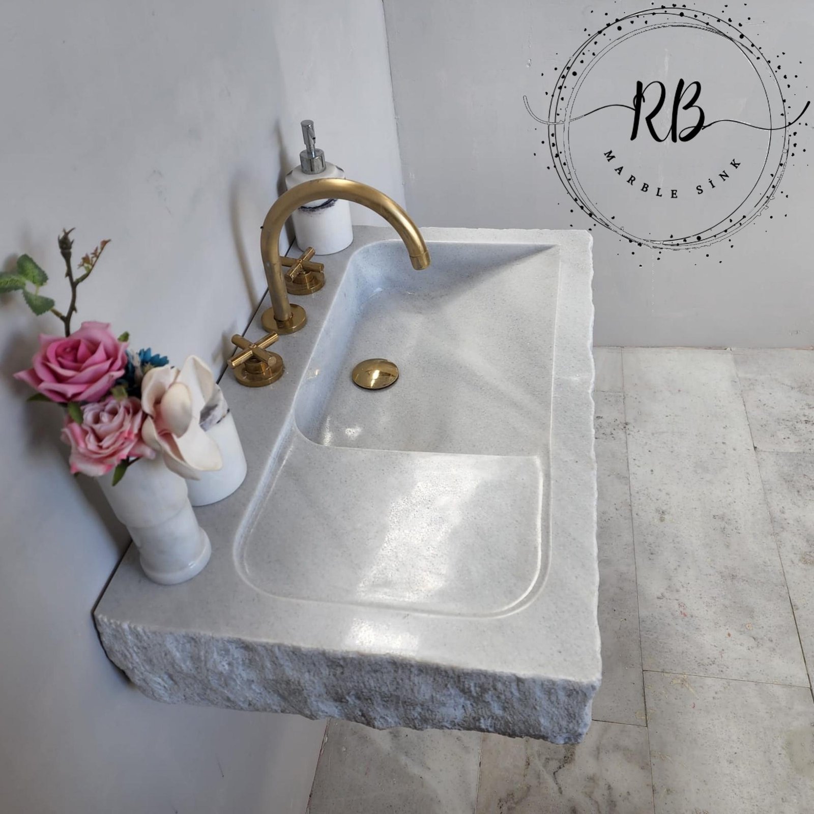 Upgrade your bathroom with this elegant Carrara marble sink, featuring a timeless design that seamlessly blends functionality and luxury. Perfect for small spaces, this wall-mounted floating sink adds a modern and sophisticated touch to any bathroom décor.