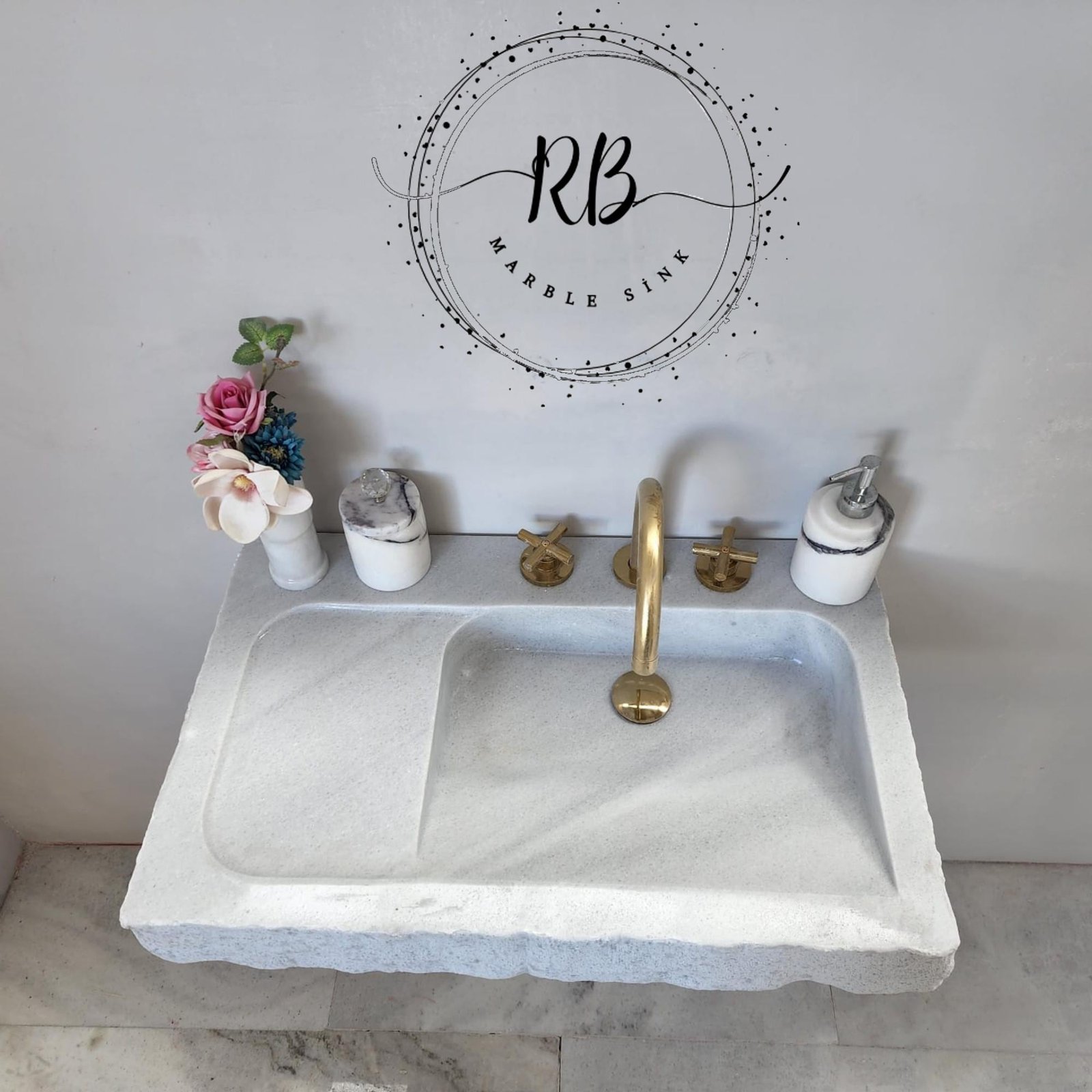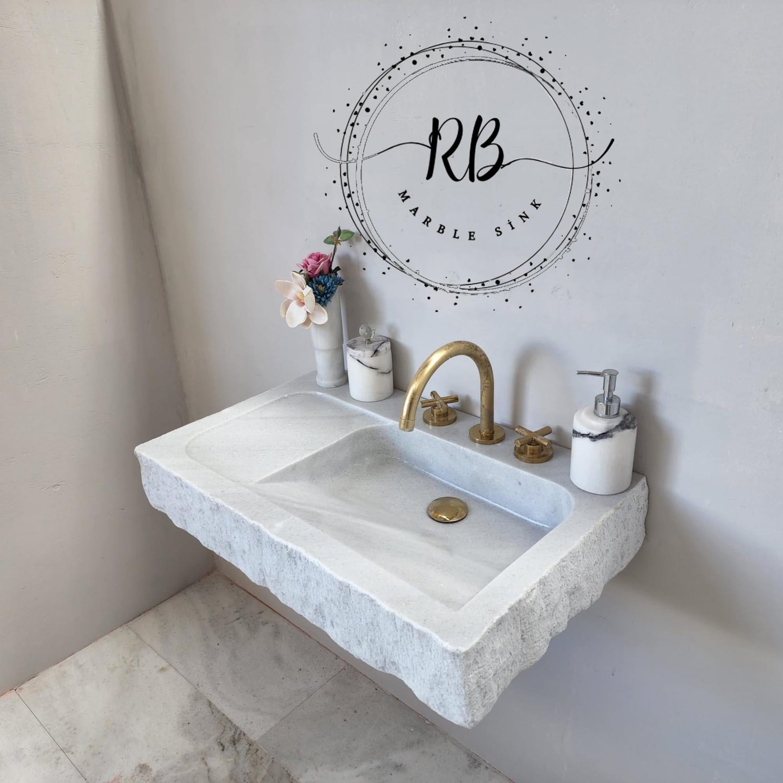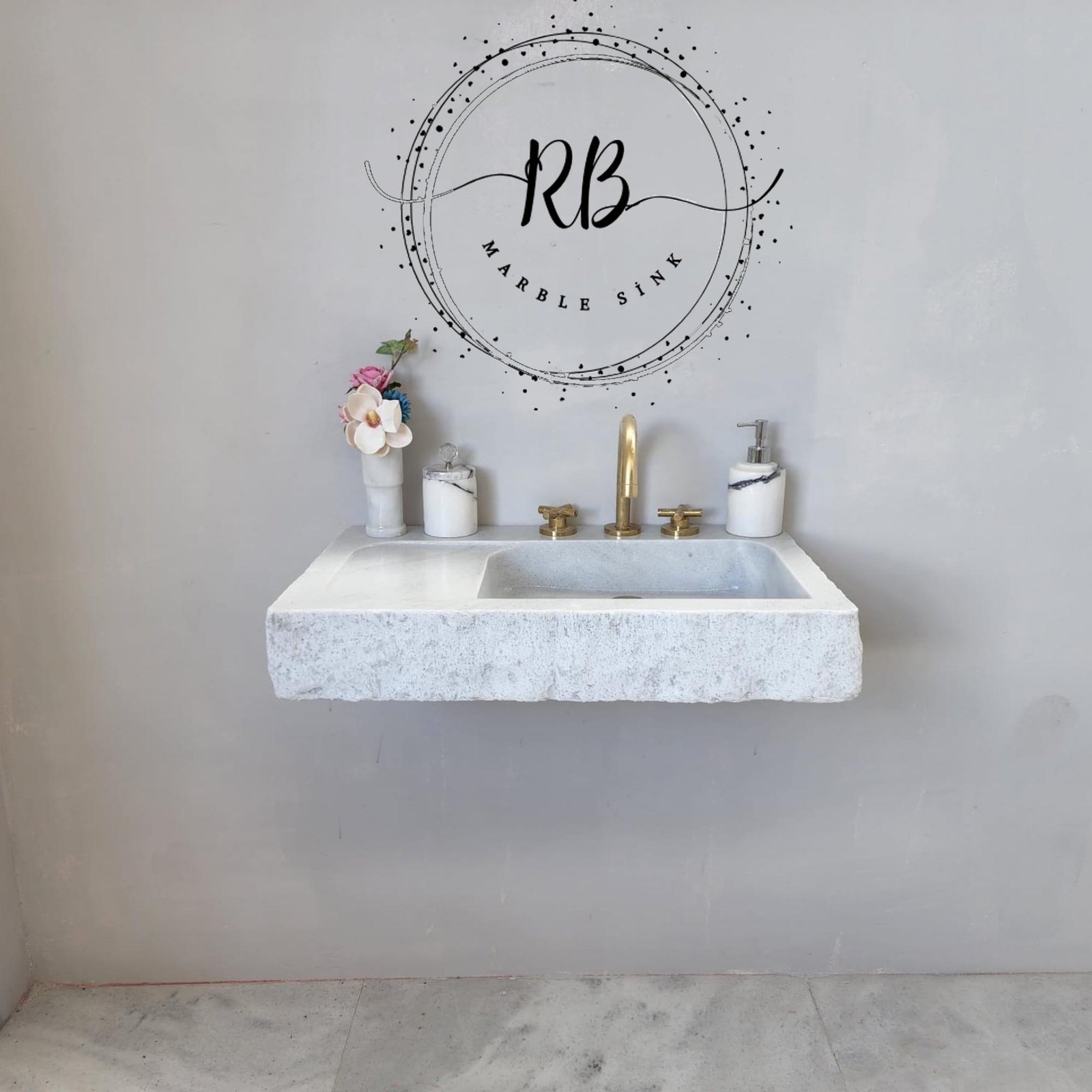 Upgrade your bathroom with this elegant Carrara marble sink, featuring a timeless design that seamlessly blends functionality and luxury. Perfect for small spaces, this wall-mounted floating sink adds a modern and sophisticated touch to any bathroom décor.