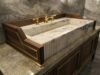 Its rectangular basin and structured profile create a balance between classic stonework and bold contemporary design. Ideal for powder rooms or vanities where luxury detail matters most.