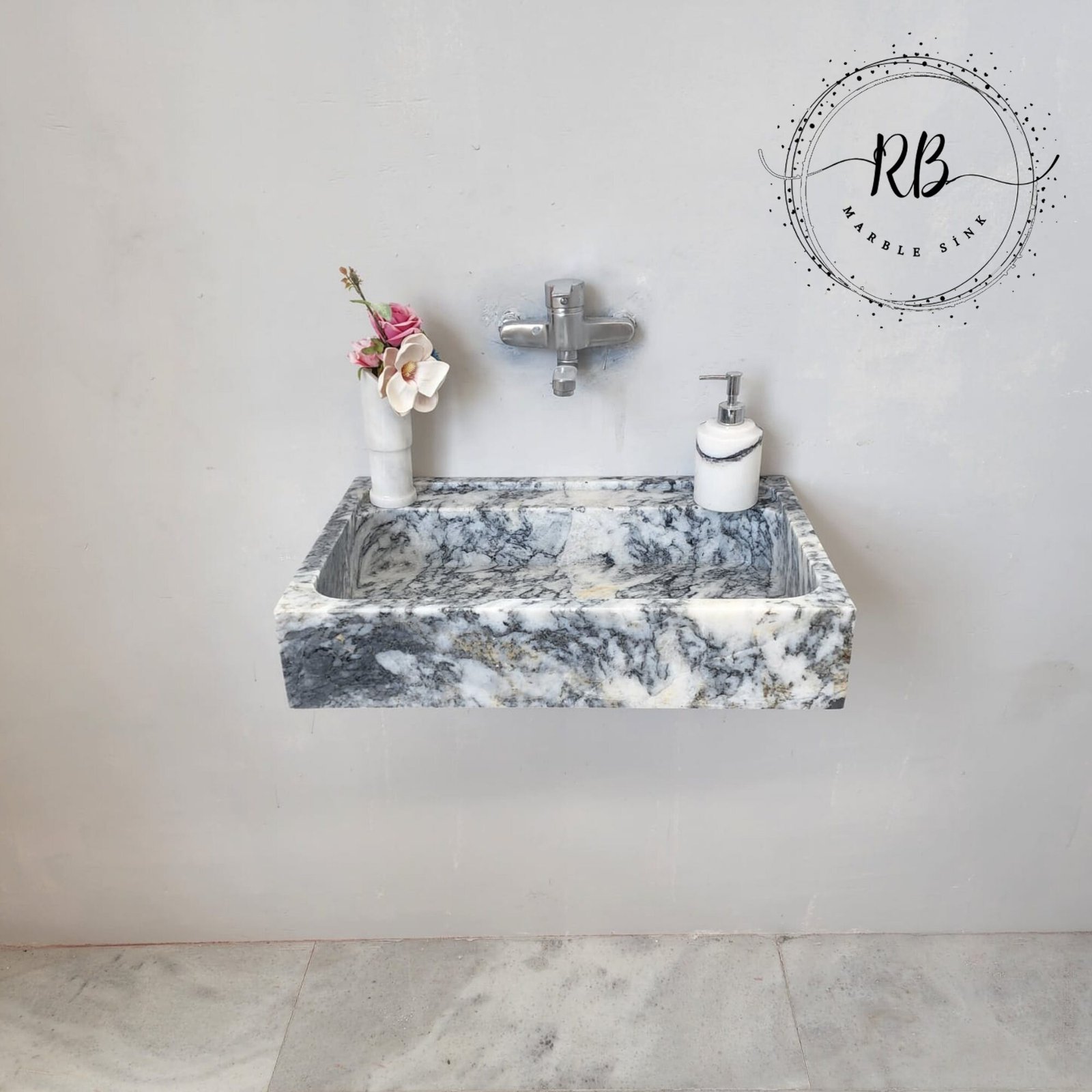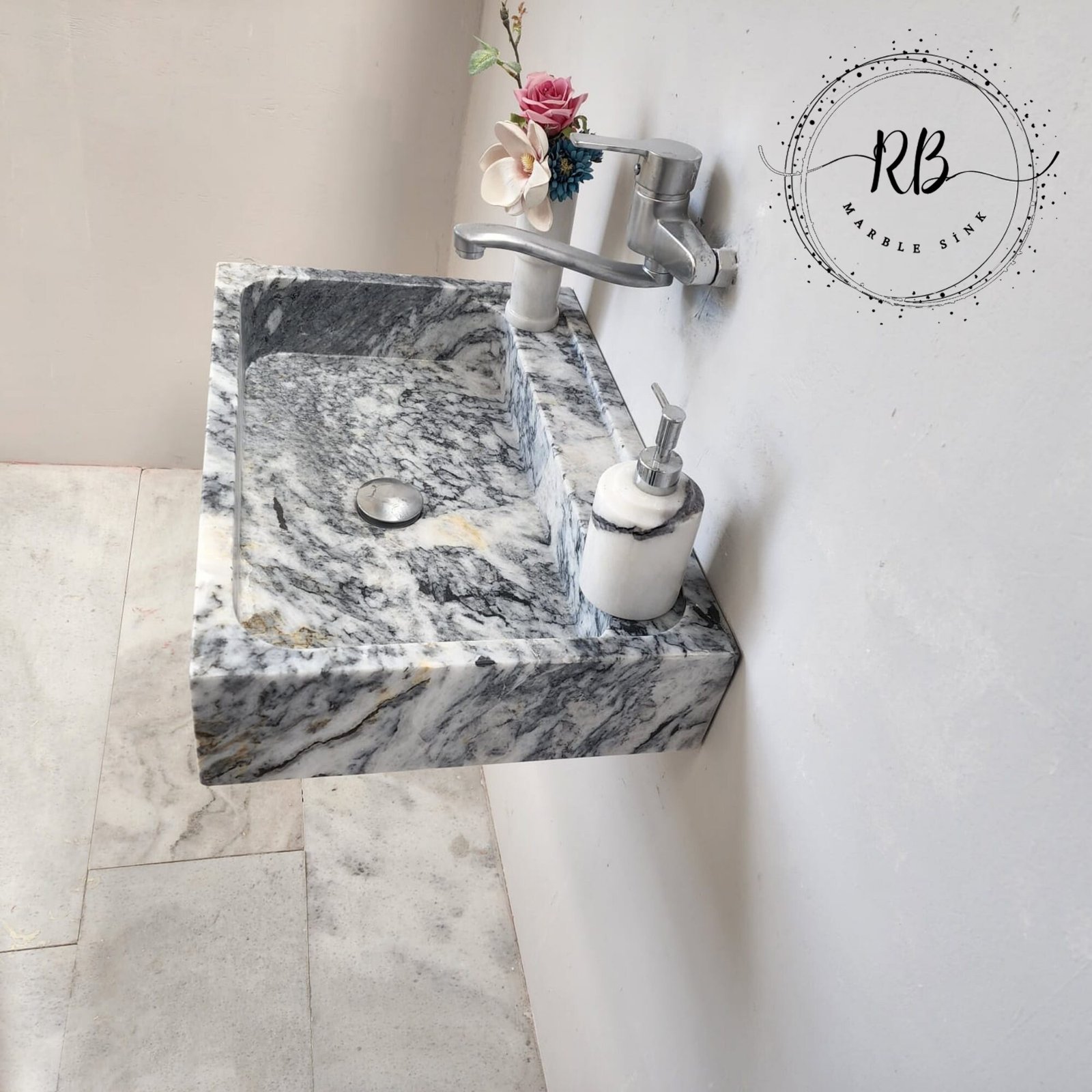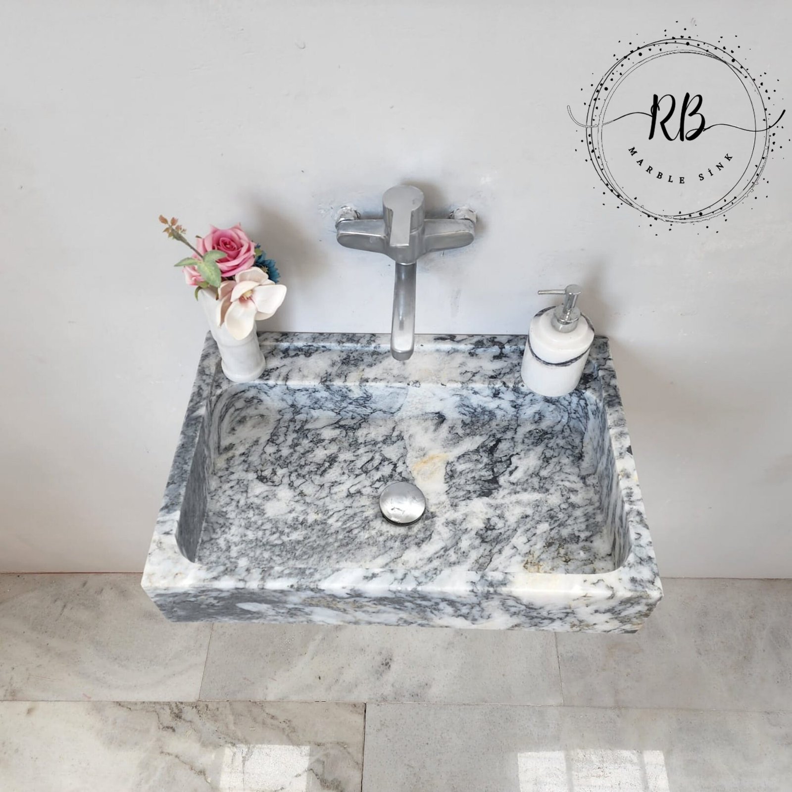 Crafted from 100% natural marble in our artisan workshop, each sink offers individuality — no two are alike. Designed in a sleek rectangular shape (16″W x 24″L x 5″H), it transforms powder rooms into curated sanctuaries.
