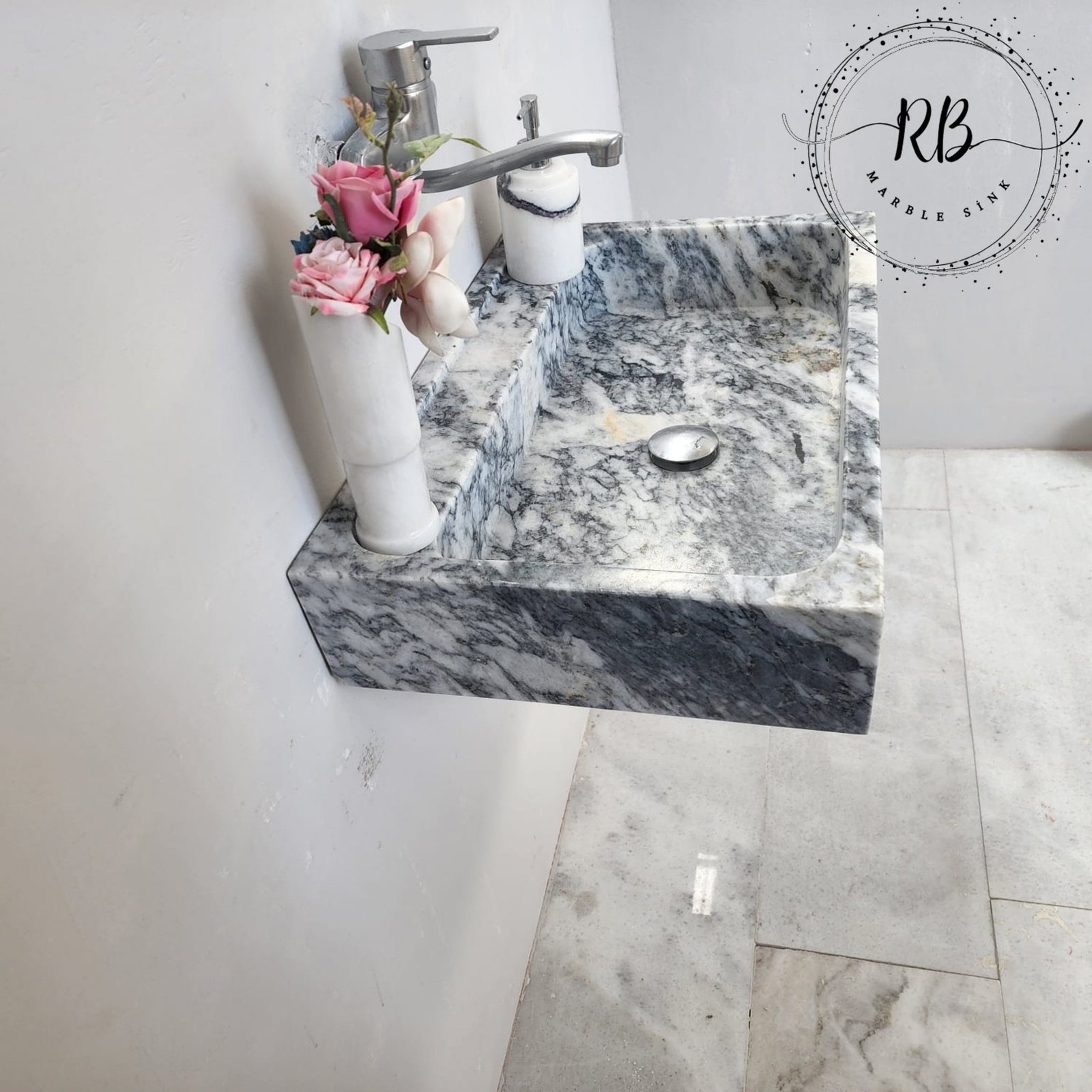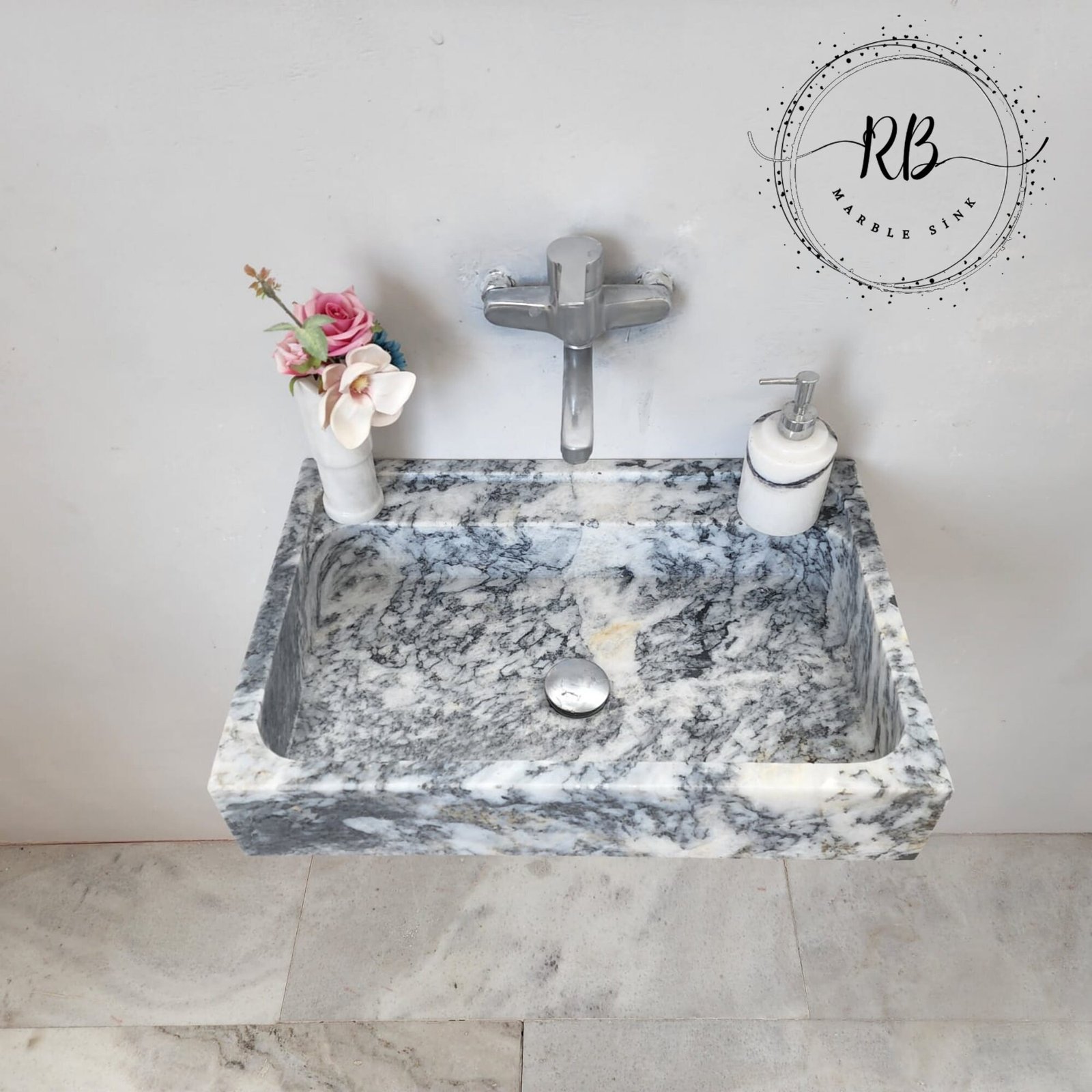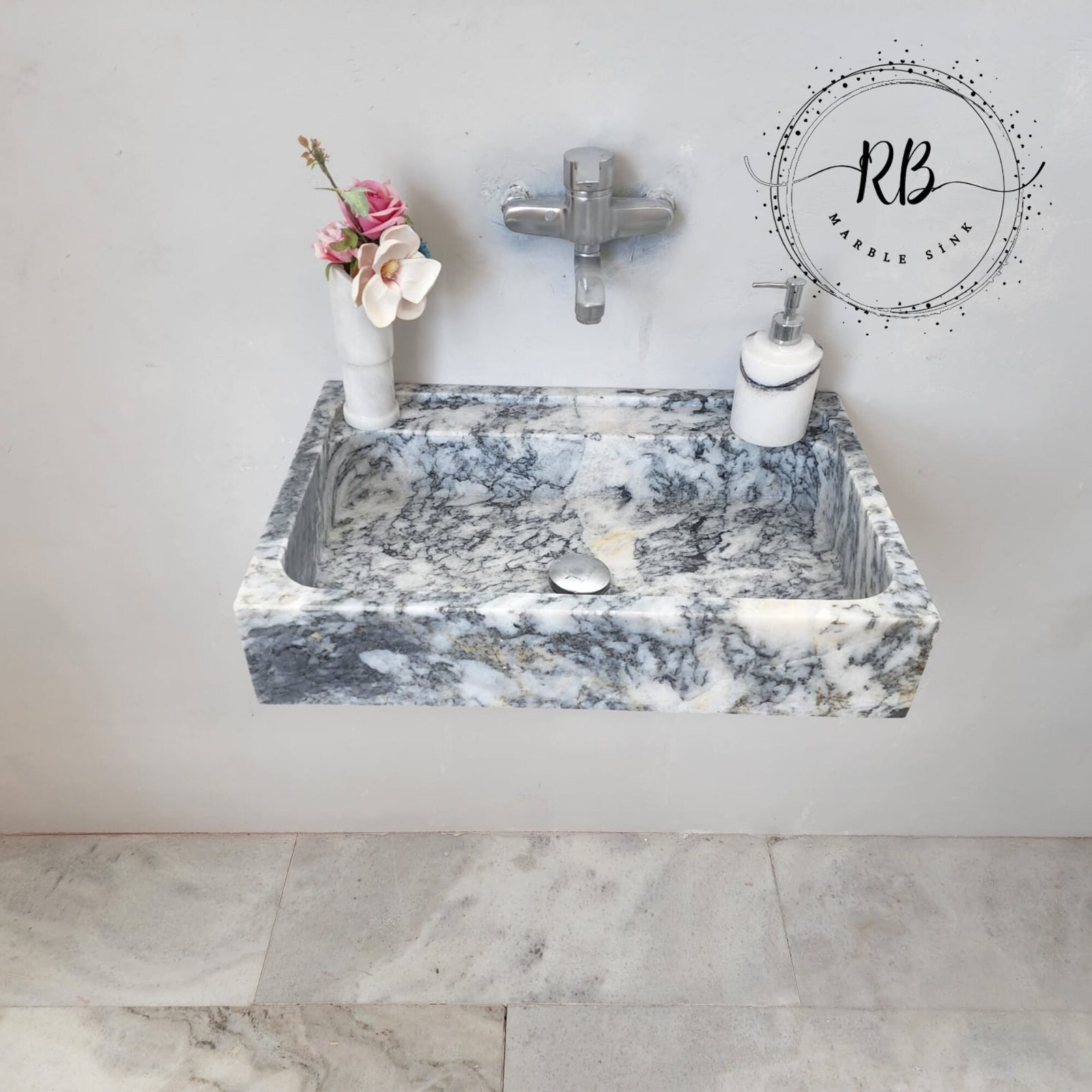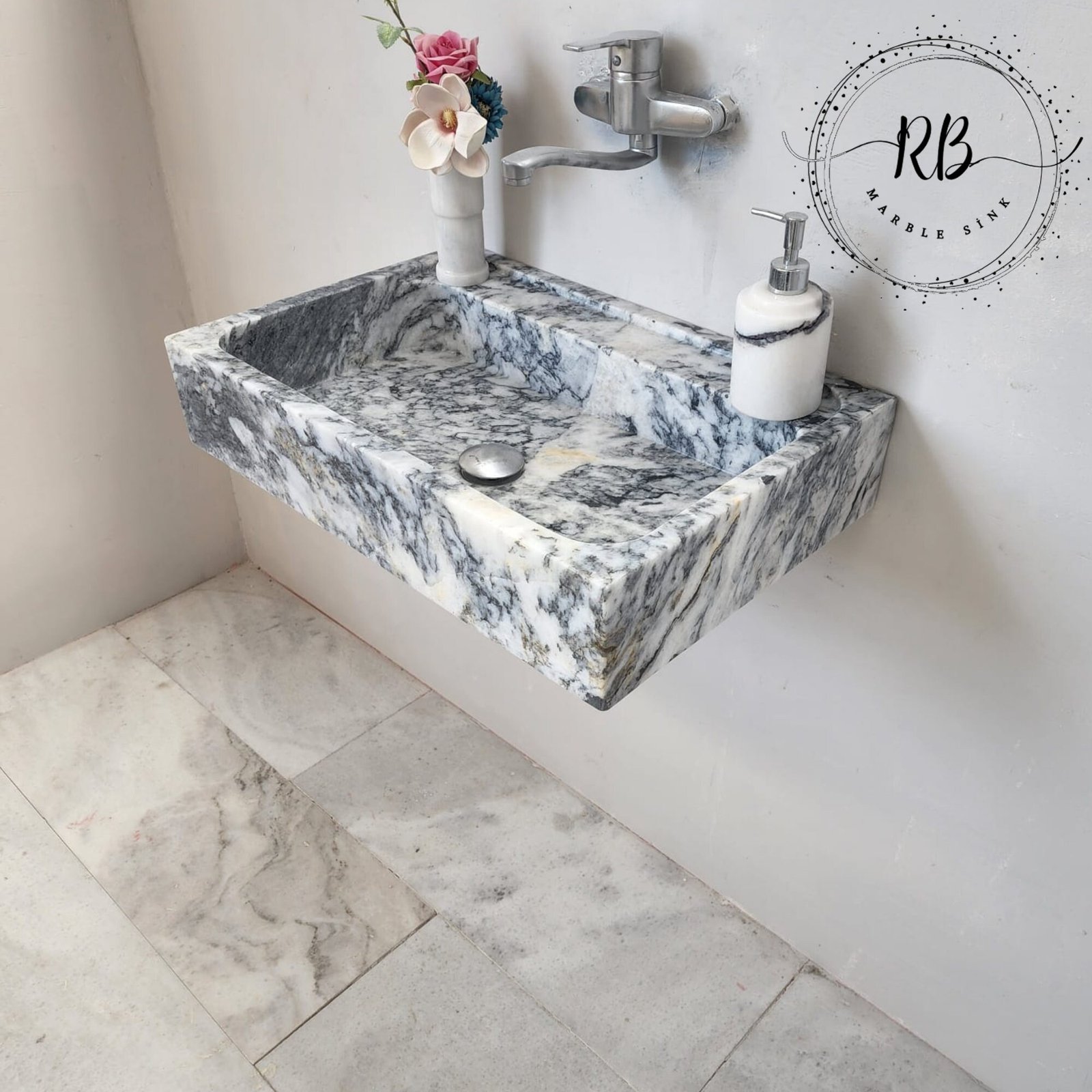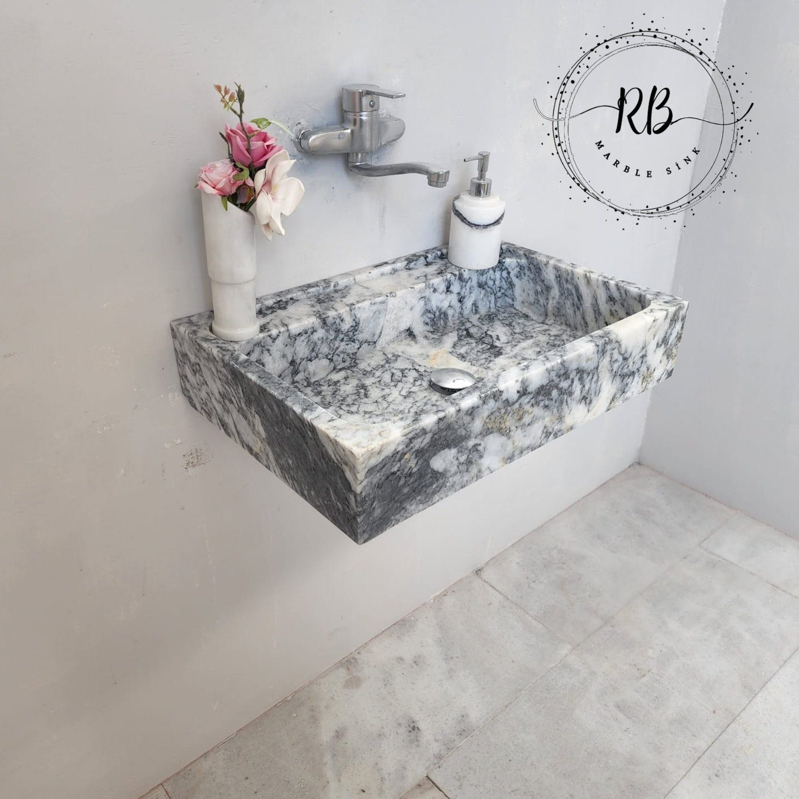 Elevate your bathroom with this striking Gray Tiger Skin Marble Sink — a hand-carved statement of luxury and modern craftsmanship. Whether wall-mounted or countertop, its polished finish and natural stone veins evoke timeless elegance and sophistication.