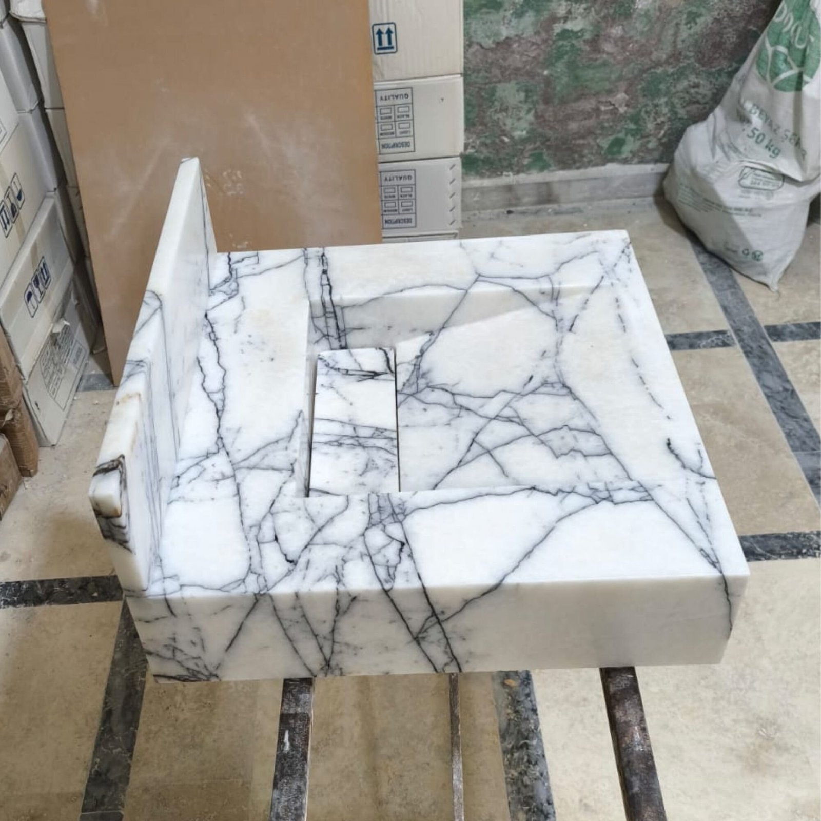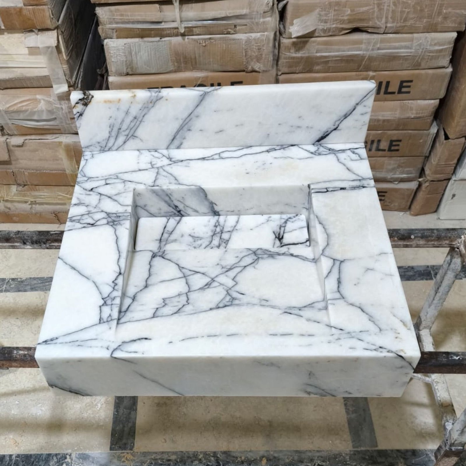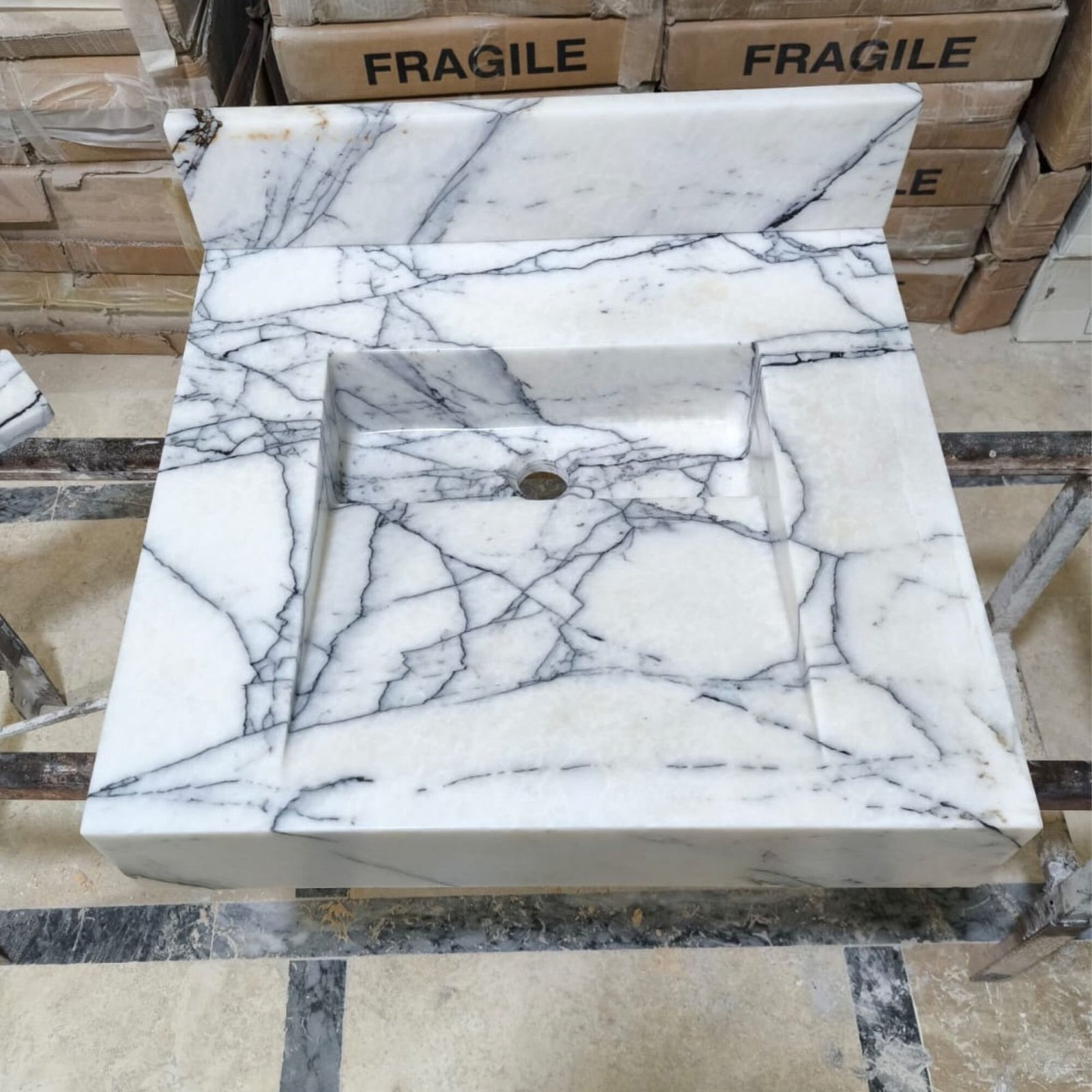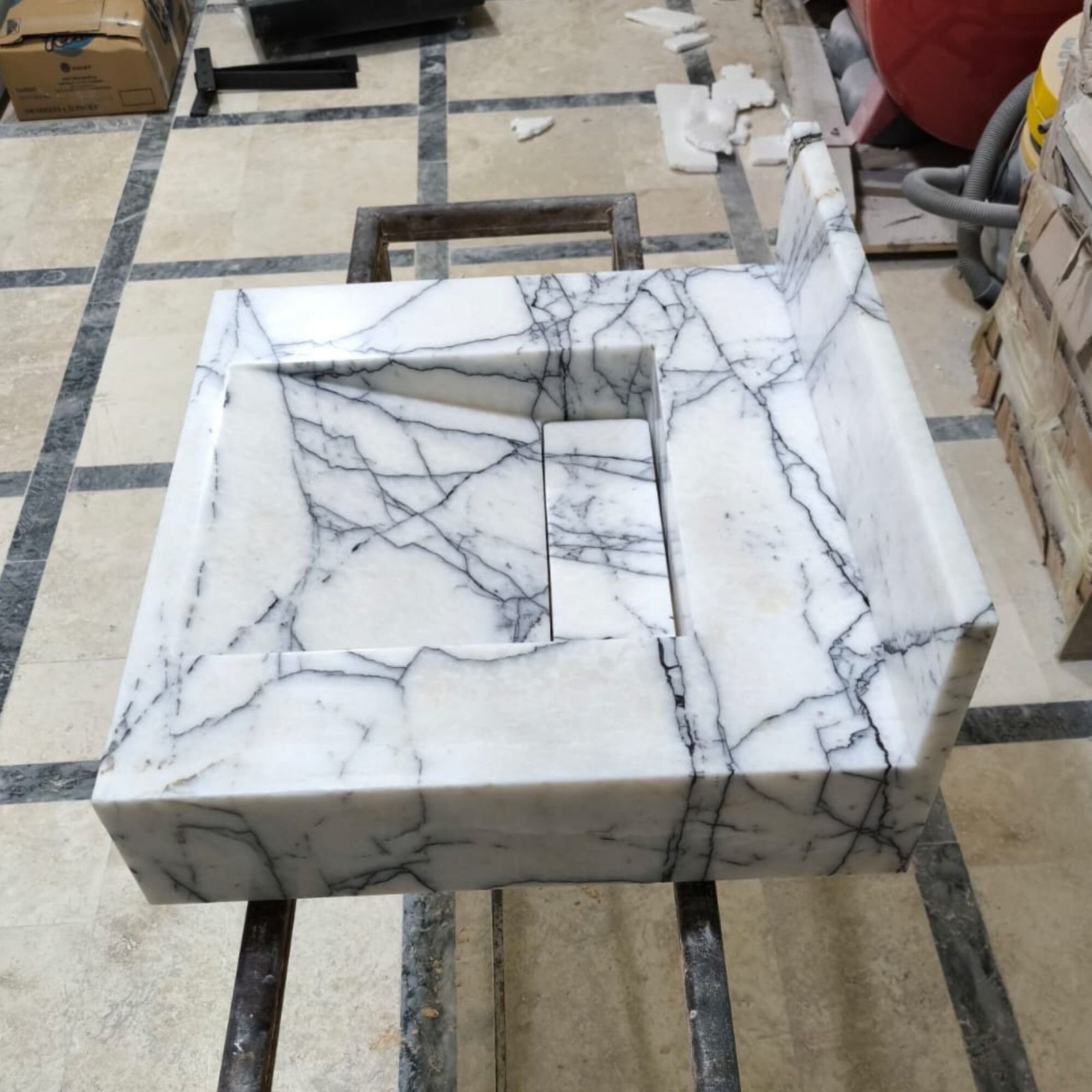 Marble Vanity Sink Natural Stone Sink Lilac Marble with Hidden Drain, Wall Mounted Sink Hand Carved Sink Stone Vessel Sink