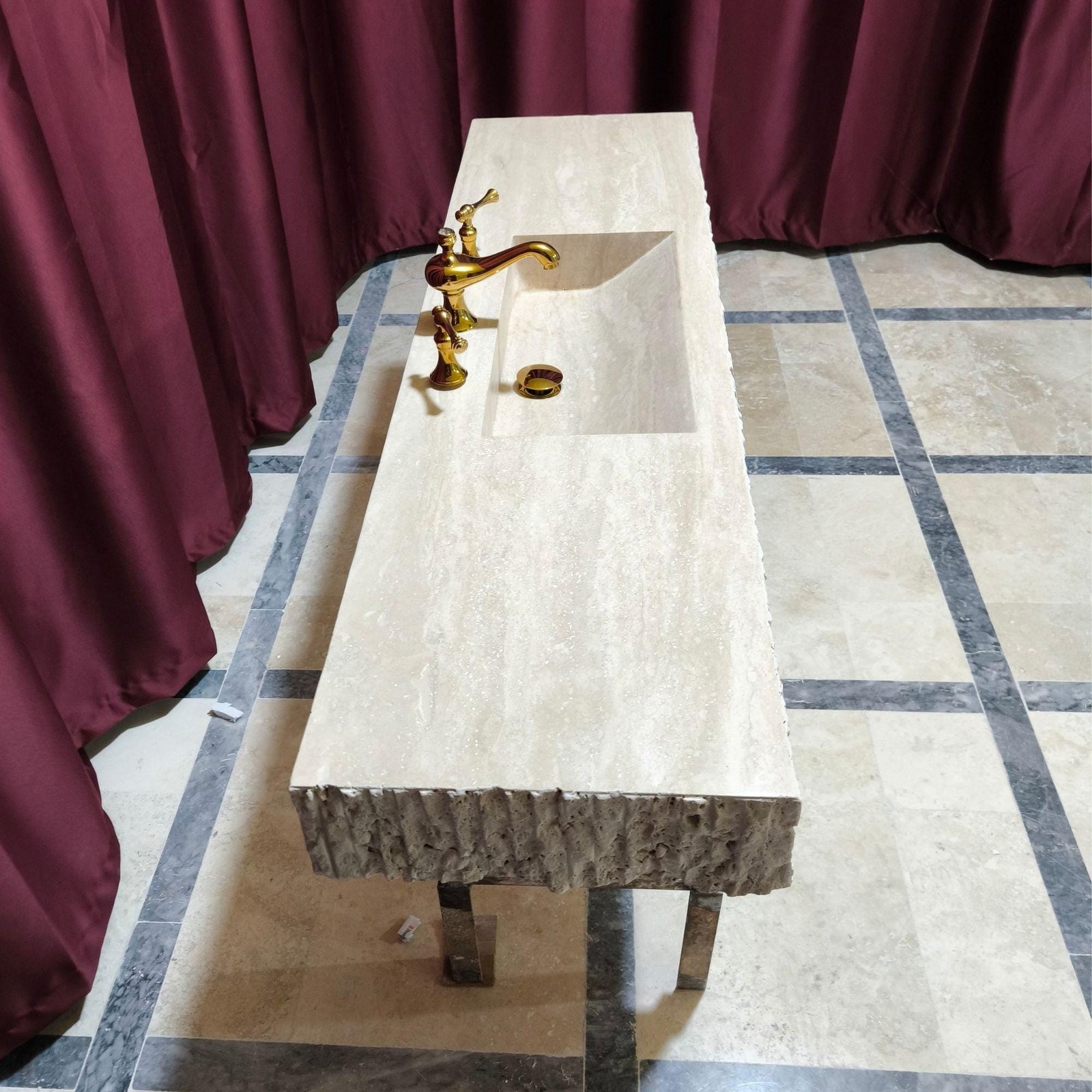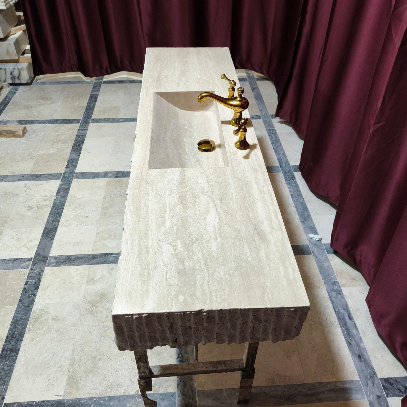 For Special Orders: A travertine sink with rounded corners will be made in the model pictured and in the dimensions of the drawing, measuring 22x55x6″, according to the drawings at the end of the list. Corner radii will be made as standard 23 cm. No faucet holes will be drilled. Shipping is included. Customs duties are excluded.