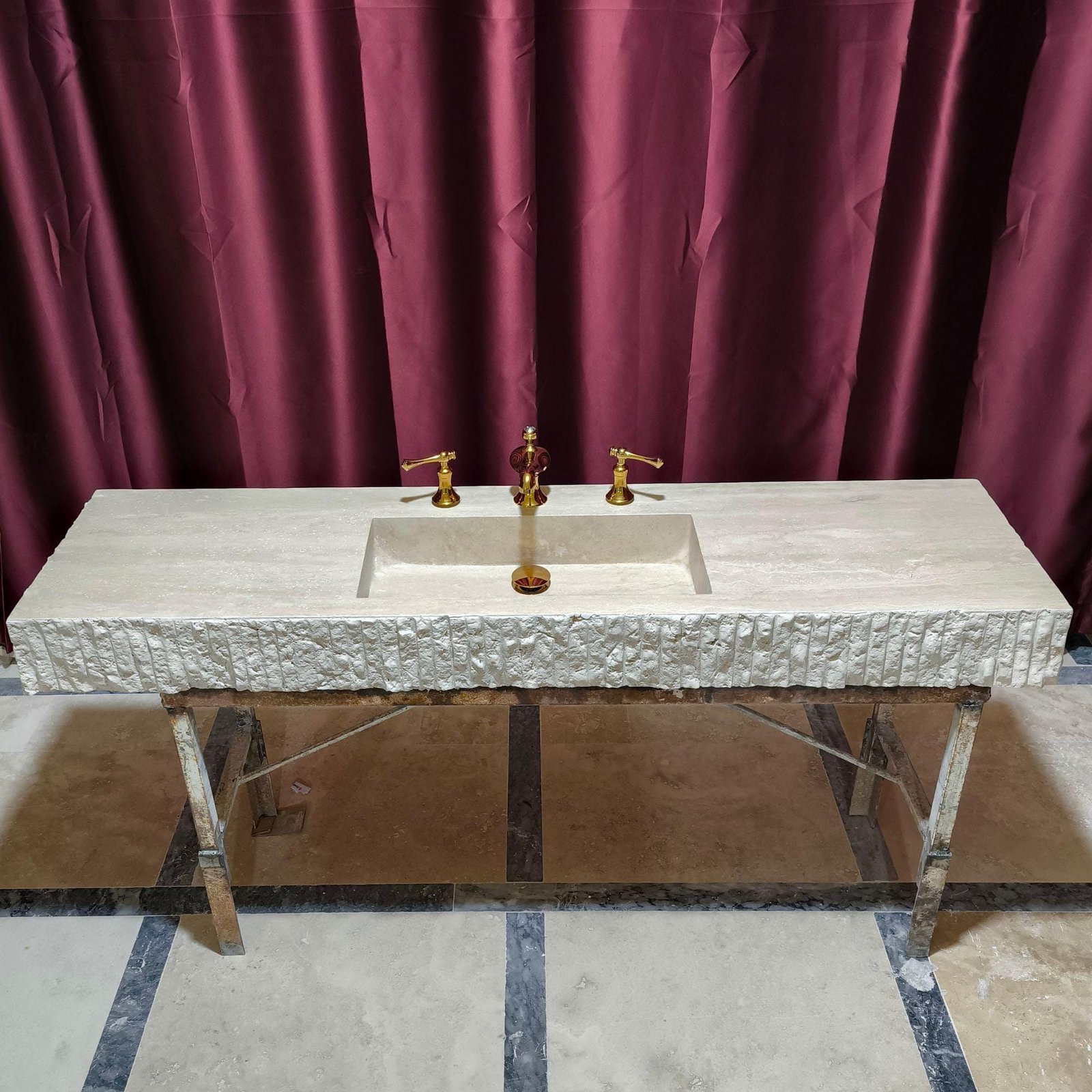 Rustic Travertine Split Face Sink Wall Mounted Bathroom Sink Marble Vanity Sink Single Vessel Sink Custom Order Hand Carved Sink