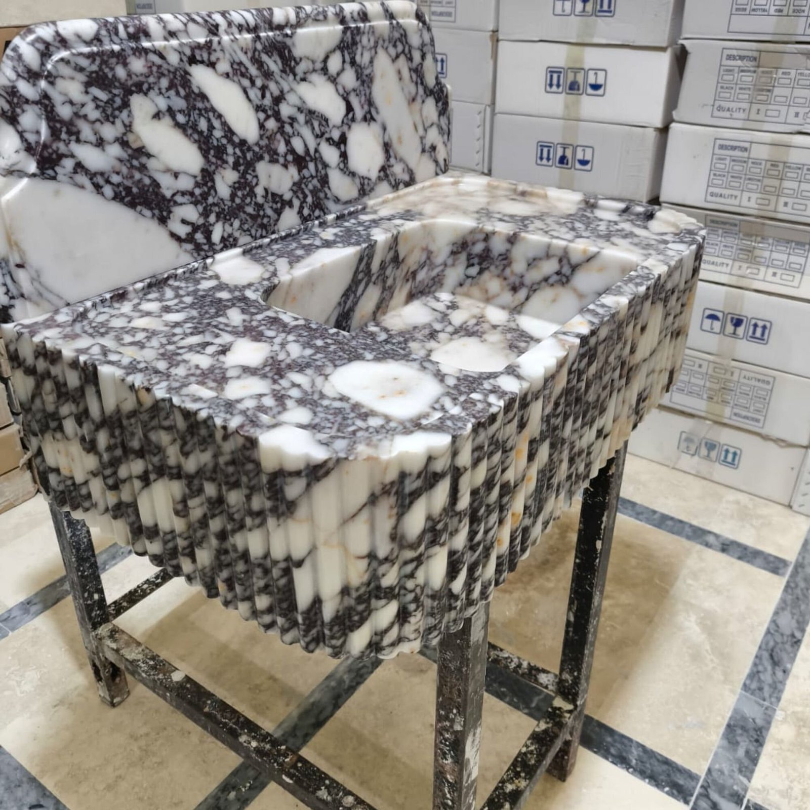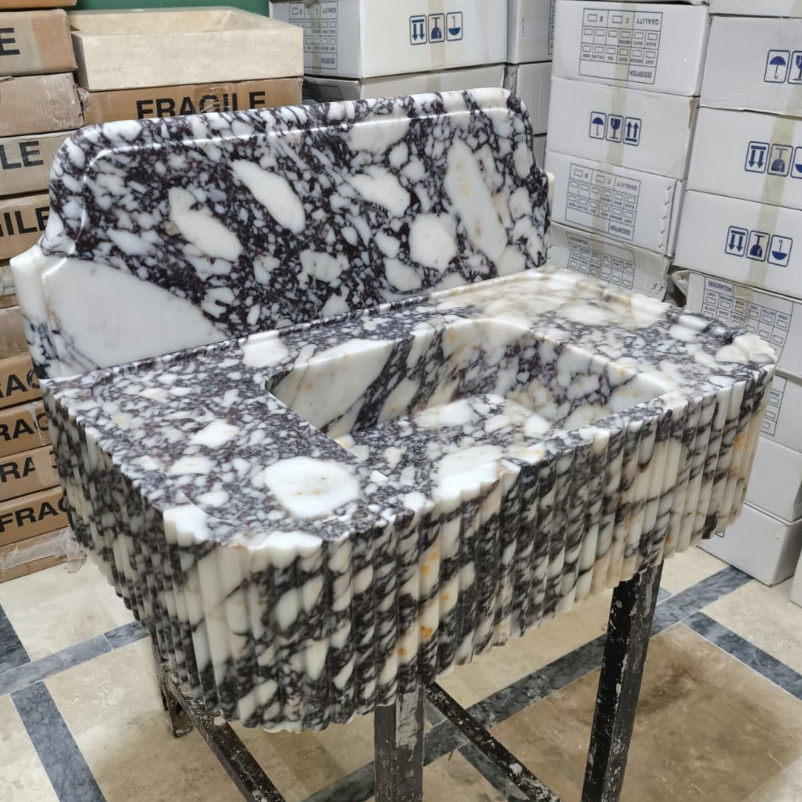 Elegant Calacatta Viola Marble Sink with Backsplash Round Corner Sink