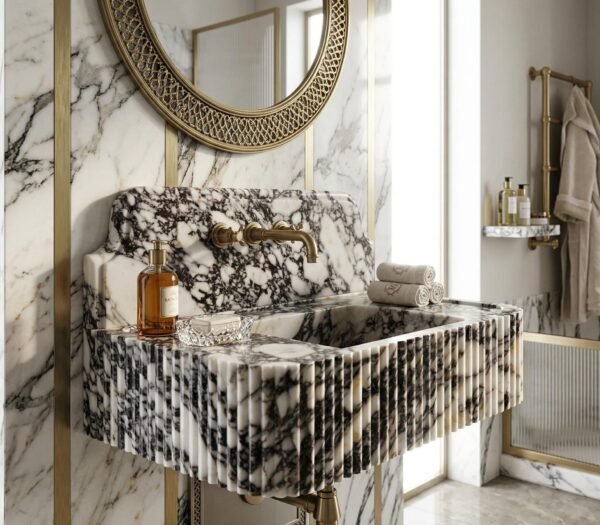 Transform your bathroom with our luxurious Calacatta Viola Marble Sink, featuring a built-in backsplash and rounded corners for a sleek, modern design. This wall-mounted vanity sink is a perfect blend of elegance and functionality, handcrafted for lasting beauty. 🛁✨
