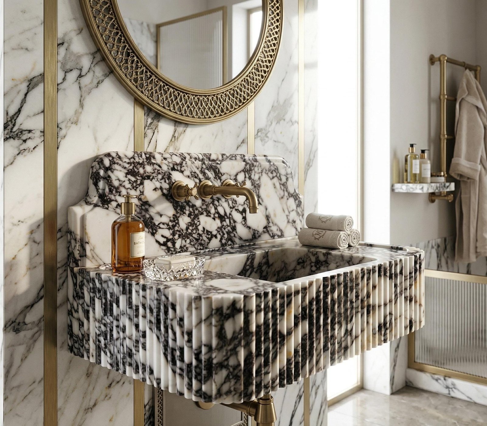 Luxury Marble Bathroom Sink Wall Mounted Vanity Handcrafted Sink