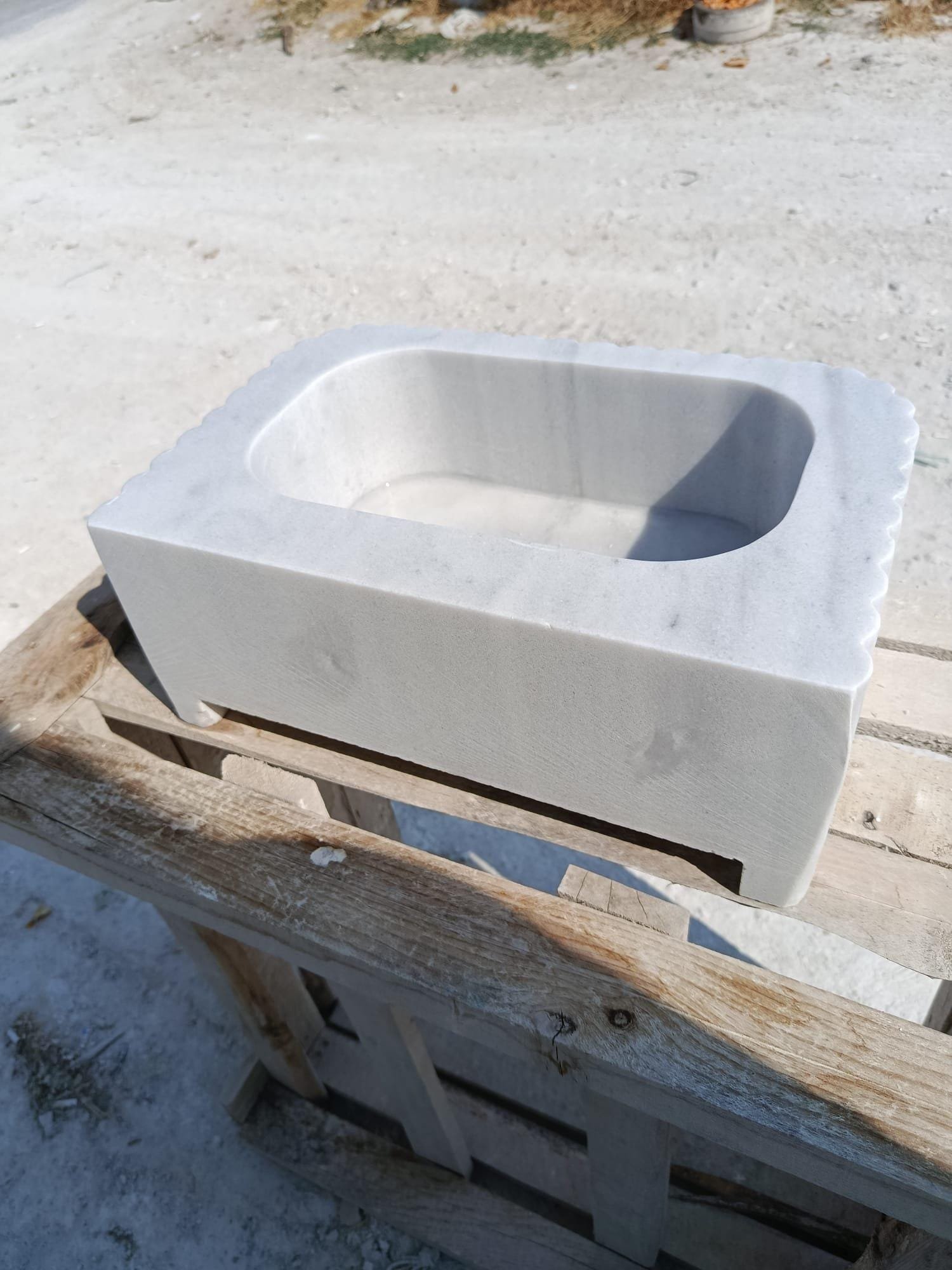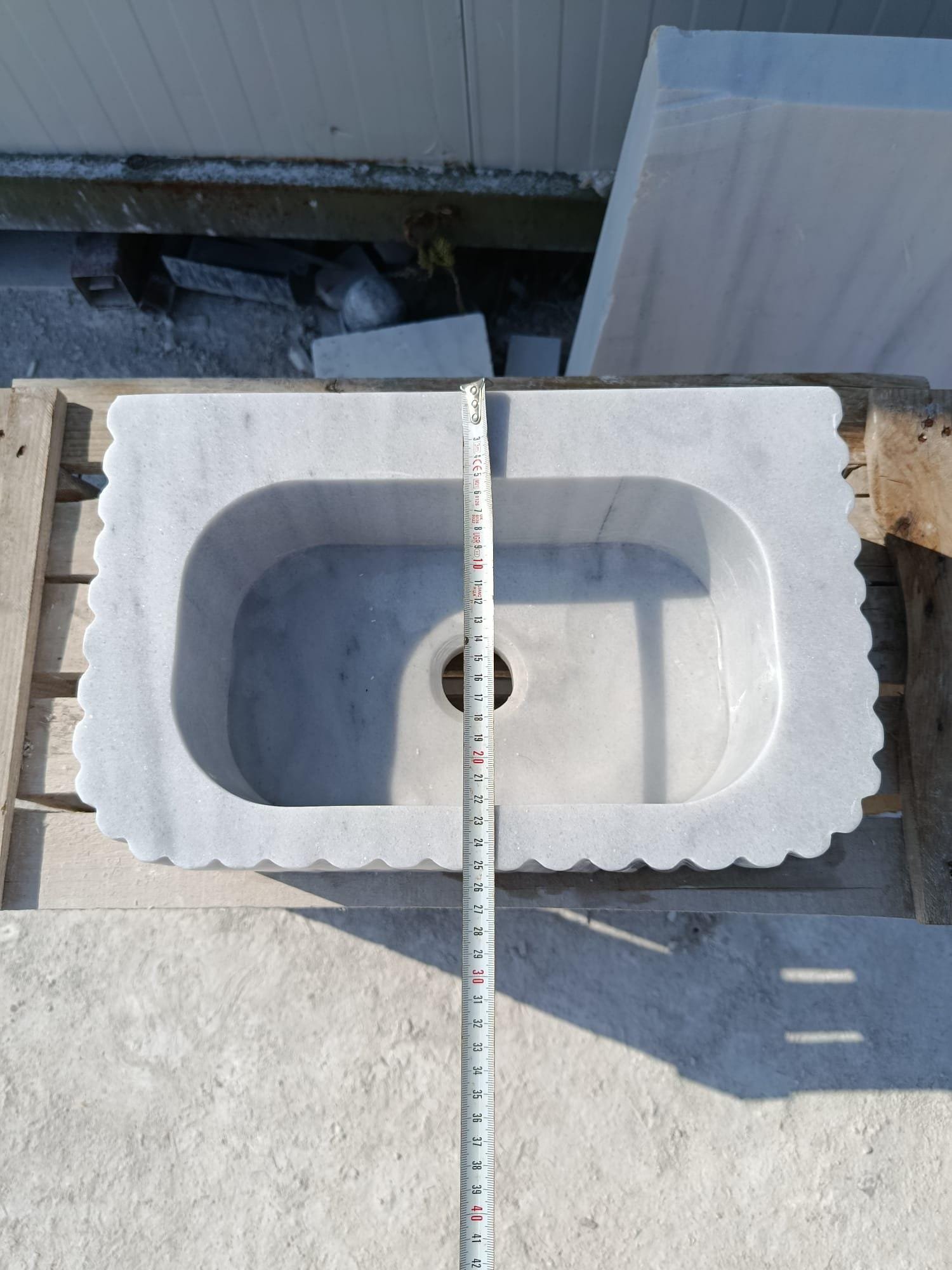Elevate your space with this handcrafted Carrara white marble sink — a stunning fusion of minimalism and sculptural luxury. Measuring 10 x 16 x 6 inches, its compact yet bold silhouette makes it the perfect fit for powder rooms, stylish vanities, or elegant guest bathrooms.