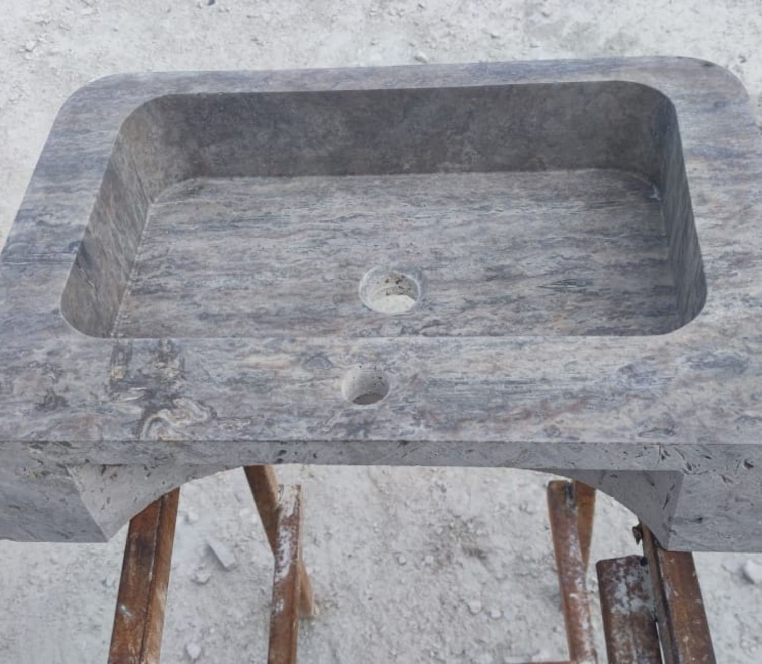 Beautify your home with our stunning Travertine Blasted Marble Sink, a true masterpiece of natural stonework. This rectangular, handcrafted sink combines timeless elegance with rugged durability, making it the perfect centerpiece for any kitchen or farmhouse setting.