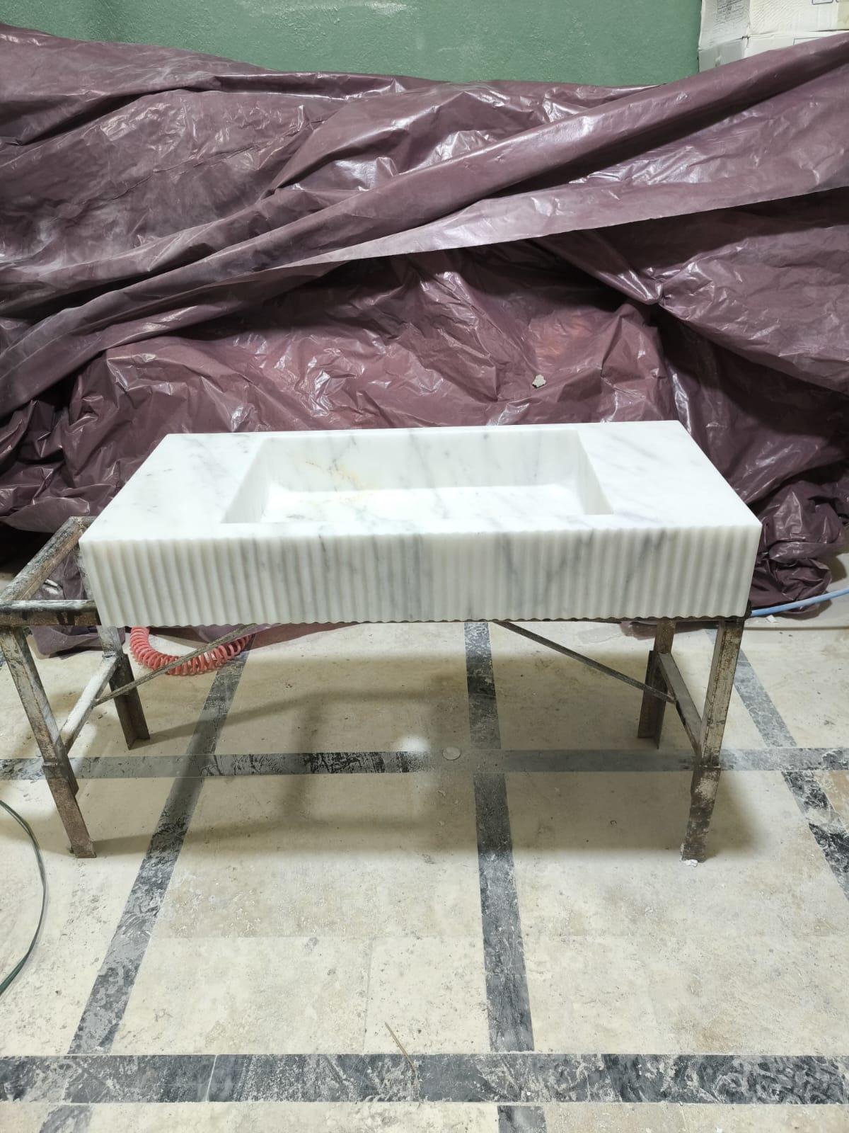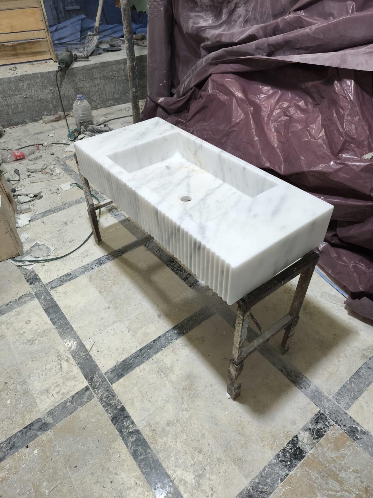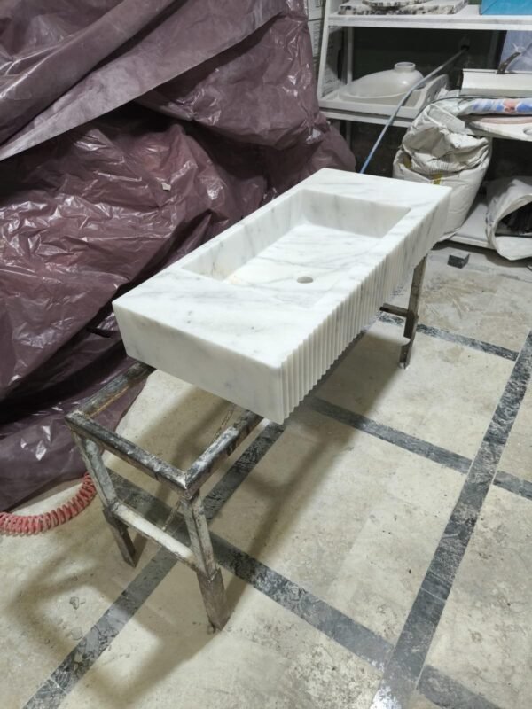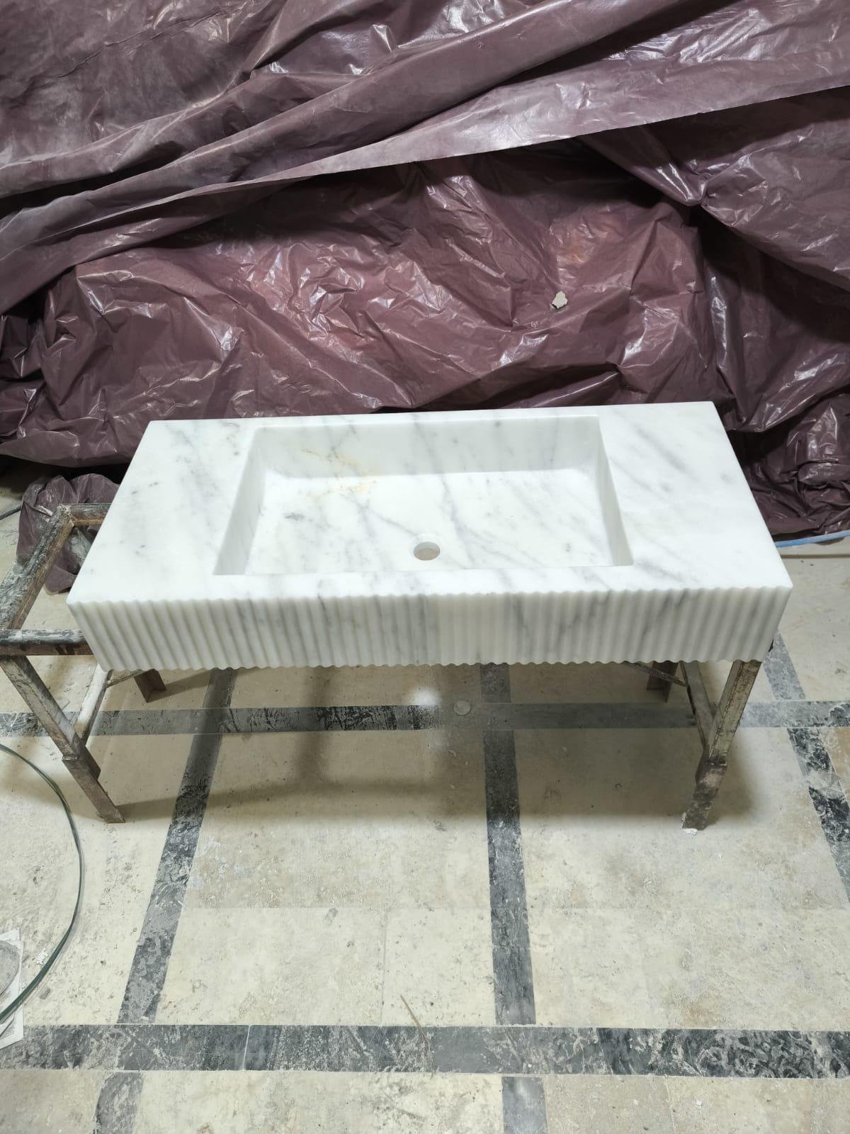 With its fluted front panel, this sink offers a modern yet classic touch, making it a statement piece in any bathroom. Whether for residential or commercial use, this premium marble sink enhances contemporary, minimalist, and luxury interiors.