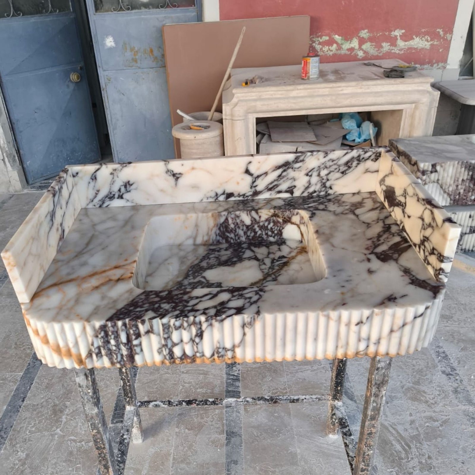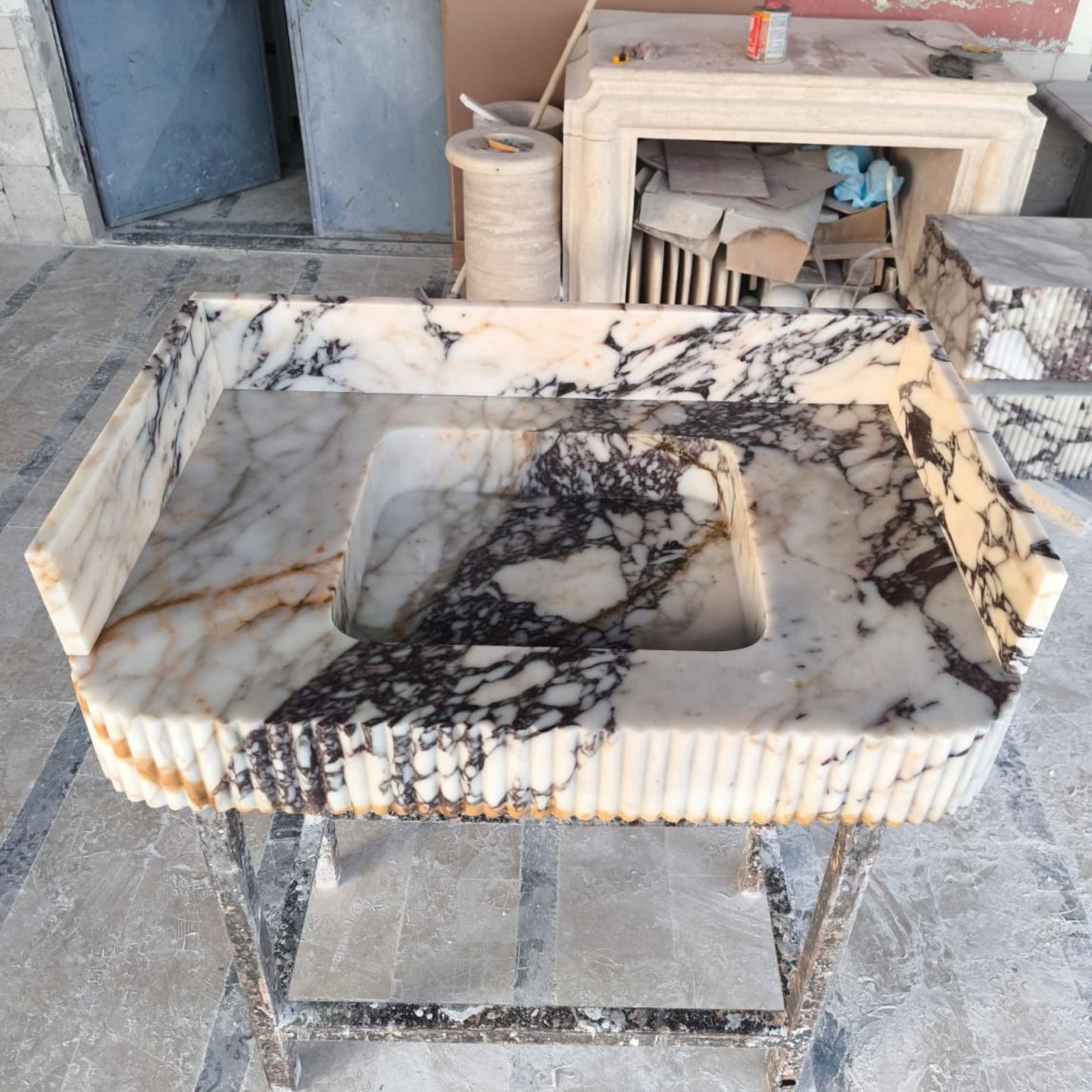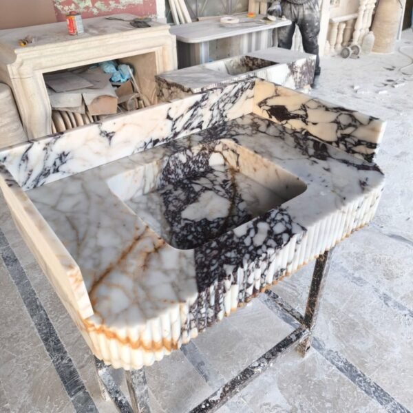 Handmade Calacatta Viola Marble Sink: Ribbed Basin Luxury Vessel