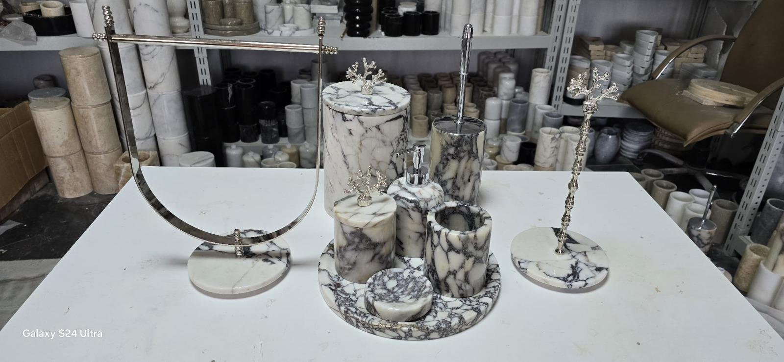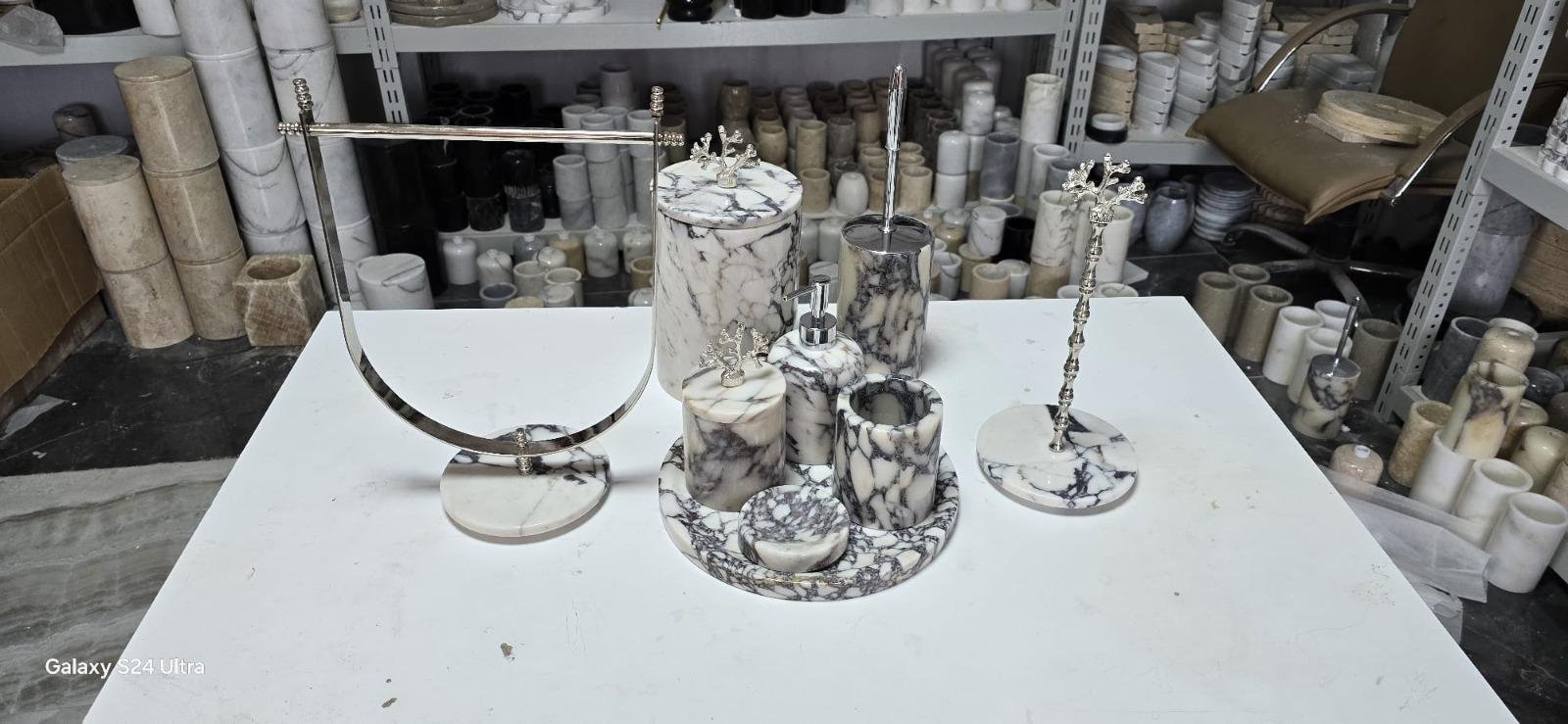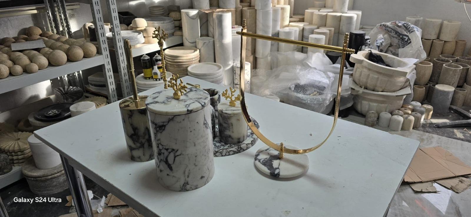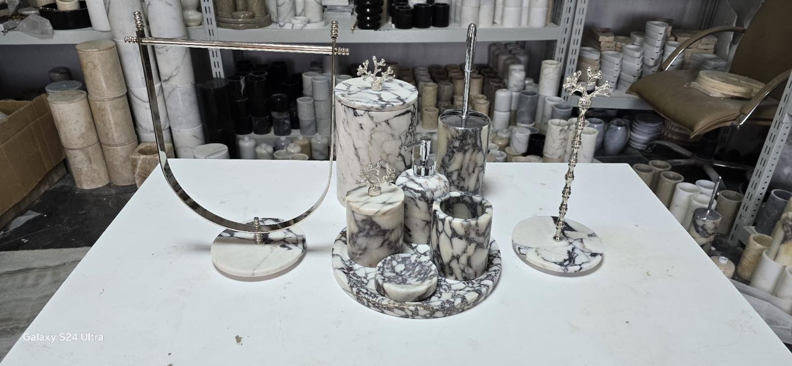 Handmade Marble Bathroom Accessory Set: Gold/Silver Finish