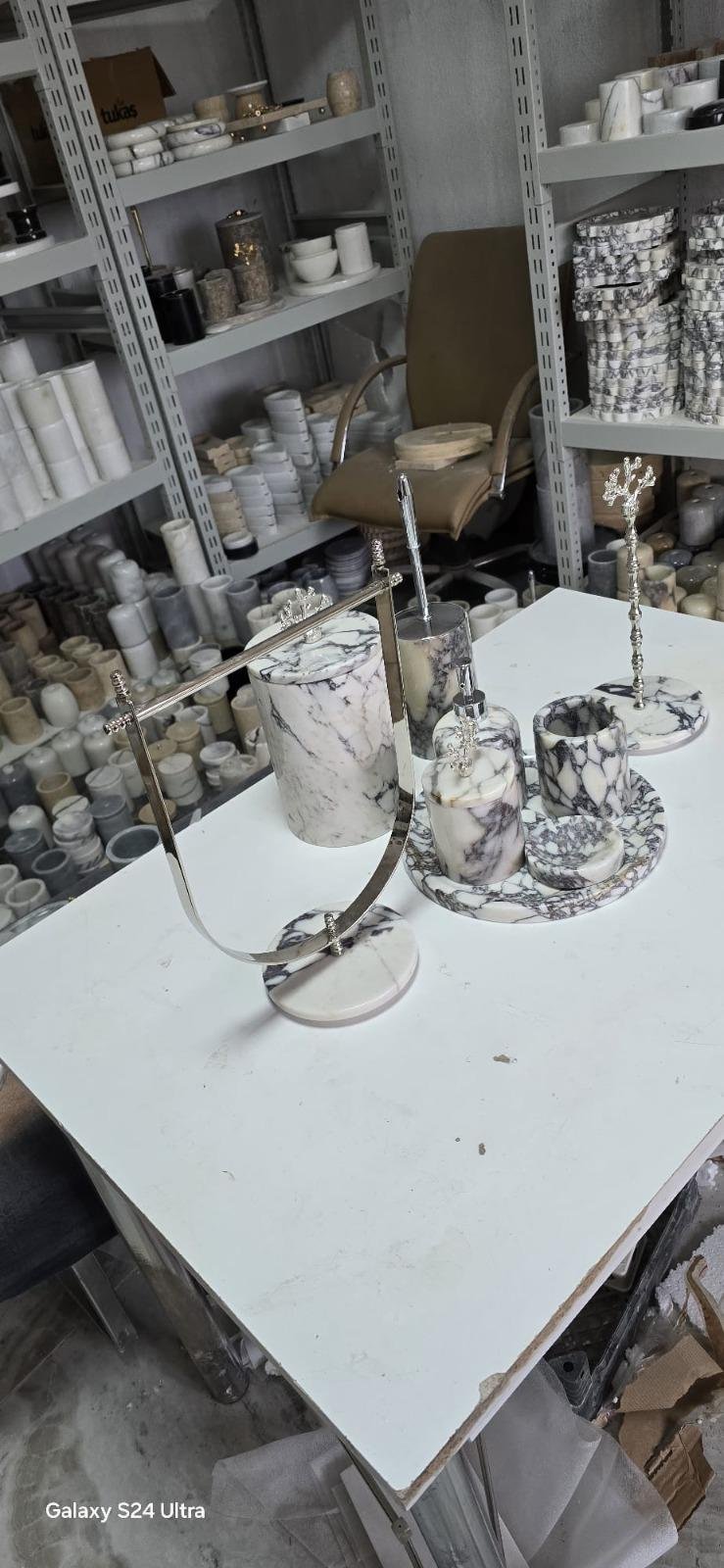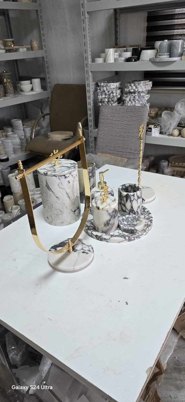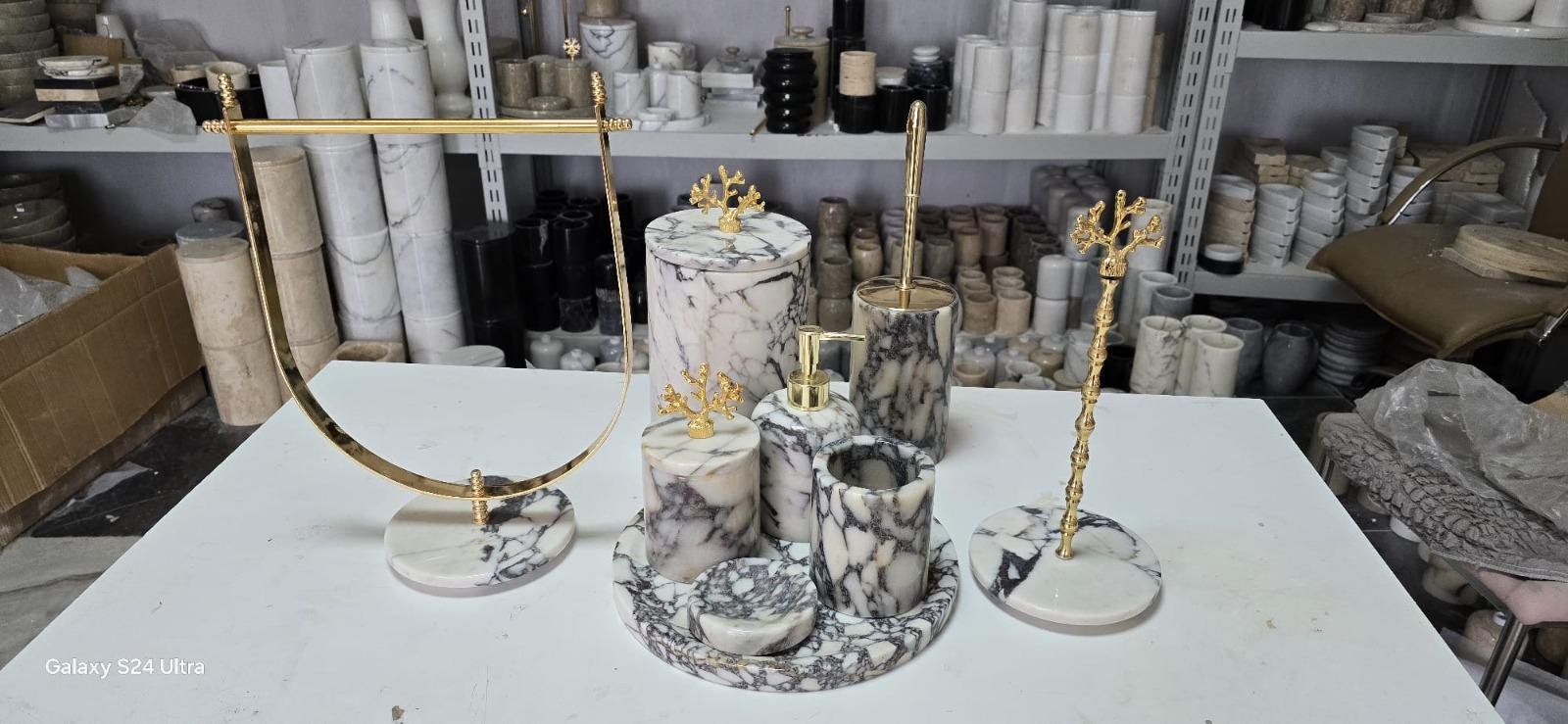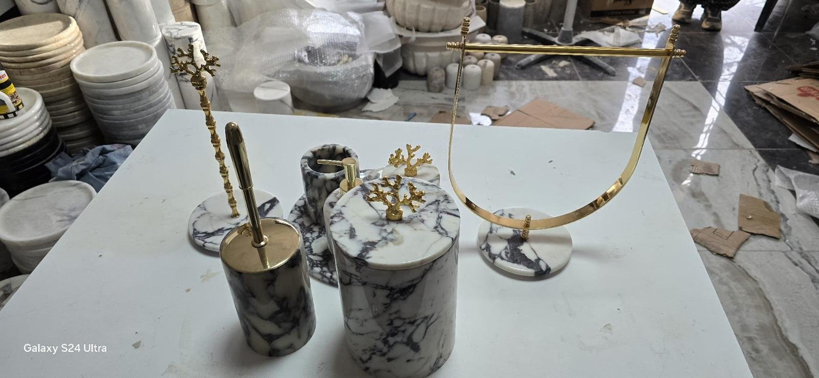 Handmade Marble Bathroom Accessory Set: Gold/Silver Finish