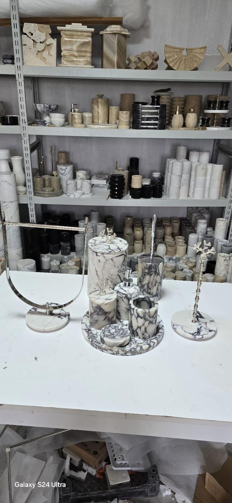 Upgrade your bathroom with this luxurious handmade marble accessory set, crafted from 100% natural stone. Available in gold or silver finishes, this elegant set enhances any modern or classic bathroom decor.