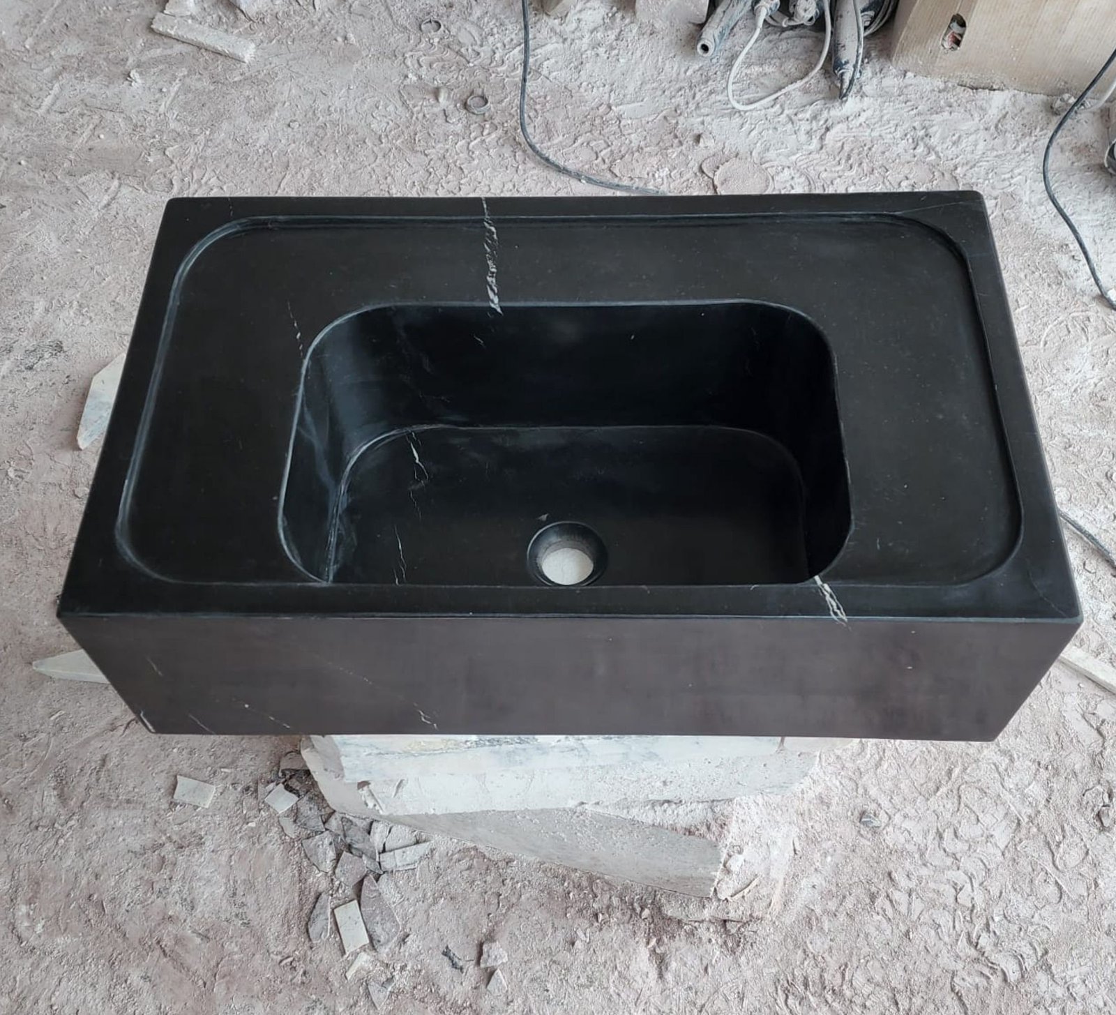 Handmade Nero Marquina Black Marble Sink: Modern Wall Mount Vessel