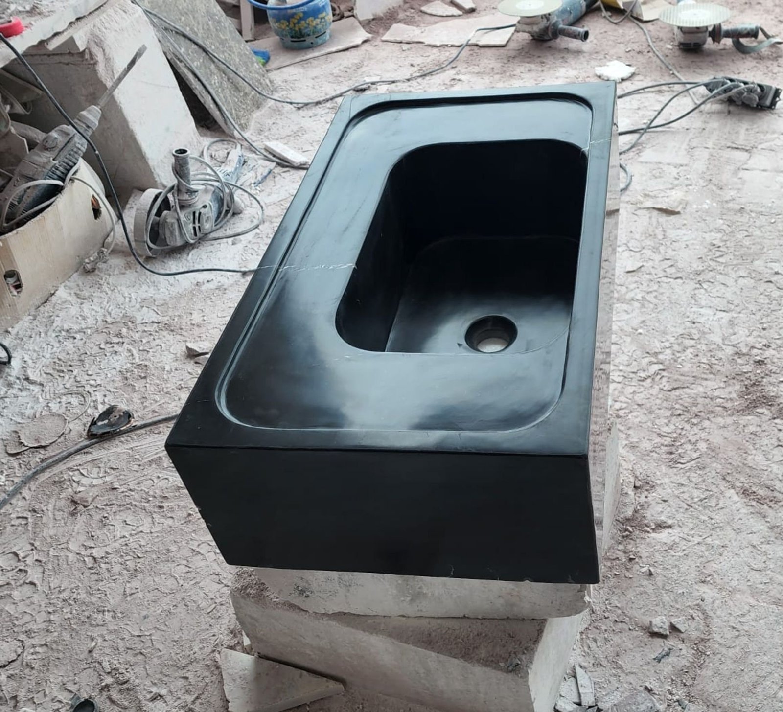 Create a sophisticated look with this black marble sink, perfect for vessel or wall-mounted setups.