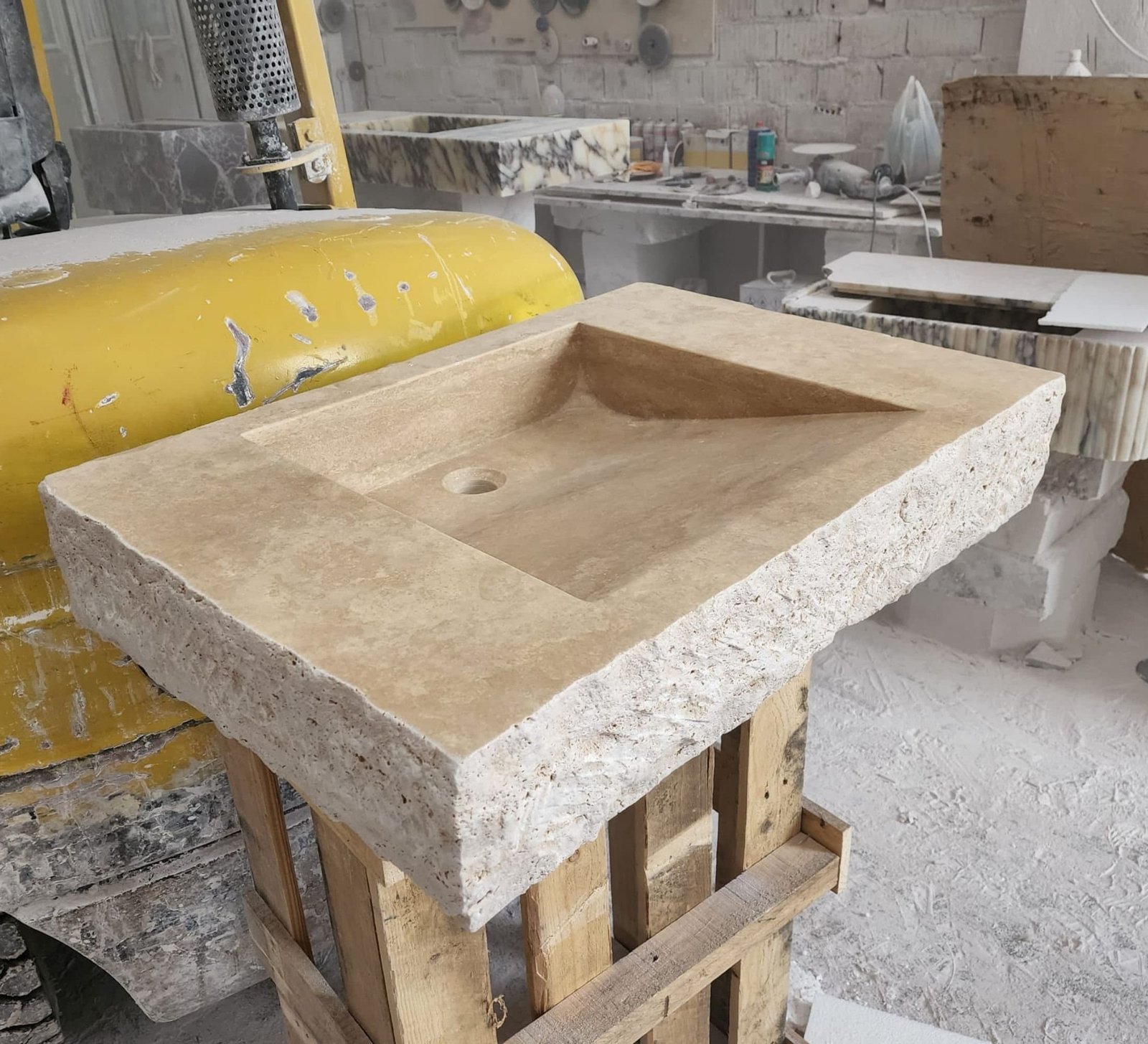 Transform your bathroom into a luxurious retreat with our Handmade Rustic Travertine Marble Sink. Its natural beauty and sturdy construction make it a practical yet stylish choice for your bathroom remodel or new construction project. Place your order today and experience the exquisite craftsmanship and timeless appeal of travertine marble.